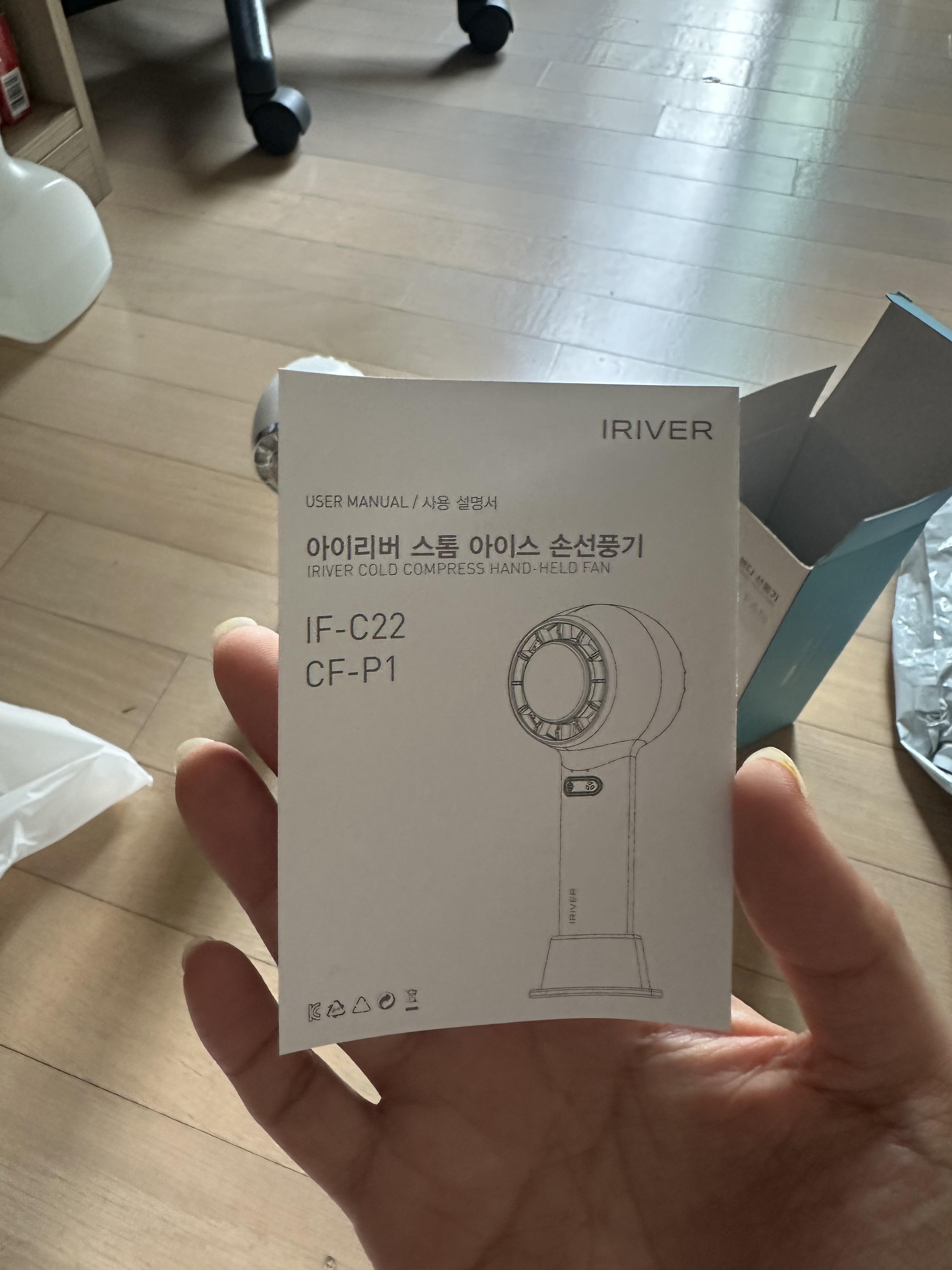 아이리버 스톰 아이스 손선풍기 박스안에는 설명서가 있었습니다. 설명서가 있더라도 설명서를 보지 않고서도 충분히 조작이 가능합니다. 위에 사진에 보신것처럼 아이스 냉각팬 바로 아래에 버튼에 대해 정확히 모르더라도 몇번 눌러보면 바람의 세기 조절과 냉각팬 기능을 알 수 있습니다. 냉각기능의 경우 좌측 버튼을 클릭하면 되며, 냉각기능을 켜놓으면 냉각판에 물이 고이는 것을 볼 수있습니다. 시원해지는것도 금방올라와서 더운 여름 많이 기다리지 않더도 열이 많은 부위에 냉찜질하면 정말 좋습니다.
