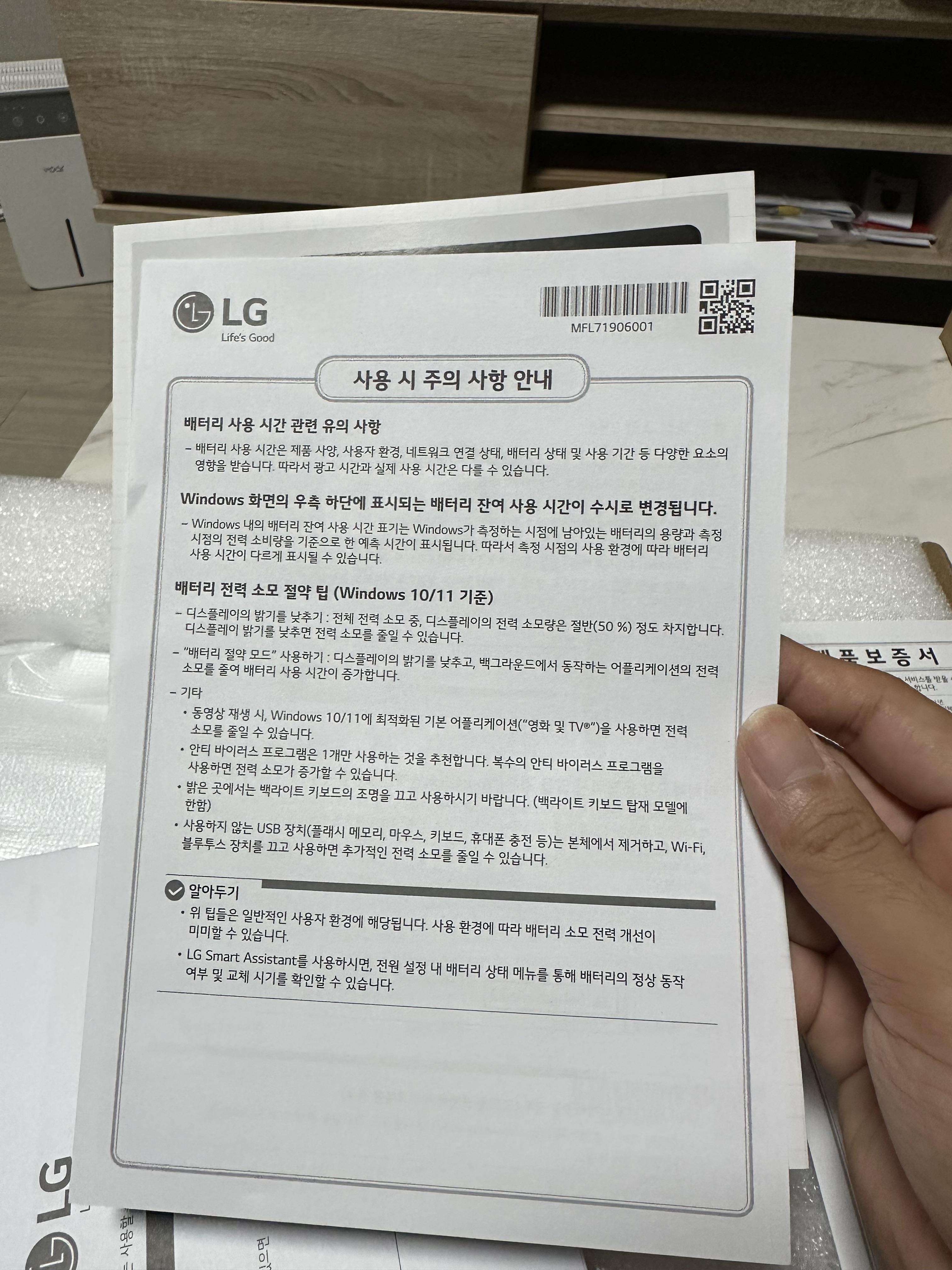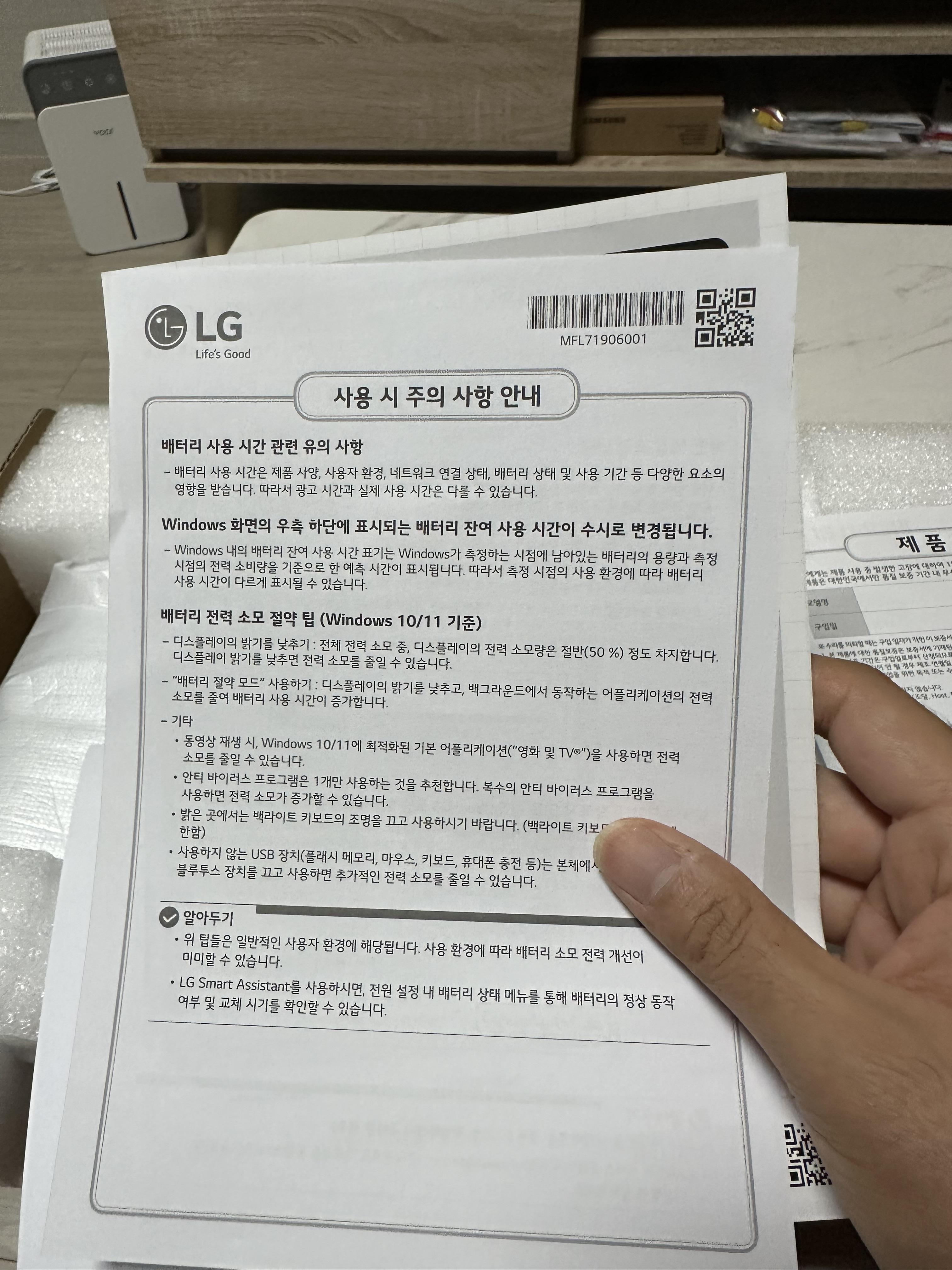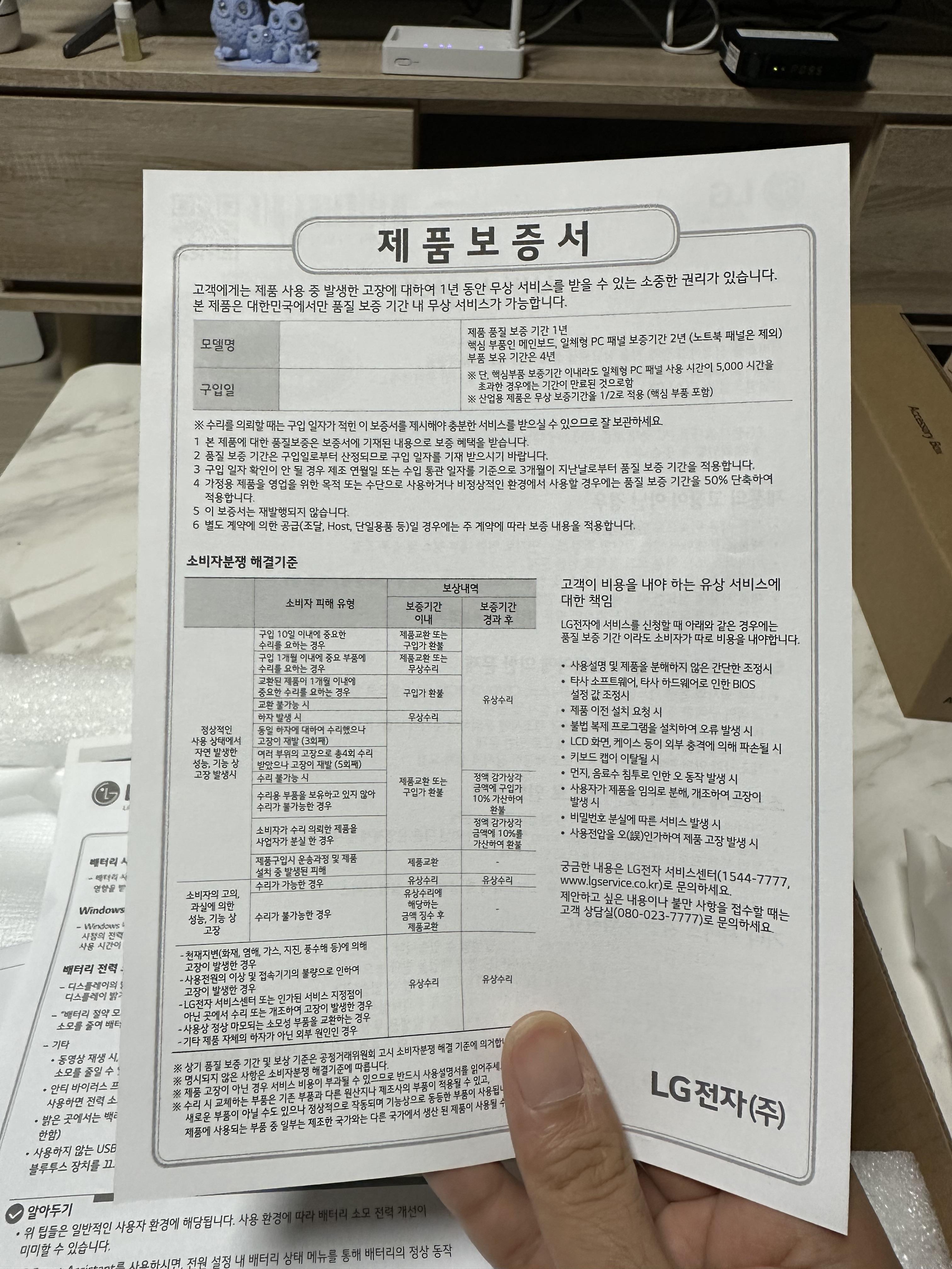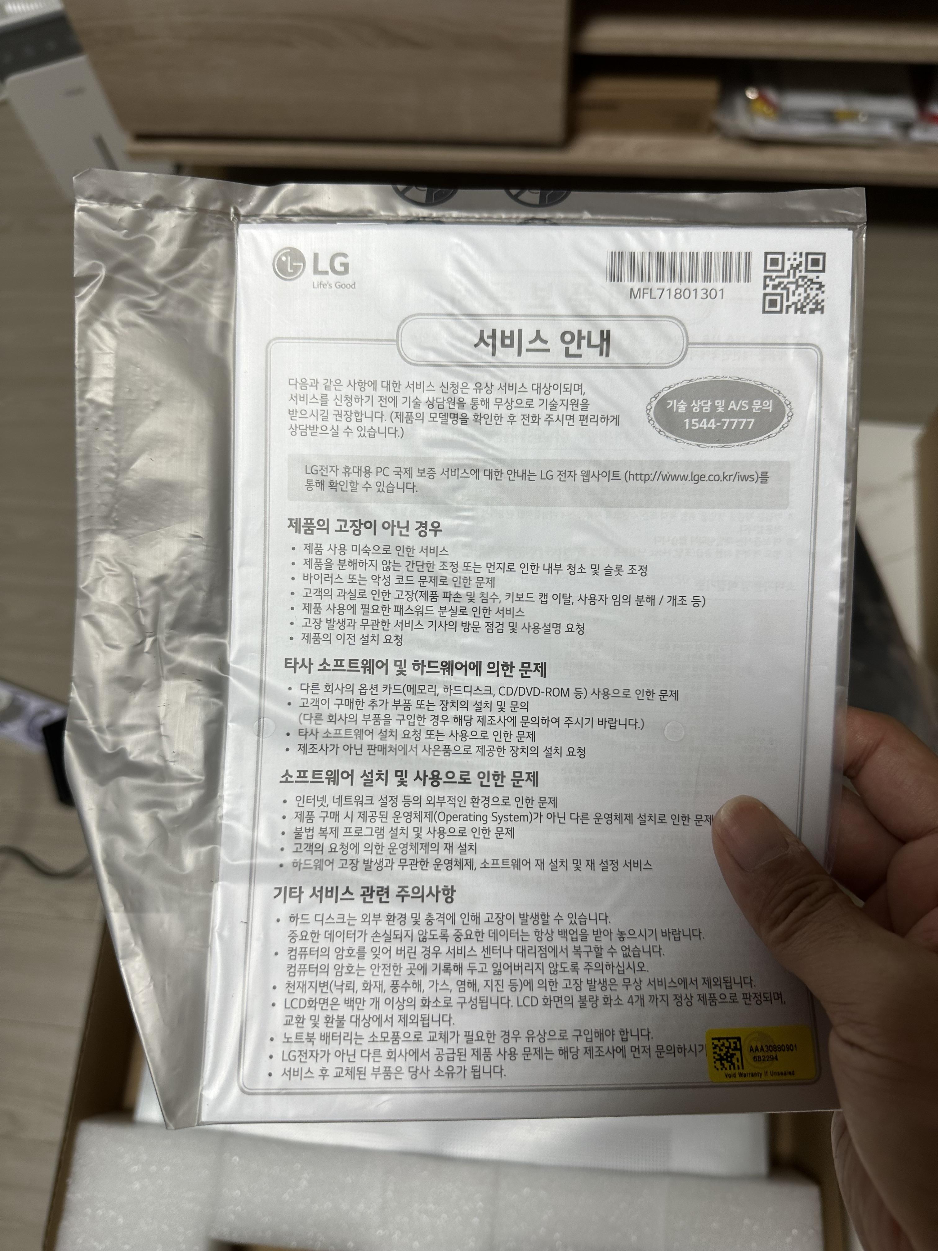 - 제품 박스에는 제품 보증서가 있지만 요즘은 전산으로 제품 코드가 있기 때문에 없어 될 것 같습니다.