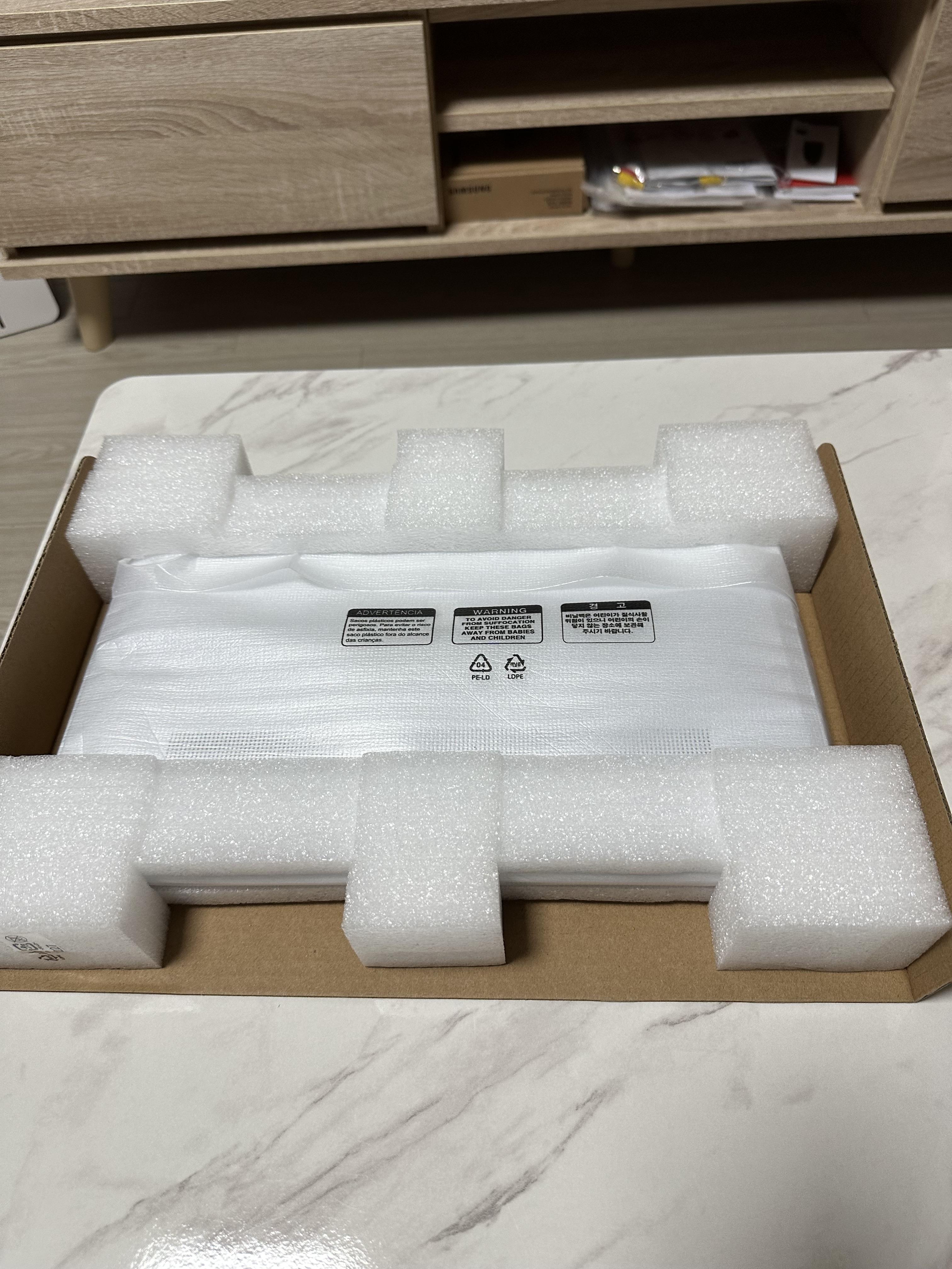 비대면 서비스가 활성화 된다면 제조사입장에서도 포장을 신경써서 해야 할 것 같습니다. 제품을 박스로부터 개봉할 때도 스티로품 등으로 포장되어 안전하다는 것을 느낄 수 있었지만 노트북의 모니터 화면과 닿는 키보드 사이에도 모니터가 손상되지 않도록 중간 가림막 같은게 있었습니다.