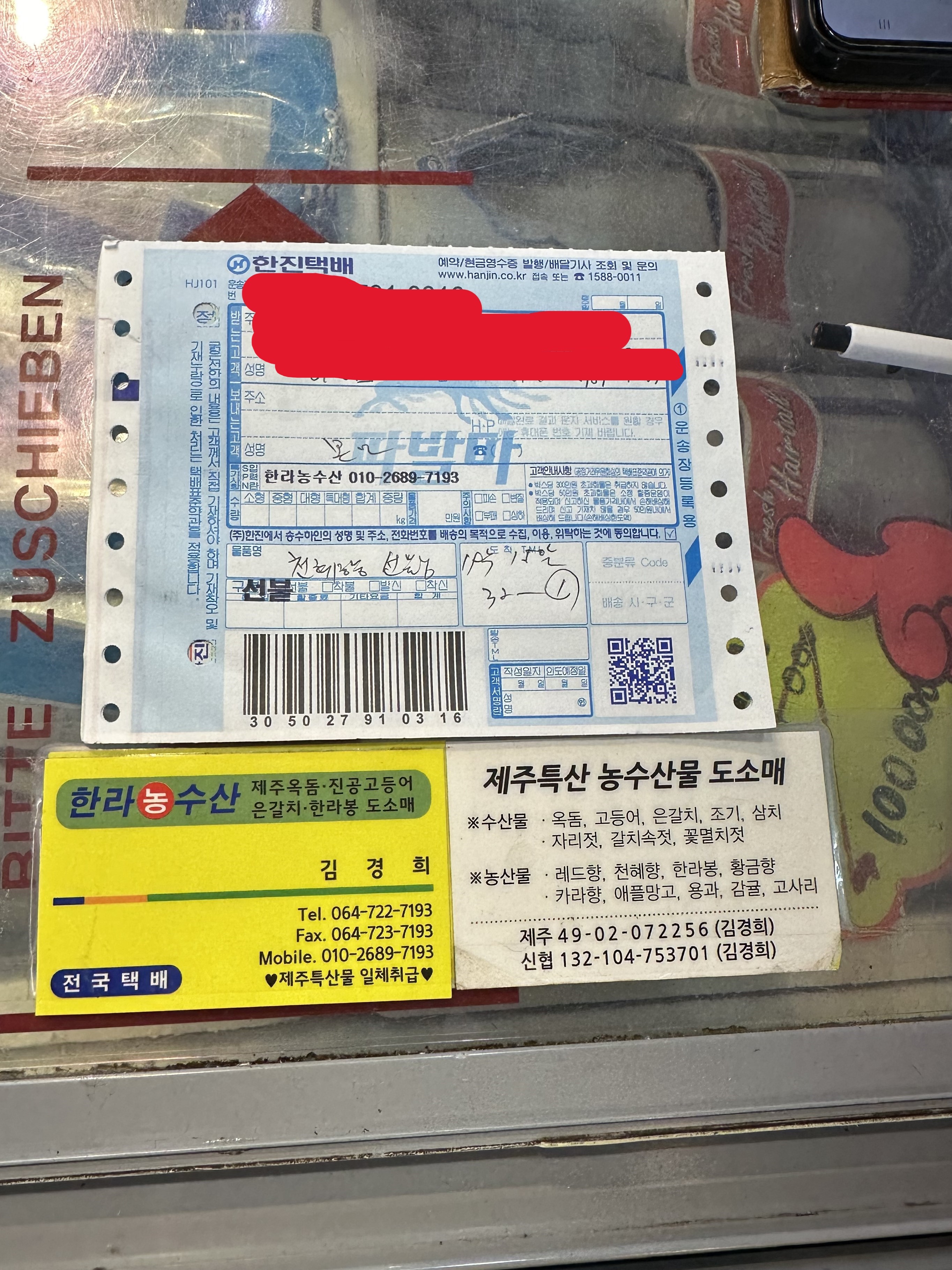 혼자서 먹는다고 하니까 당시에 사장님께서 32,000원에 해당하는 천혜향 1박스를 보내주기로 했습니다. 택배비는 별도입니다. 제주도는 섬지역이다보니 쿠팡 로켓배송처럼 당일치기 배송은안되구요. 바로 다음날에 가는것도 아니고 최소 2박3일은 걸리는 것 같습니다. 당시에 동문 재래 시장 내에 한라 농수산을 방문한 일자는 3월 9일이구 제가 안산 반달섬에서 받는 날짜는 3월 11일였습니다. 섬이다보니 다음날은 사실 힘든것 같구 2일정도 되니까 받을 수 있었습니다.
