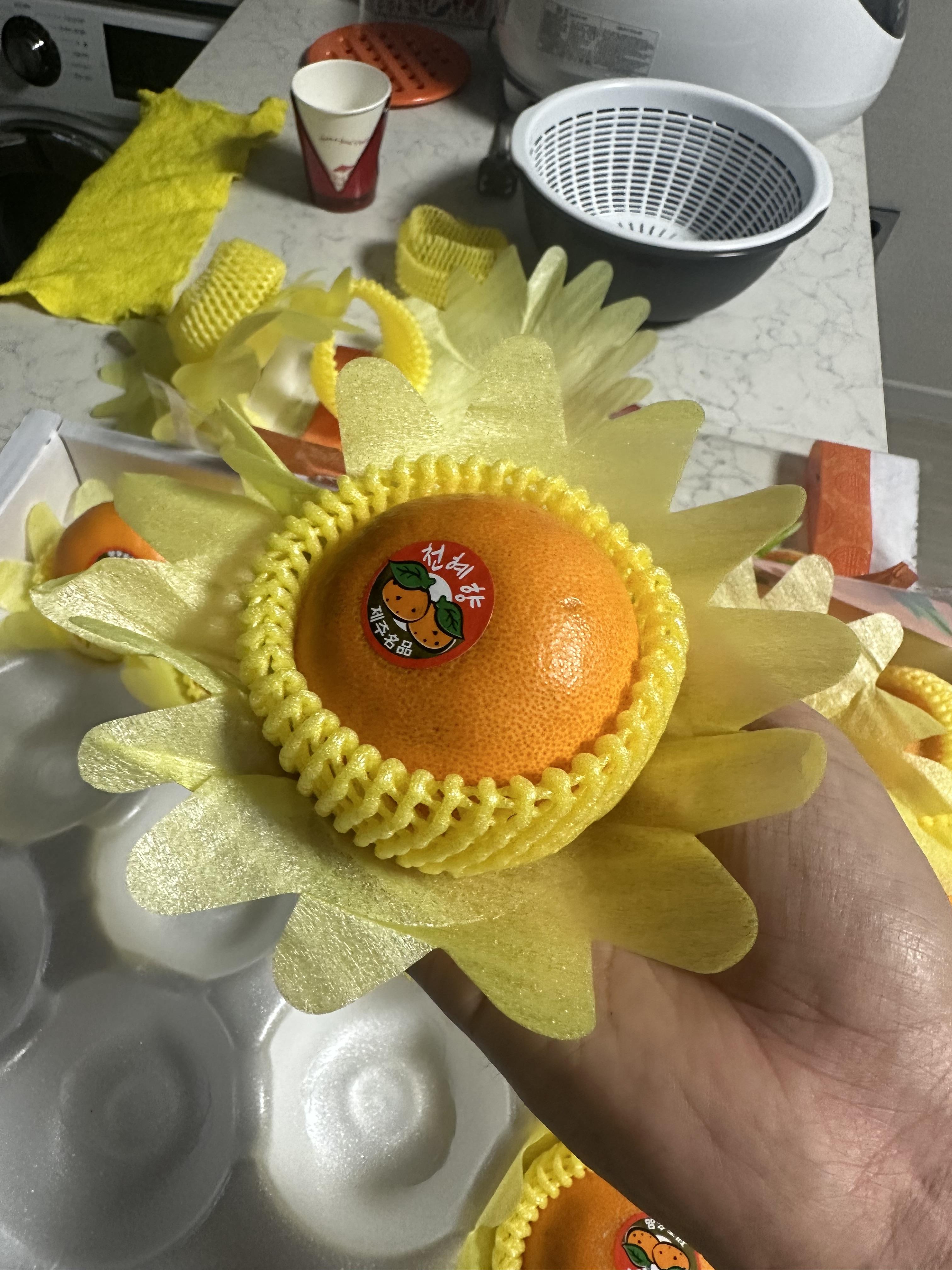 제주 명품이라는 천혜향 박스를 열었습니다. 총 15개의 천혜향이 가지런히 정돈되어 포장되어있었습니다. 비닐로 한번 더 포장되어있었고 비닐 위에도 선물세트 제주 명품이라는 글씨가 써있었습니다. 비닐을 뜯고 천혜향 하나를 꺼내보았는데요. 선물 세트이다보니 포장 박스도 명품이고 천혜향 하나하나도 노란 스티로품으로 포장이 제대로 되어있었습니다. 집에서 혼자 먹는거라면 이렇게 정성스런 선물세트 천혜향보다 검은 비닐봉지에 담아오는것도 괜찮을 거같은데요. 제주도 여행 하면서 사랑하는 가족이나 친구, 직장 동료에게 선물 하는 것은 어떨까요