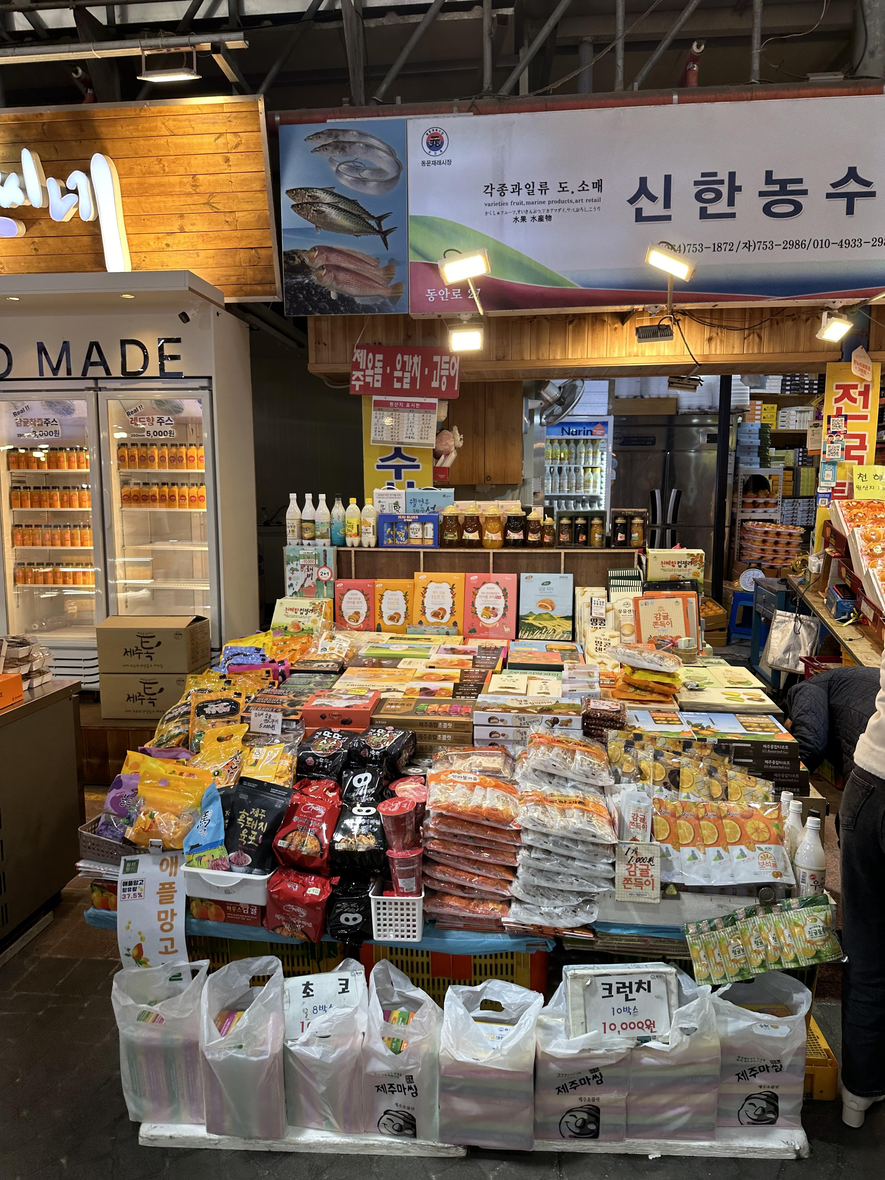 제주 동문 시장은 크게 세가지 판매 장소로 구분 되어 지는 것 같습니다. 회와 해산물을 판매하는 장소, 야시장 및 먹기를 판매하는 장소, 감귤 및 농수산물 판매장소, 그 외 제추 감귤 쵸콜렛과 제주 기념물을 판매하는 장소로 구분 되어지는것 같습니다.
