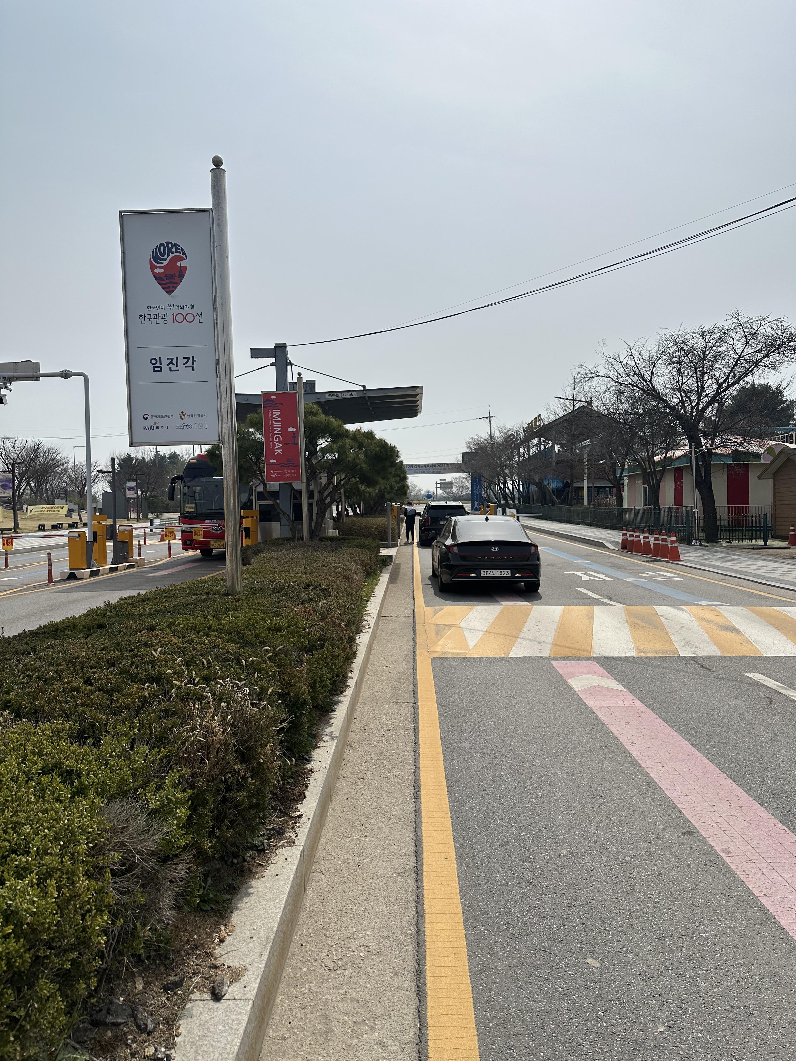임진강역은 작은 간이역 같은 느낌이지만 역사 외관은 또 그렇지 않고 작지만 웅장한 느낌을 받을 수 있습니다. 임진각역 주위에 버스 정류장이 있습니다. 그러나 자주 오지 않기 때문에 버스로 오는 뚜벅이 여행객분들께서는 열차와 버스 시간을 알아보시고 시간 맞춰서 타시는것을 추천합니다. 교통이 좋지 않은 여행지의 경우 대중교통 때문에 스트레스 받는 경우도 있어서 버스 시간표를 잘보거나 운전을 하실수있다면 자동차로 오는것을 추천합니다. 임진강역에서 저는 군사분계선 여행과 파주 민통선 케이블카를 타러 천천히 이동합니다.