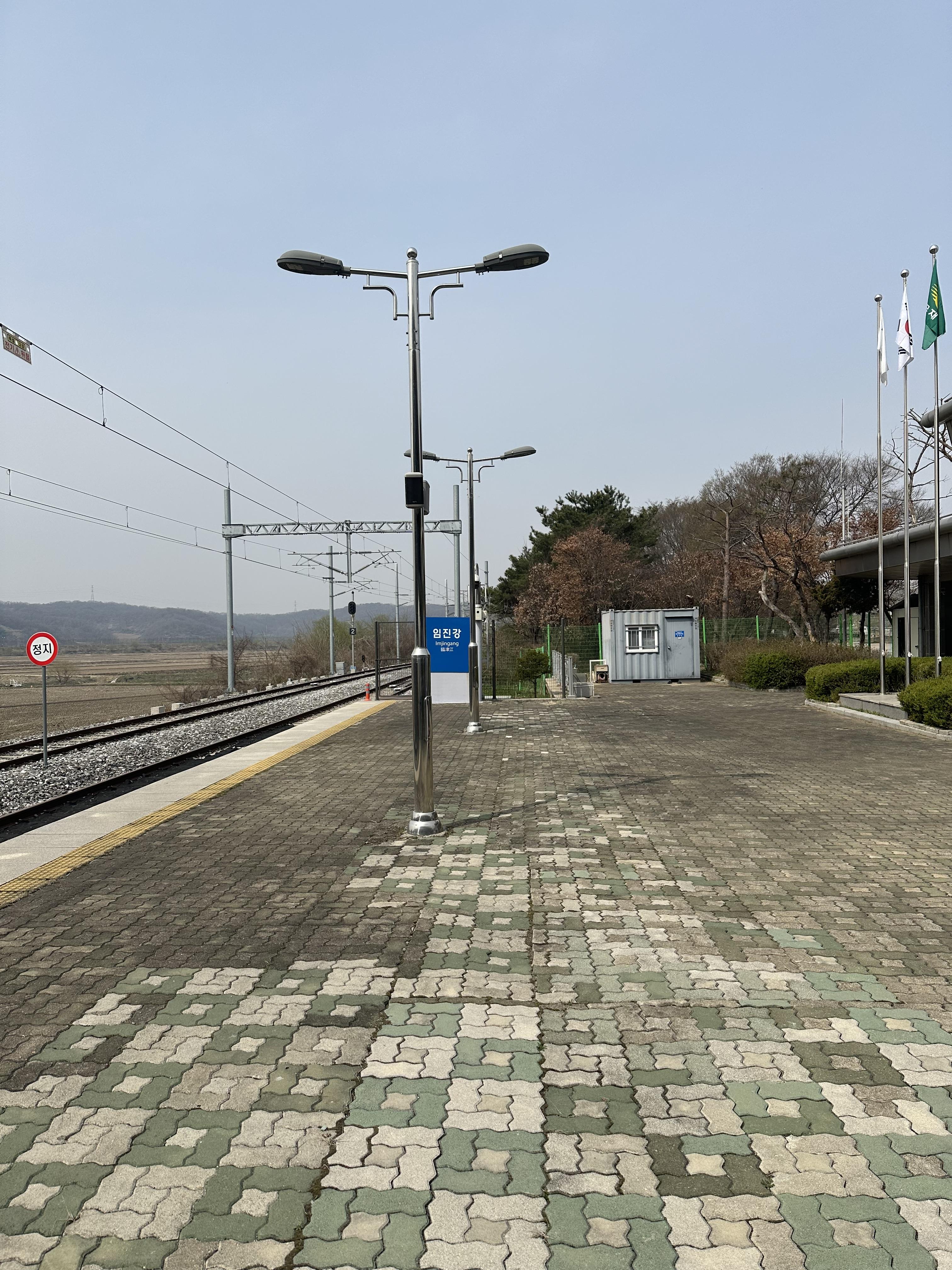 짧고 아쉽지만 임진강역에 도착했습니다. 원래는 도라산역까지 갈 수 있지만 현재는 남과 북이 그렇게 사이가 좋은 건 아니라 관광은 언제 정상화될지는 잘 모른다고 합니다. 2012년에 처음 왔을 때 통근열차에서 모두 내려서 도라산역 가기 위해 좌측 역사로 들어가서 신분검사후 탑승했다고 하는데요. 언제인지는 모르지만 도라산 관광이 추진된다면 다시 한번 가보고 싶습니다.