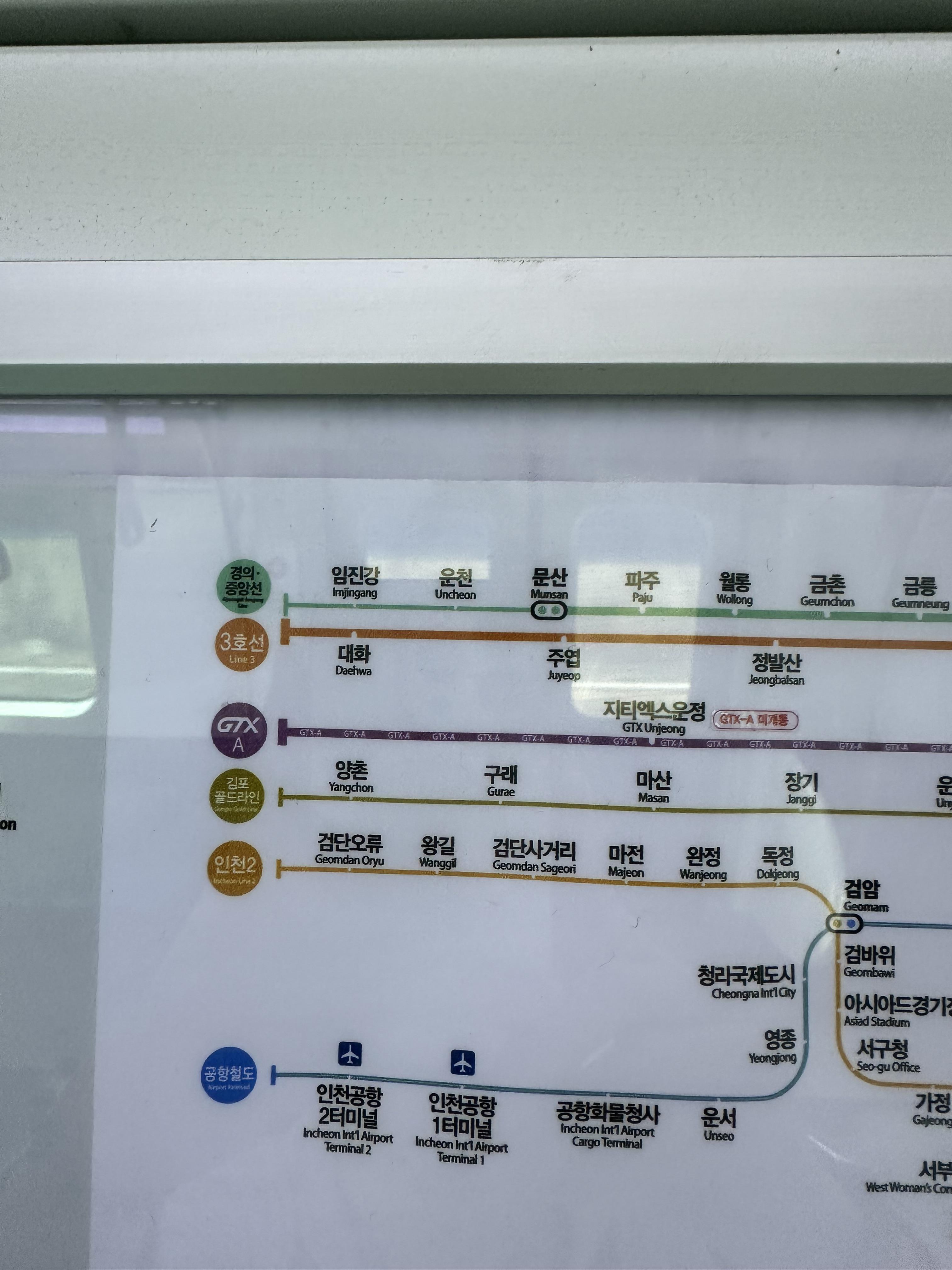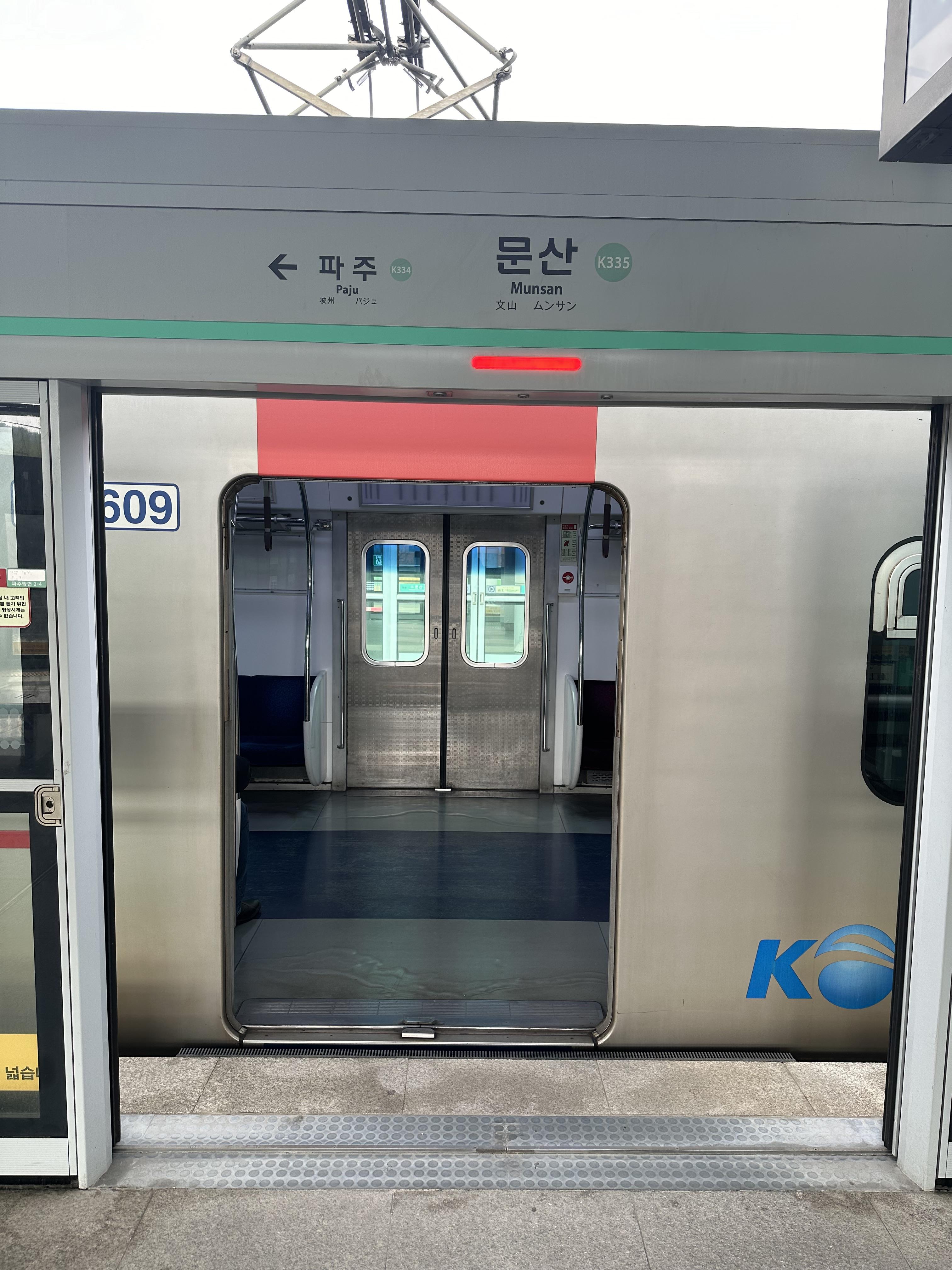 어렸을때부터 안산 선부역에서 부천 소사 지하철 개통을 들리긴 했지만 정말 지하철 개통은 계획 후 준공을 거쳐 개통까지 10년은 걸린 것 같습니다. 첫 서해선 노선은 2018년 6월 쯤에 안산 스마트허브에 위치한 원시역에서 소사까지 개통했습니다. 그리고 김포공항을 지나 일산까지 개통은 약 5년이 지난 2023년 7월에 준공 했습니다. 김포공항에과 일산으로 가기 위한 한강 하저 터널 공사 지연으로 인해 늦어졌는데요. 그렇게 5년이 지나 서해선 노선은 3호선 대곡역에서 일산까지 연장하였습니다. 안산에서 일산은 서해선 노선이 없다면 4호선을 타고 충무로역에서 3호선을 갈아타고 약 2시간 가까이 가는데요. 서해선 노선을 개통하고 대곡을 지나 일산까지는 1시간 10분에서 20분이었습니다. 정말 빠르지 않나요. 올해 4월에 파주에 있는 군사분계선 방문과 민통선 케이블카를 타고 당일치기 여행을 다녀왔습니다. 민통선 케이블카는 작년 3월에 탔습니다. 당시에 군사분계선도 가고 싶었지만 당일날에 알았고 늦어서 이용하지 못해 아쉬웠는데요. 이번에는 아침 일찍 원시역에서 서해선을 타고 대곡역에서 경의중앙선을 환승하여 문산역까지 갔습니다. 원시역에서 대곡역까지는 약 1시간정도 걸렸습니다. 경의중앙선이 배차가 있기는 하지만 배차 기다리는 시간 제외하면 대략 1시간 35분정도 걸렷떤 것 같습니다.