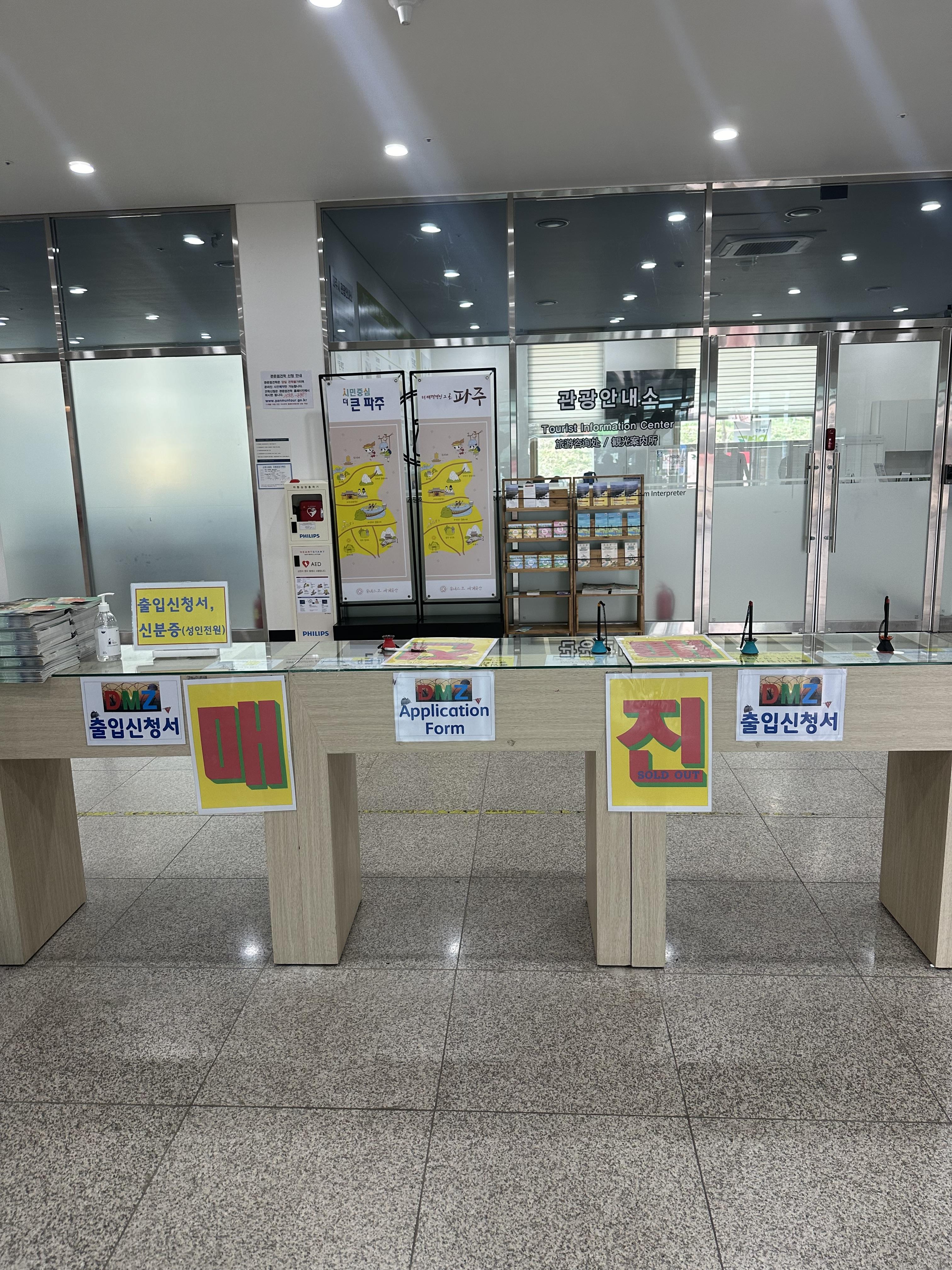 작년에는 서해선이 김포공항을 지나 일산까지 개통되지 않아 지하철 타고 3시간넘게 걸렸따면 올해는 파주까지 빠르게 올 수 있었고 주말이라 경의중앙선열차도 자주 있었습니다. 파주 임진강역에서 내렸습니다. 그리고 가장 먼저 DMZ평화관광을 하기 위해서 표를 구입하기 위해 한반도 생태평화 종합관광센터로 들어갔습니다.
