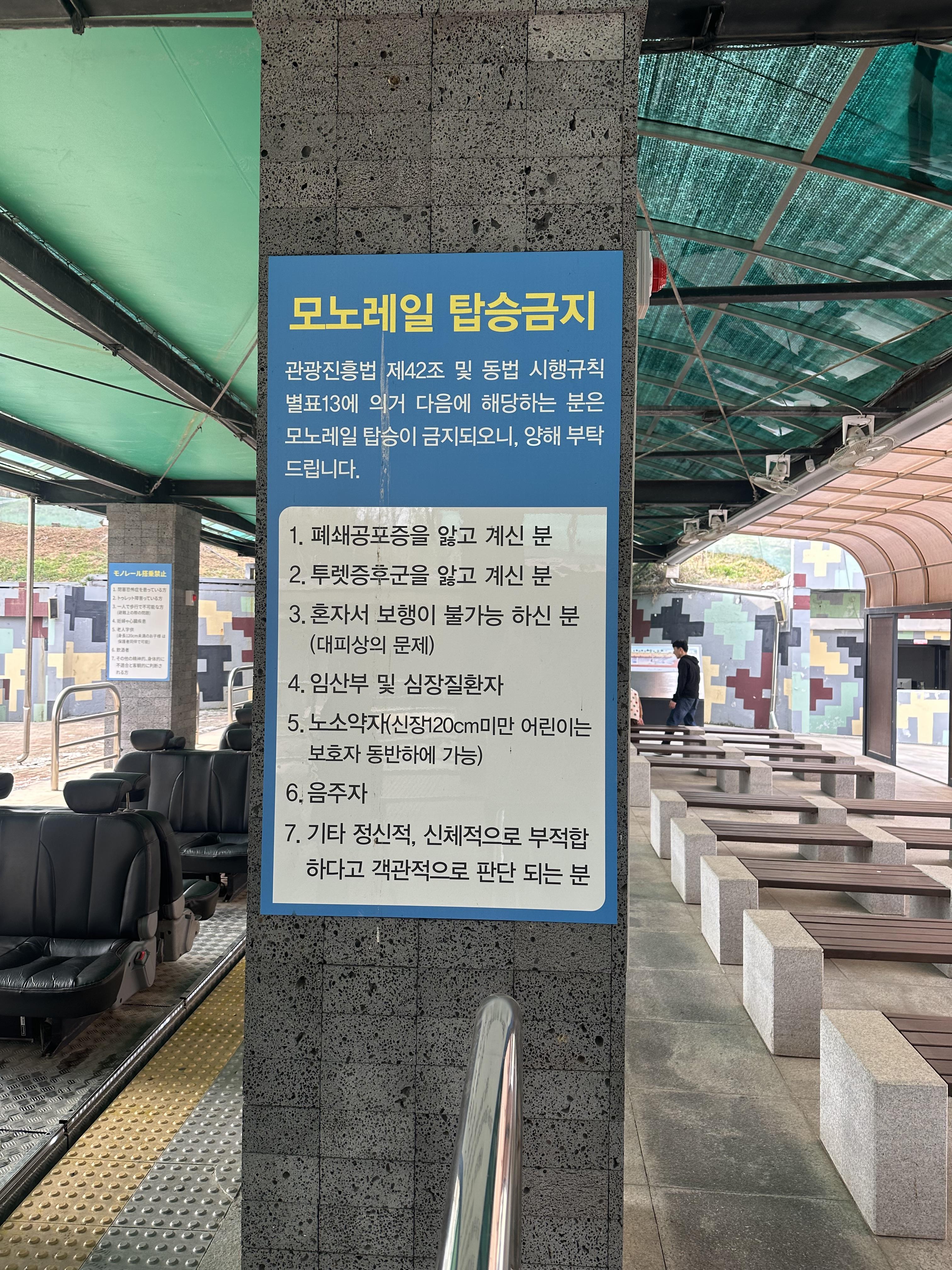 - 관광진흥법 제42조 및 동법 시행규 별표13에 의거 다음에 해당하는 분은 모노레일 탑승이 금지 된다고 합니다.