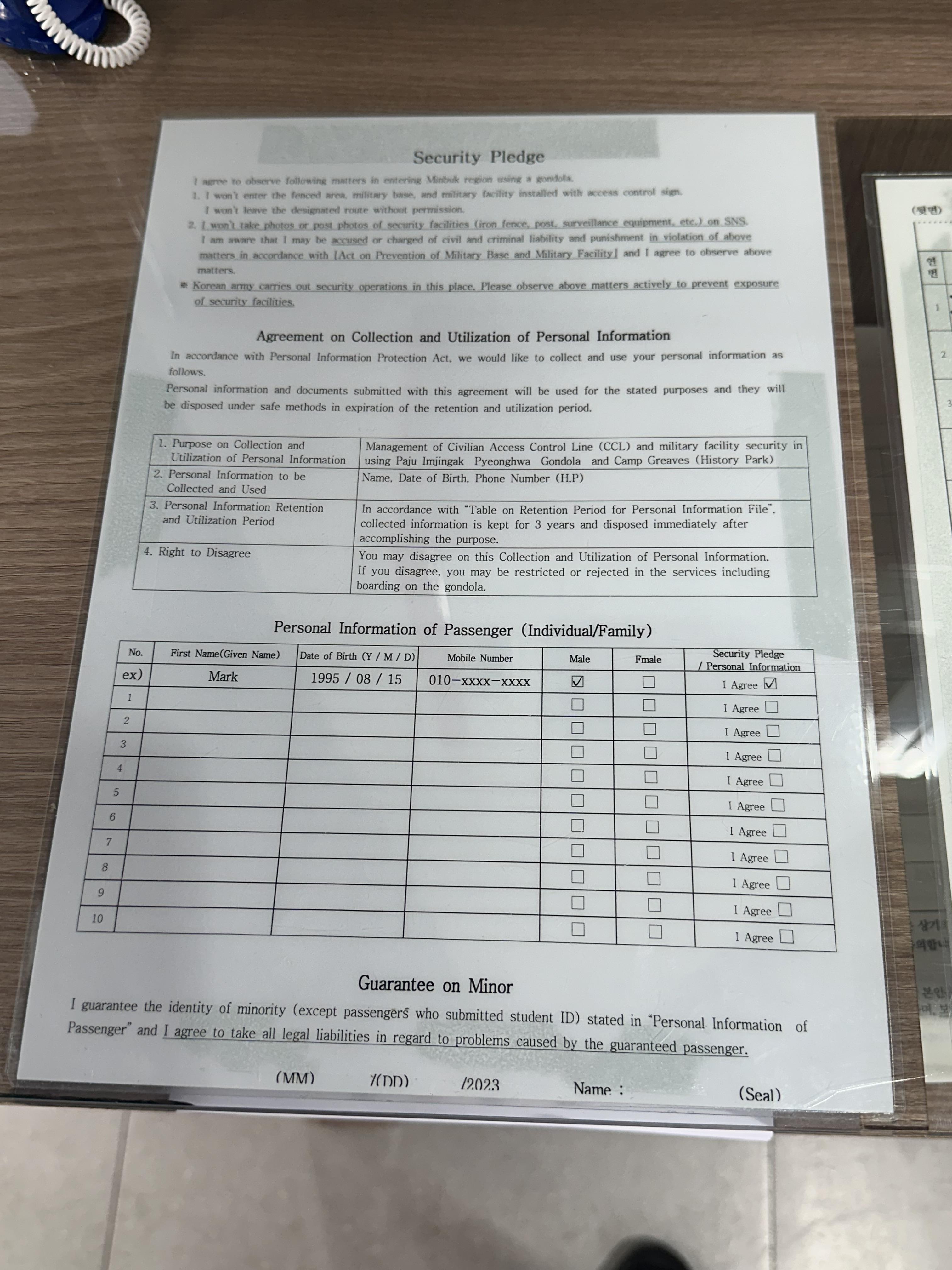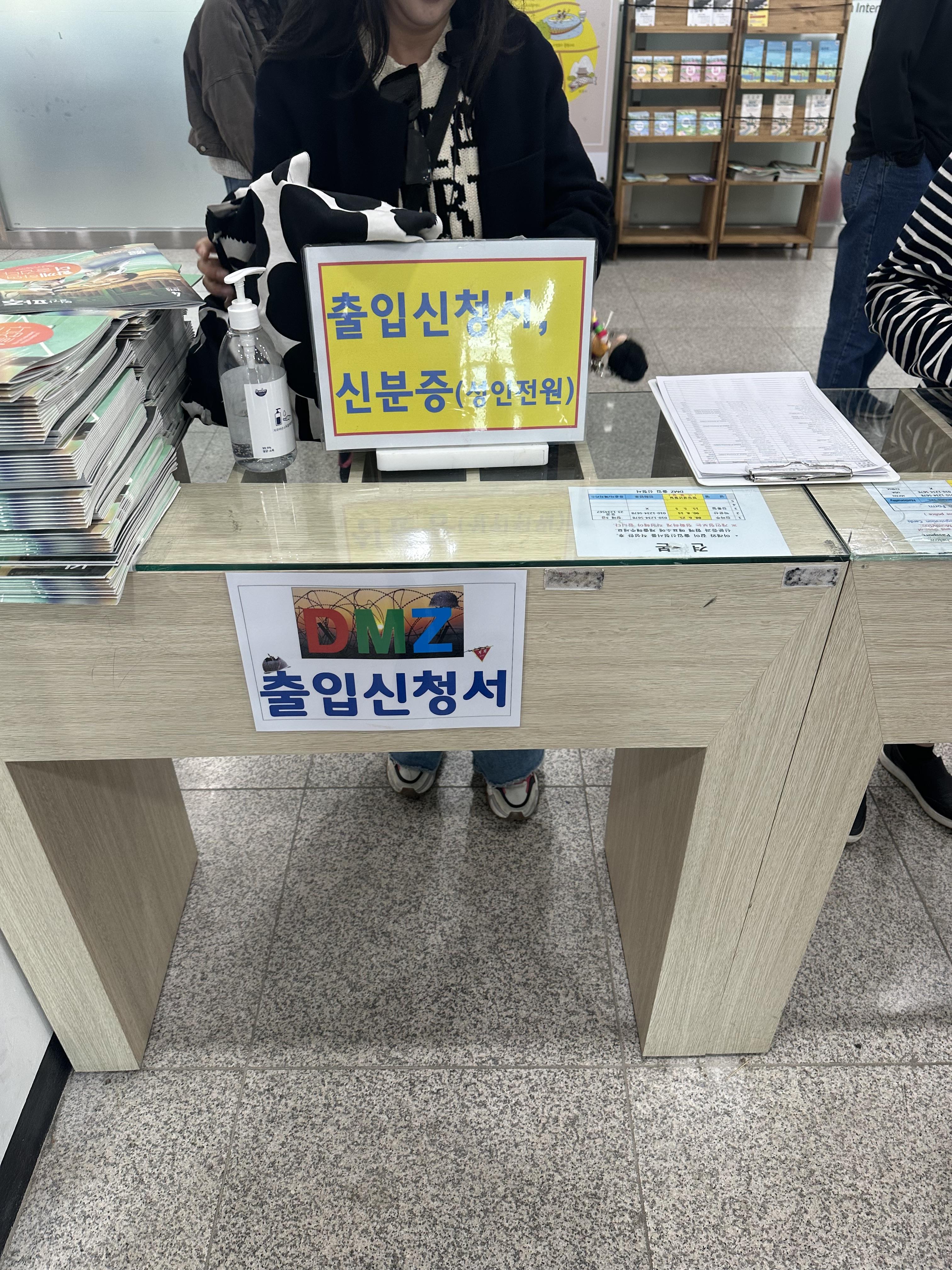 민통선 케이블카의 경우에도 민통선 안으로 진입하니까 신분증 필수입니다. 사전 예약을 해야하는 파주 판문점의 경우에도 신분증있어야 이동이 가능합니다. 출입신청서를 작성하고 표를 구매합니다.