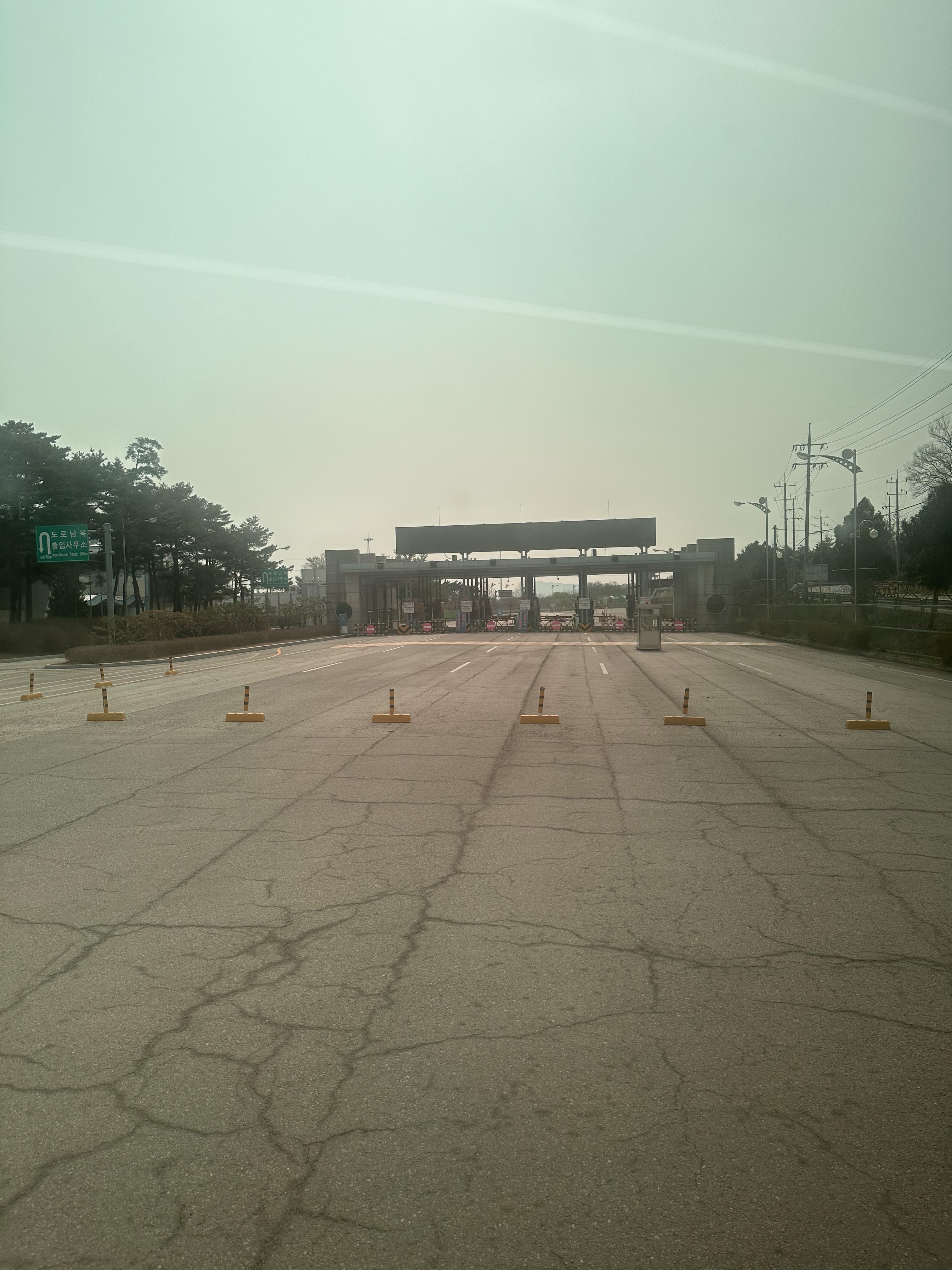 그렇게 버스가 출발했습니다. 민통선안을 지나가야하기 때문에 출발한지 얼마 안되어 검문소에서 헌병 군인 2명이 탑승해서 신분증 검사를 진행했습니다. 버스의 단점인 경우 맨 앞자리가 아닌 이상 옆만 보이고 앞은 보이지 않는데요. 과거 4년전에 지인과 함께 속초에서 렌트카를 통해 고성 통일전망대까지 갔다왔습니다. 파주나 고성 민통선 검문소는 마치 고속도로 요금 내는 곳 처럼 생겼습니다. 그리고 주변에는 삼엄한 군 바리게이트들이 보였습니다. 예약 당시에도 신분증 검사를 하긴 하지만 신분증이 없다면 관광 시 다시 돌아가야하는 일이 있으니 민통선 내 관광시에는 신분증 필수입니다. 헌병이라고 하면 과거에는 무서운 이미지가 있는데요. 그런 무서운 이미지보다는 신참 헌병 느낌이었습니다.