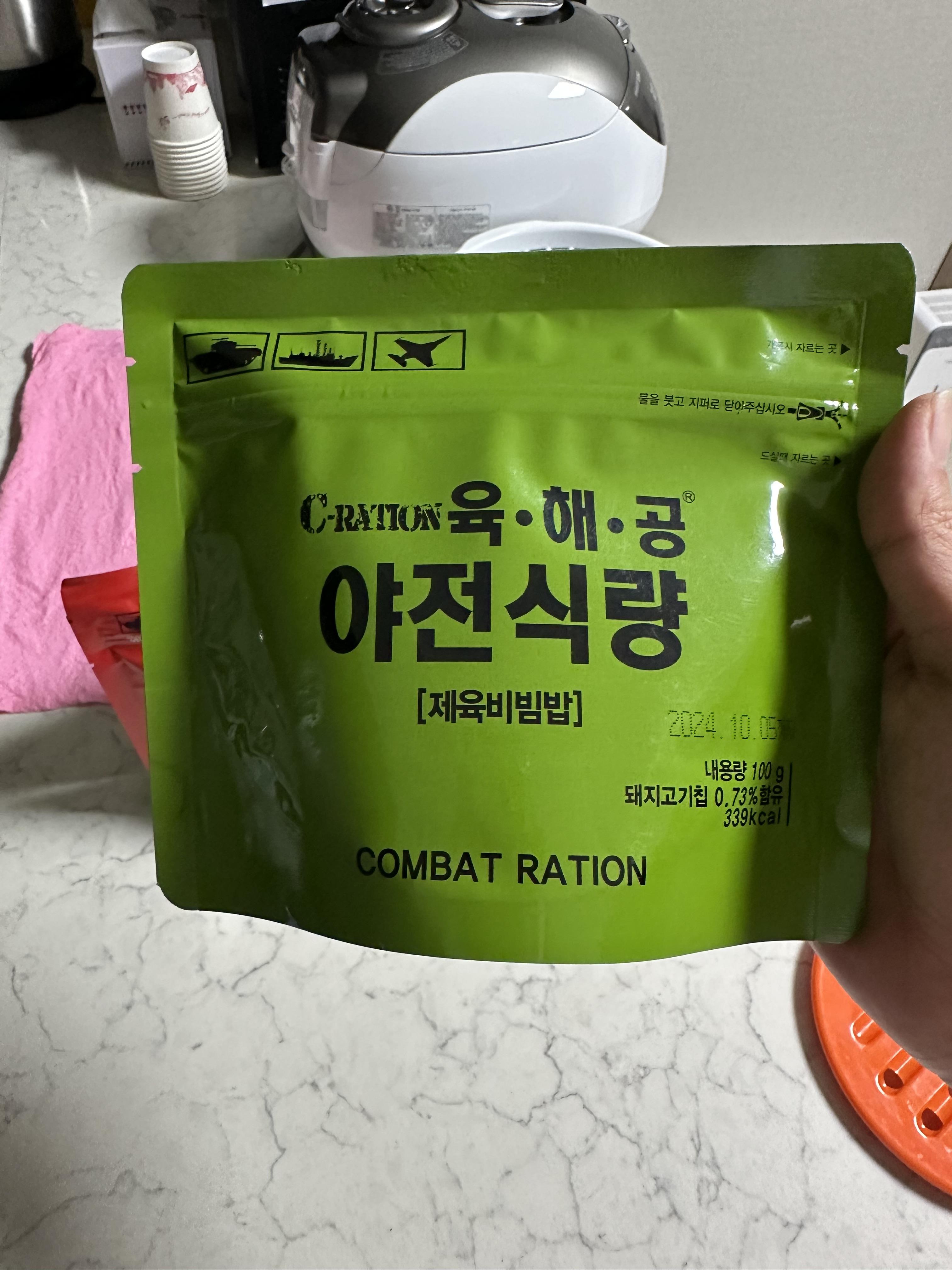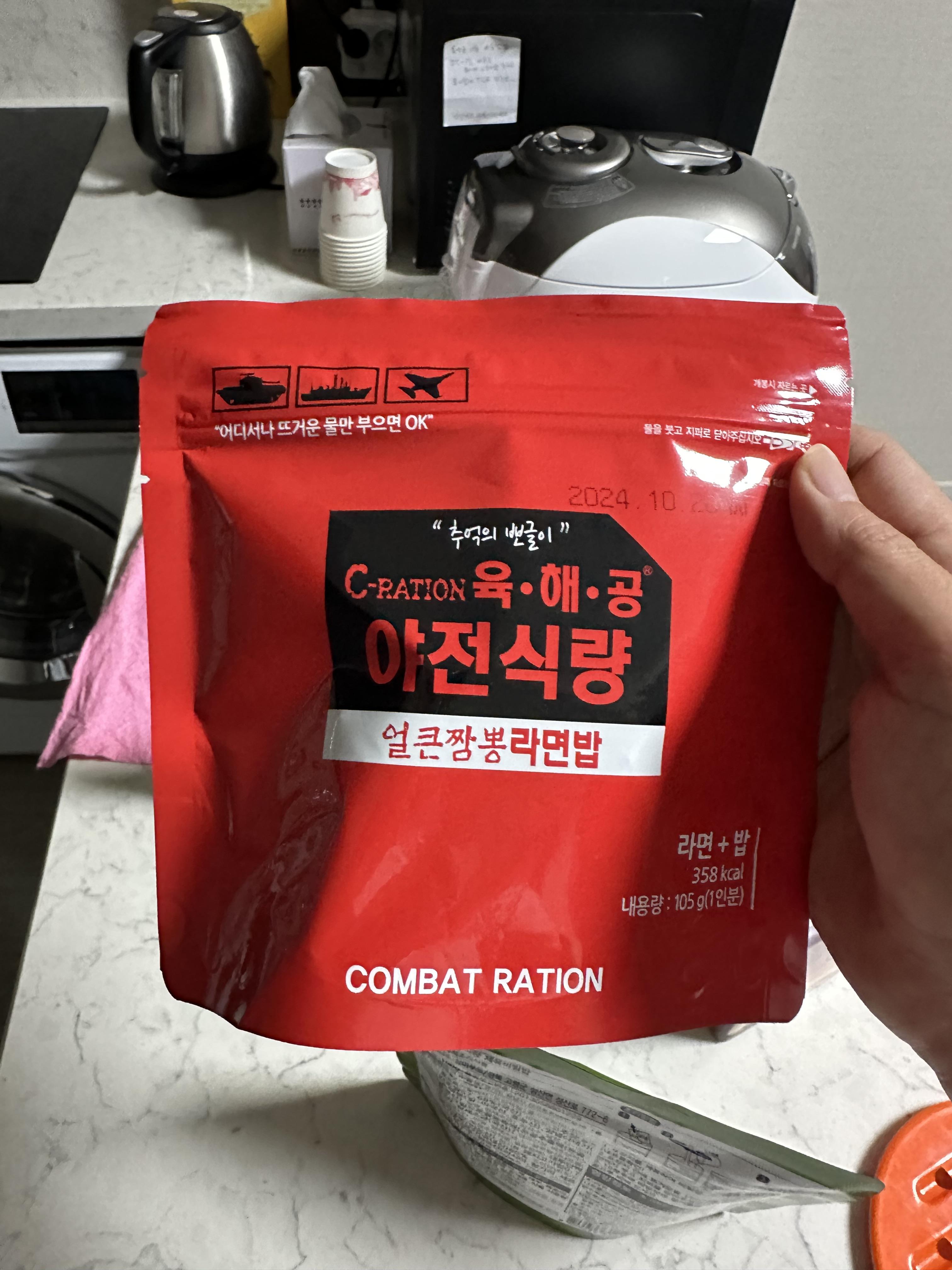 쿠팡에서도 야전식량을 샀는데요. 야전식량 하는 방법은 추후 포스팅을 통해 전해드리겠습니다. 간단하게 설명드리면 야외에서 활동하는 군인들의 경우 식당에서 밥먹기가 힘듭니다. 그래서 따뜻한 물만 있으면 가볍게 물만 넣어서 지퍼백처럼 잠가놓으면 밥이 되는 간편식입니다.