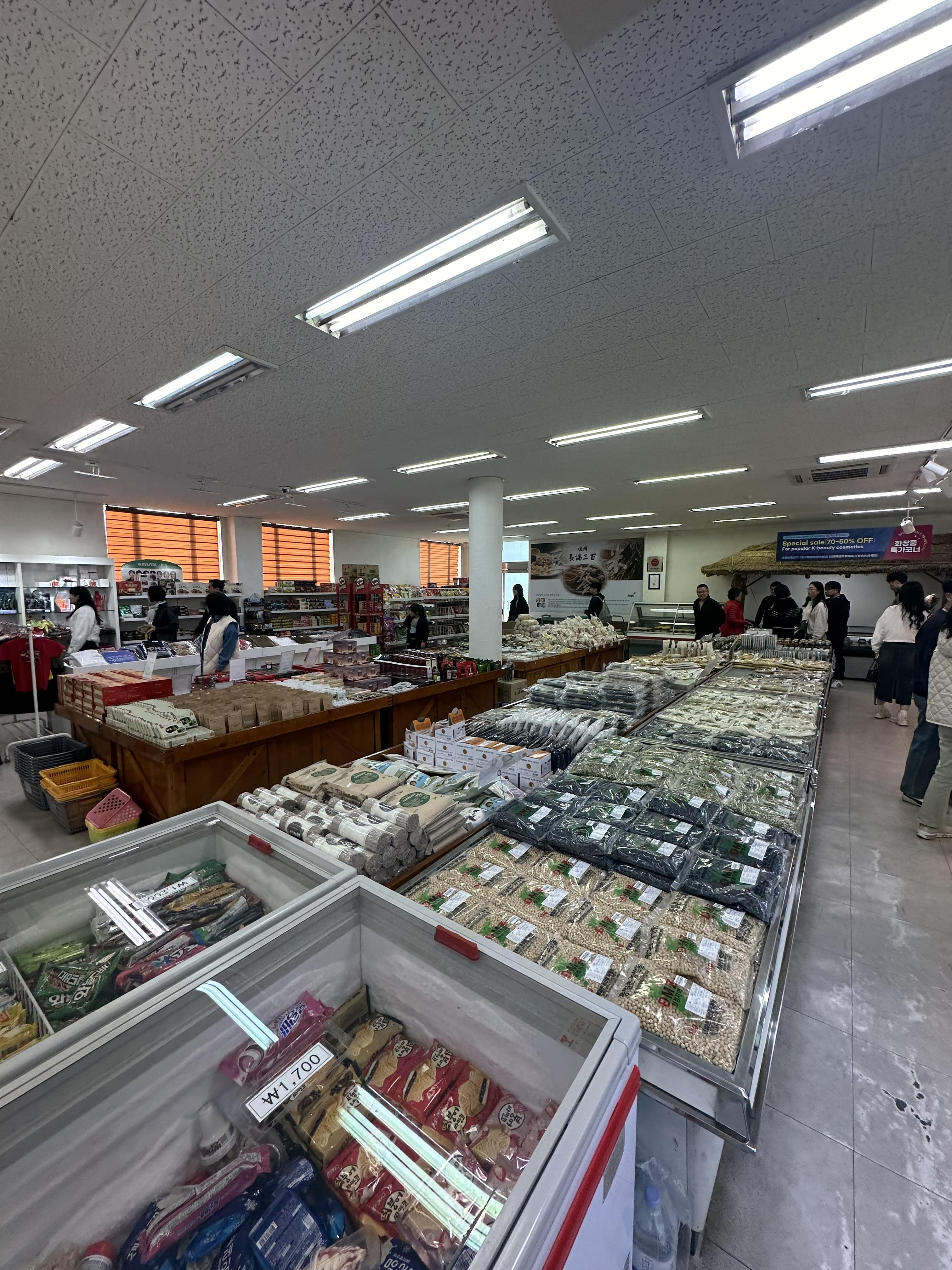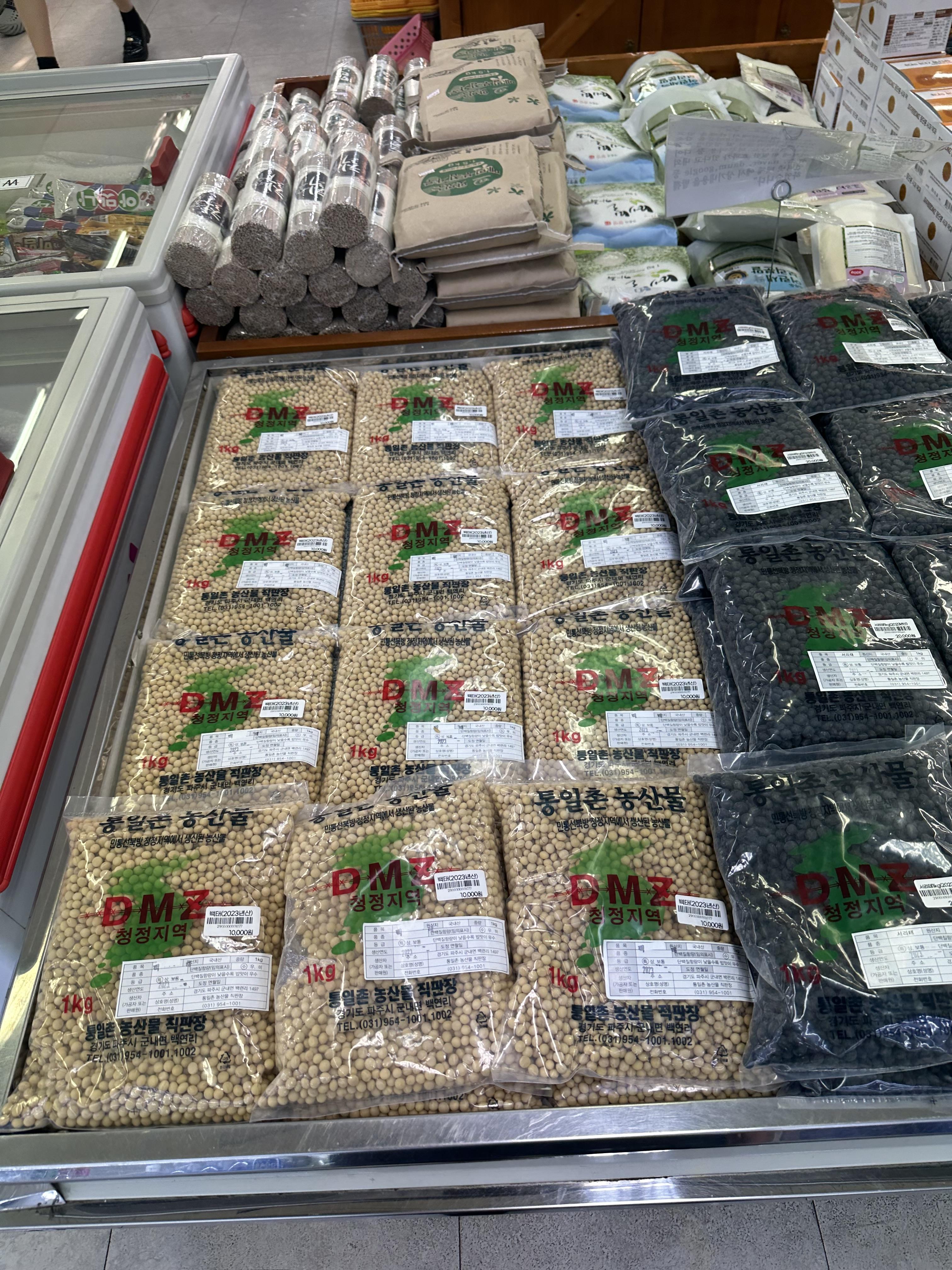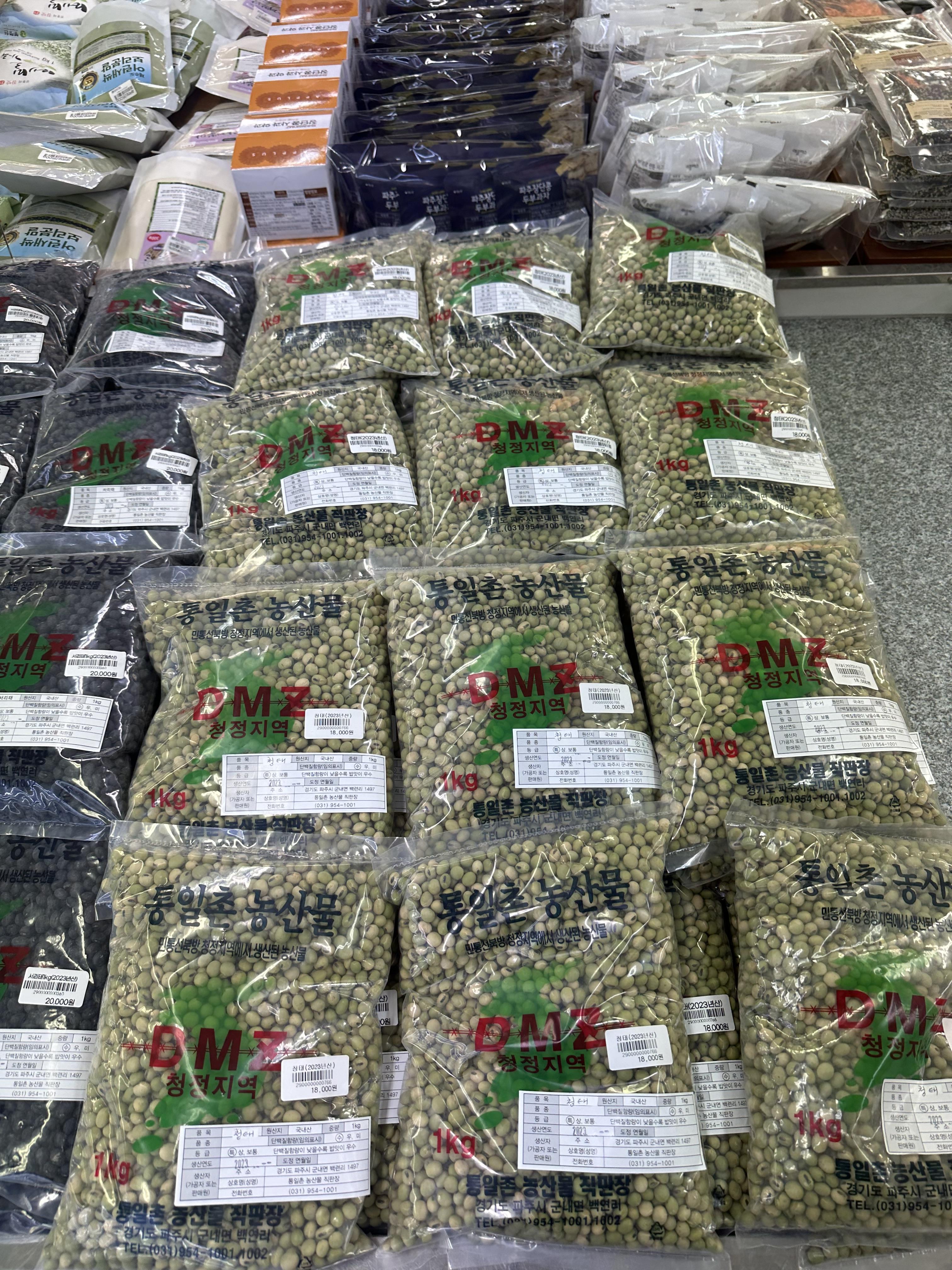 통일촌 농산물 직판장에 도착 후 바로 직판장으로 입장했습니다. 통일촌 내에 유일한 대형 마트로 보이고 있습니다. 민통선 내에 위치하 마을이고 바로 뒤쪽으로는 군사분계선이라 우리나라 뿐만 아니라 유엔 사령군의 영토로 지정되어있기 때문에 에 프랜차이즈 매장이나 대형 마트가 들어올 수 없는건 당연한 것 같습니다. 통일촌 농산물 직판장은 흔히 도시에서 볼 수 있는 시골동네에 있는 작은 농협 하나로마트와 같은 크기였습니다. 대부분 기념품 위주로 판매하는 것 같습니다. 지금 생각든건데 민통선안에서 택배나 쿠팡도 가능한지도 궁금하긴 합니다. 통일이 되거나 지금보다 관계까 좋아져서 민통선안에서도 자유로워지는 날이 왔으면 좋겠습니다.