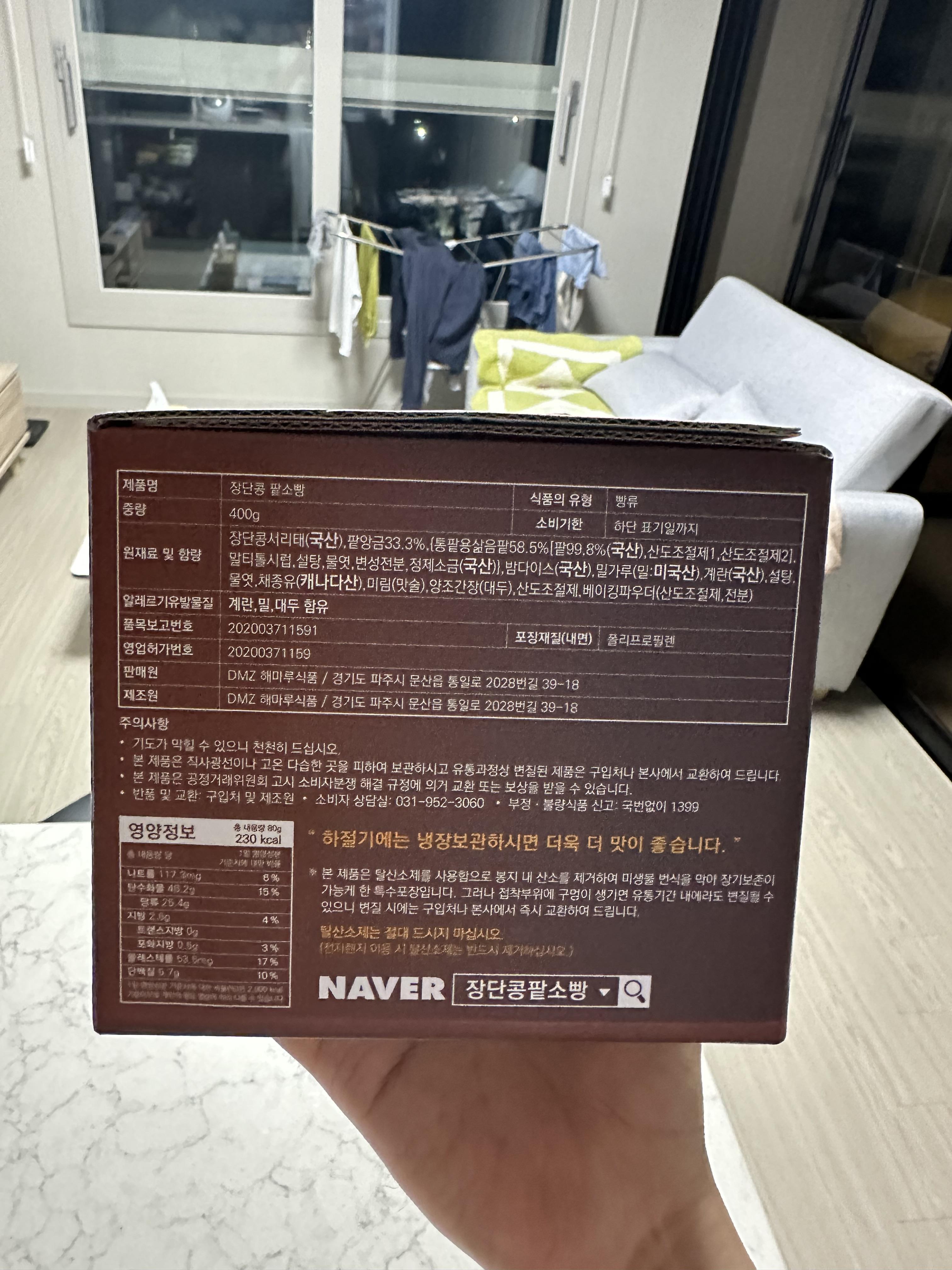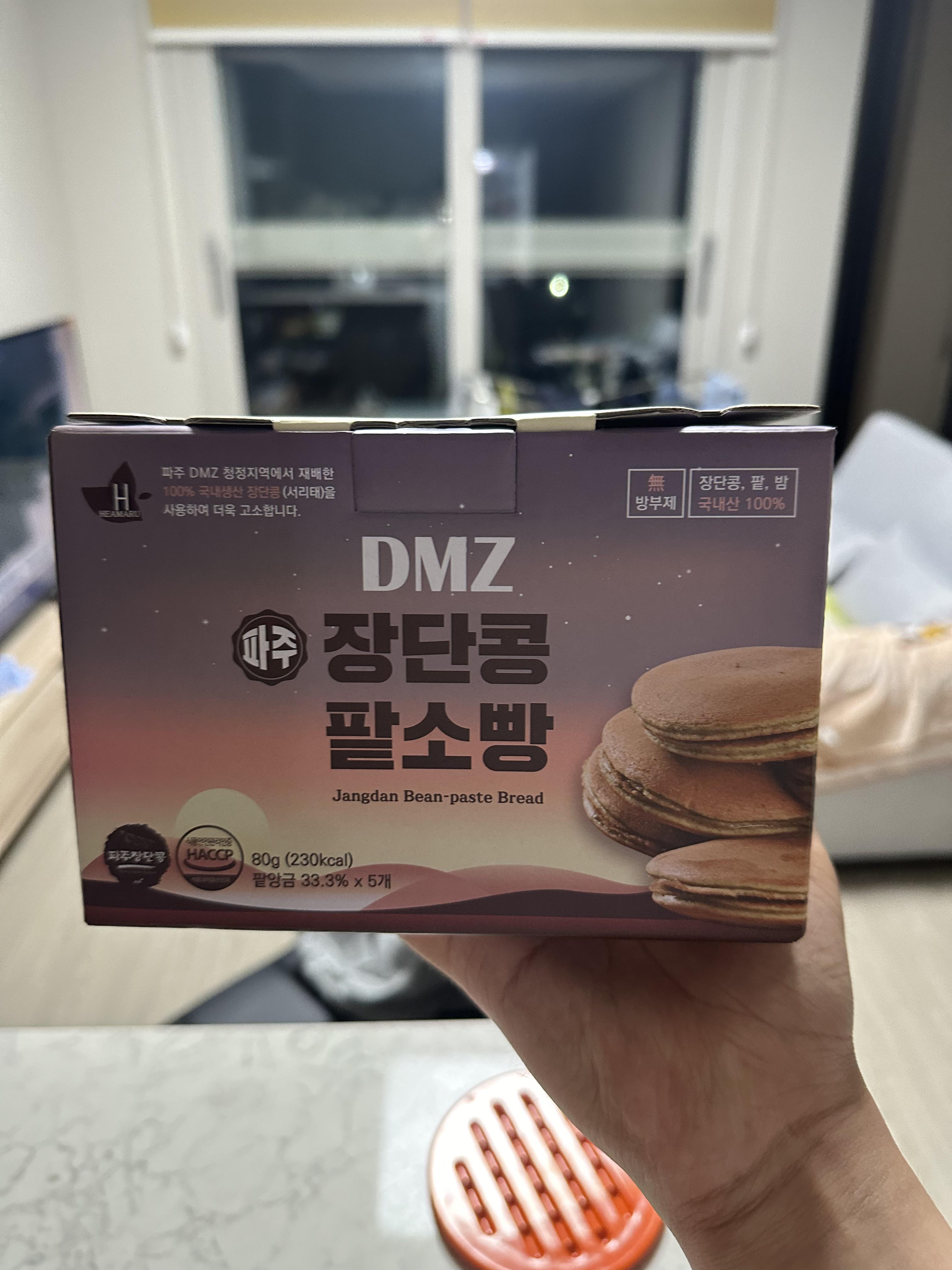 파주 DMZ 장단콩 팥소빵 한박스 구매했습니다. 한박스에는 5개가 들어있었습니다. 냉장 보관할 경우 오랫동안 드실수 있구요.