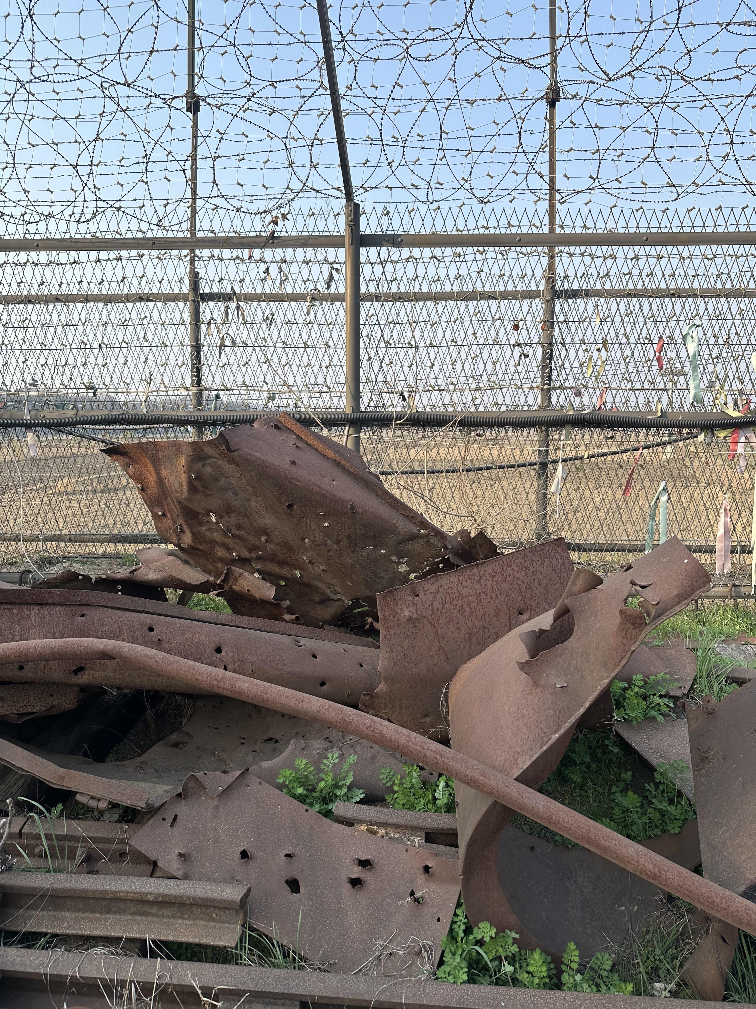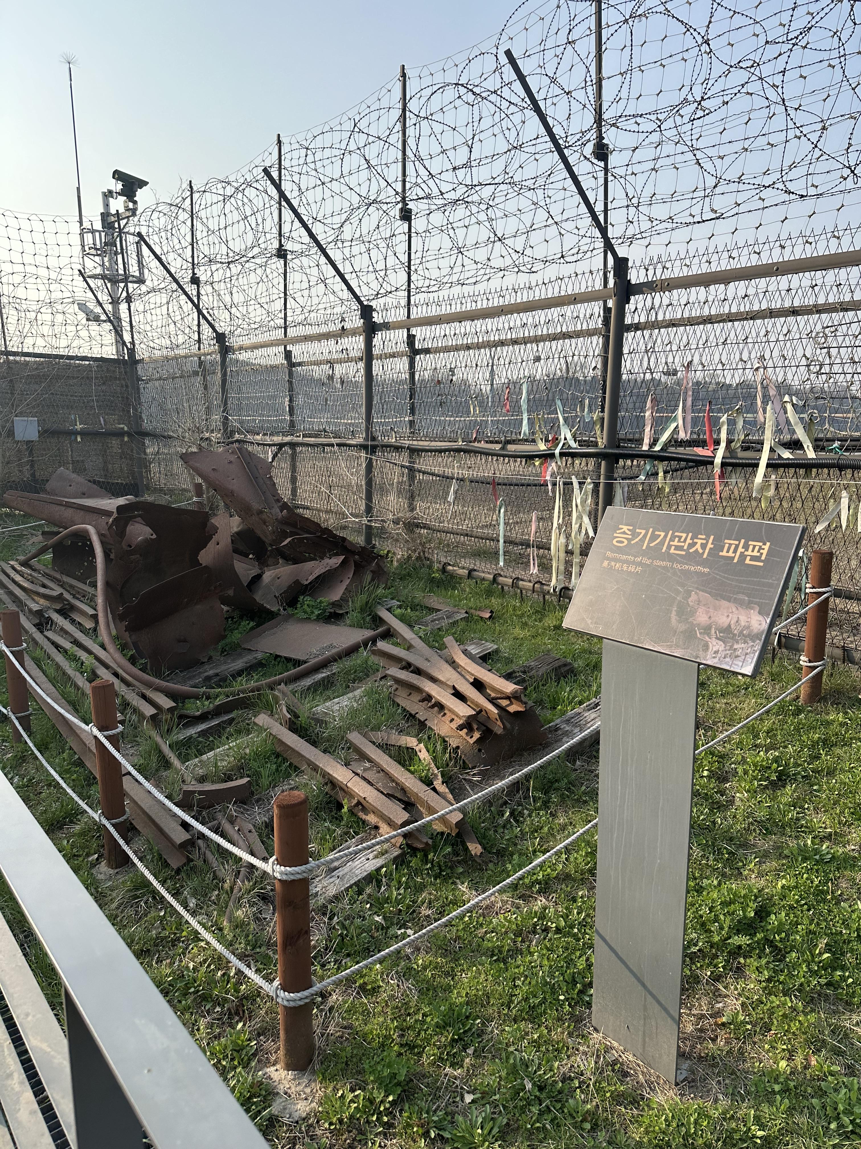 증기기관차는 당시 중공군의 개입과 미군 등 전쟁 속에서 총탄에 의해 부서졌습니다. 당시 총탄에 맞아 부서진 증기기관차의 파편도 주변에 널부러졌을것으로 보이는데요. 전시해놓은 장단역 증기기관차 옆에는 총탄에 의해 열차 파편을 전시해놓은 것을 볼 수 있습니다. 경의선 장단역 증기기관차 야외 전시장 옆에는 철책이 보이며 철책너머로는 민통선 때문에 분단과 전쟁의 아픔을 그대로 느껴지고 있습니다.