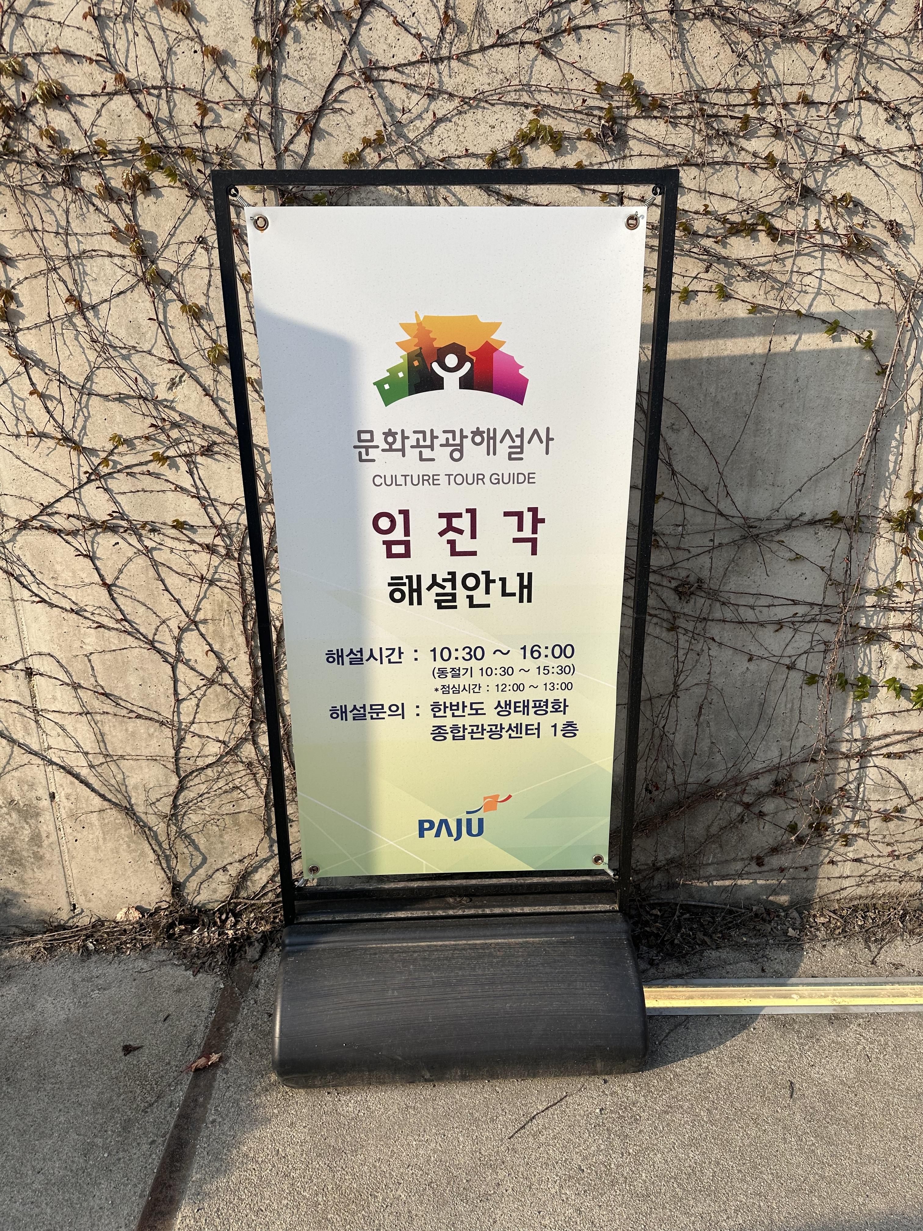 임진각 관광지 안에서는 해설 안내를 진행 하고 있습니다. 파주 DMZ 관광지 안에서도 해설 안내를 볼 수 있었는데요. 도라전망대의 경우에도 파주시 해설원을 중재로 해설 안내를 받을 수 있었습니다. 임진각 관광지안에서도 해설이 필요하다면 바로 옆에 한반도 생태평화 종합관광센터 1층에서 받을 수 있습니다.