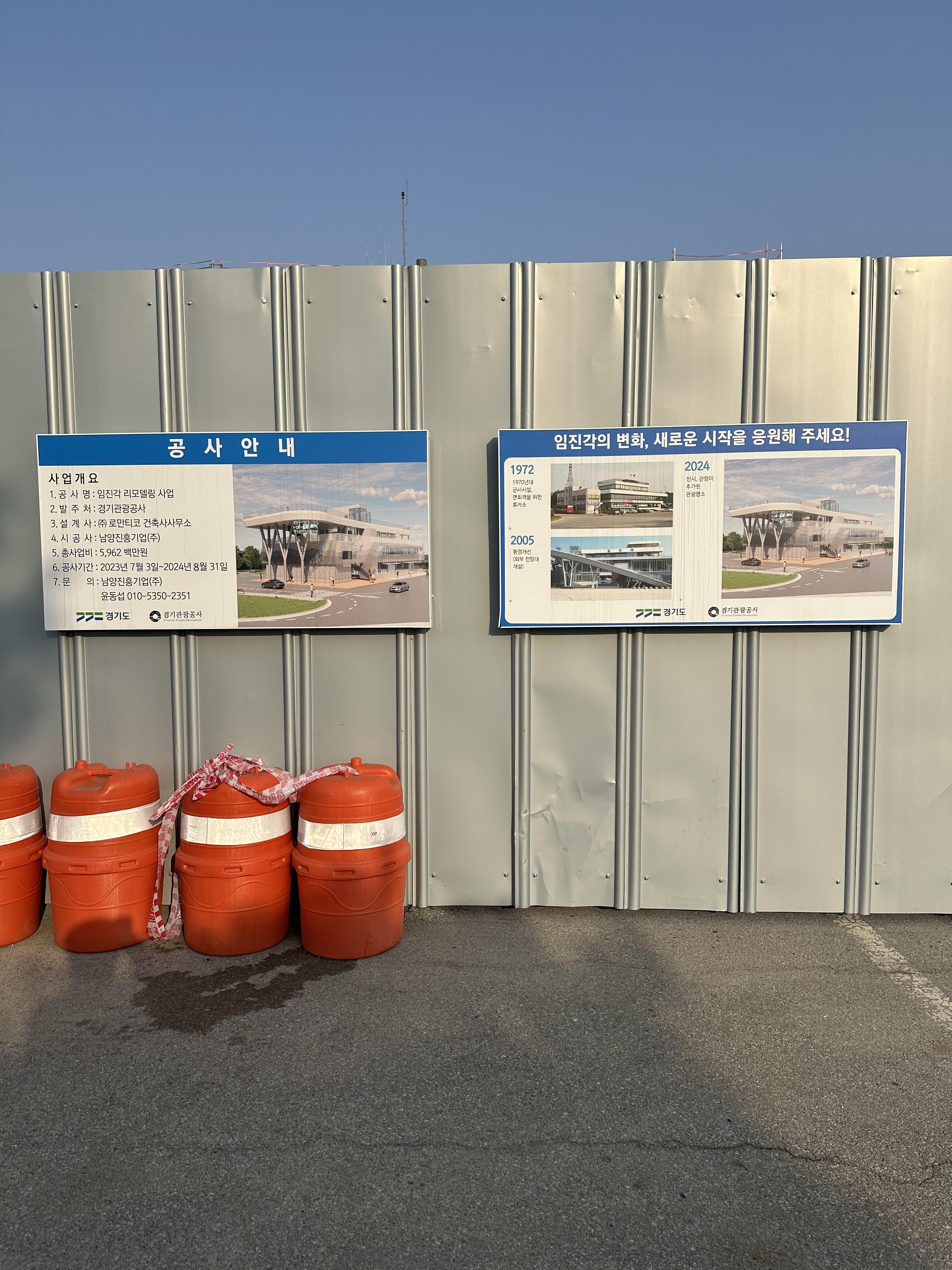 파주 임진간 관광지 내에는 아직도 여러가지 공사 사업을 진행하고 있었습니다. 1972년에 군사시설로 면회객을 위한 휴게소에서 환경개선한 외부전망대로 2005년에 변신했습니다. 그리고 2024년에는 전시와 관람이 추가된 관광명소로 리모델링 하고 있으니 기대하시면 좋을 것 같습니다. 2024년 8월 31일까지 공사한다고 되어있는데요. 포스팅 작성시점에는 공사가 한참 중일텐데 아마 지금은 관람이 가능할 것으로 보입니다.