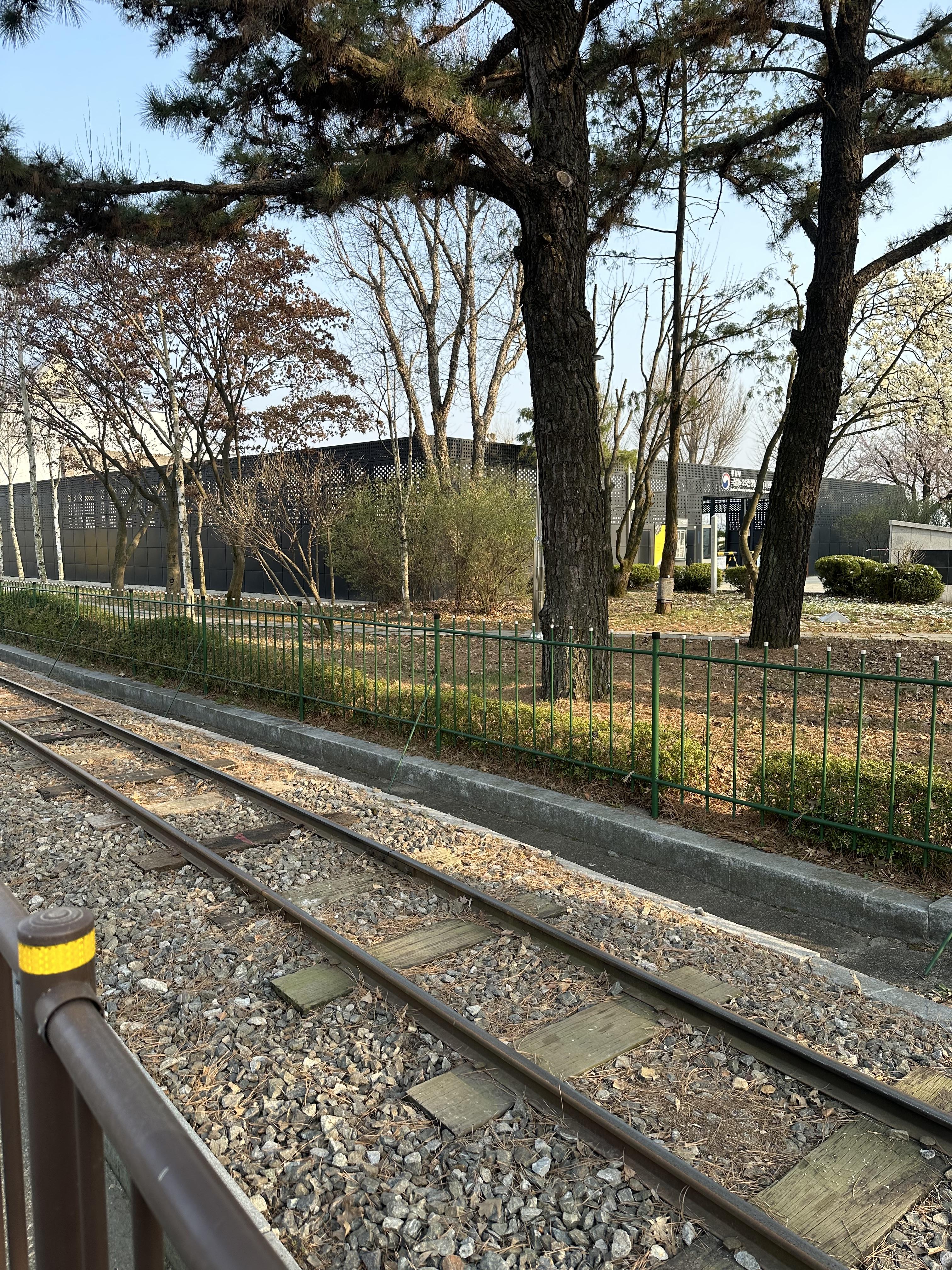평화열차 주변에는 열차 선로가 있습니다. 열차 선로 따라 운행하는 것을 볼 수 있습니다. 이 선로가 경의선선로를 이용해서 만들었는지 관람용으로 만들어놓은것인지는 잘모르겠습니다. 아마 선로가 넓이가 넓지느 않아서 당시 증기기관차가 다니던 선로는 아닌 것 같습니다.