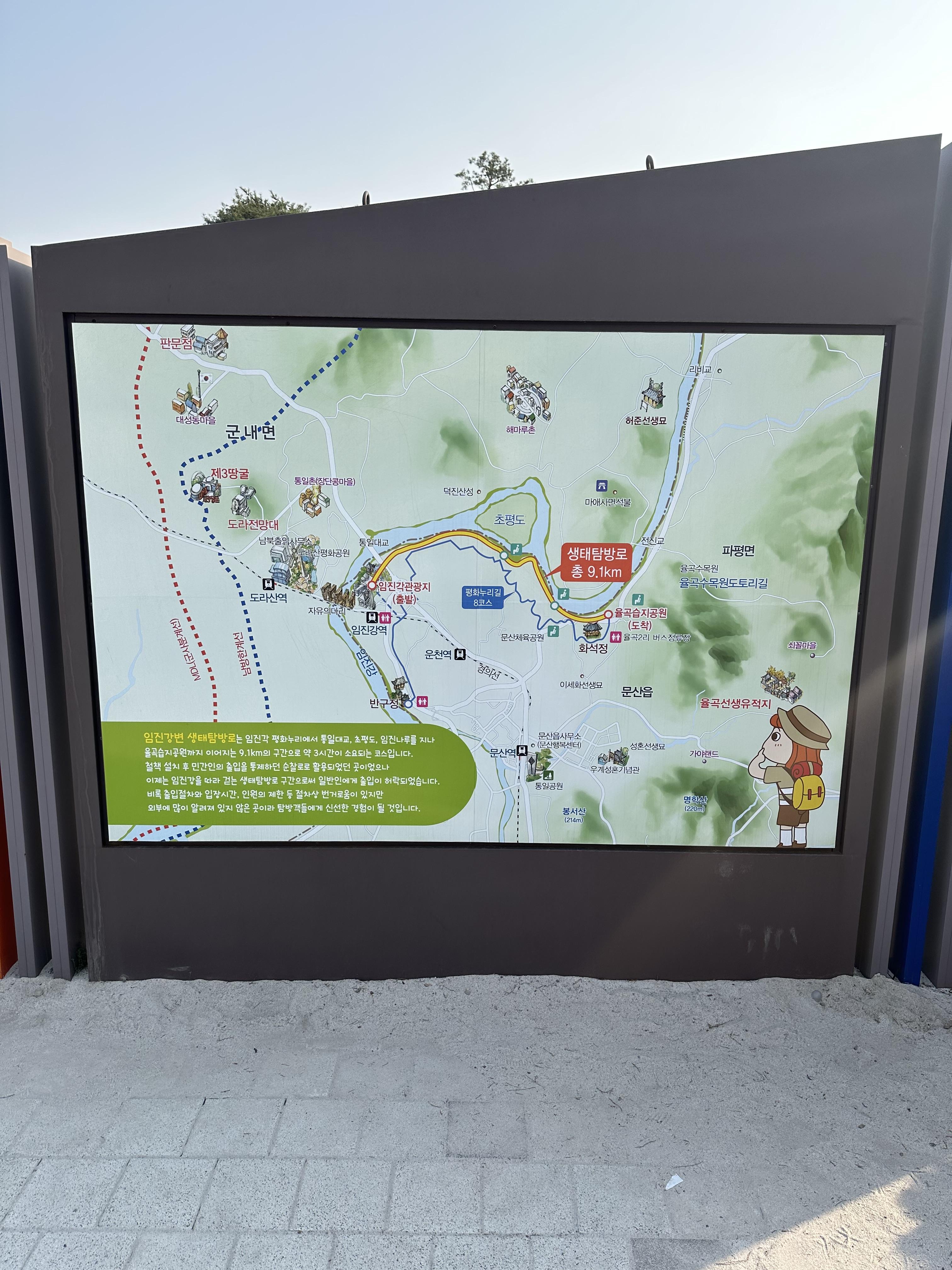 - 임진각 평화누리에서 통일대교, 초평도, 임진나루를 지나 율곡습지공원까지 이어주는 9.1km의 구간으로 약 3시간이 소요되는 코스입니다.