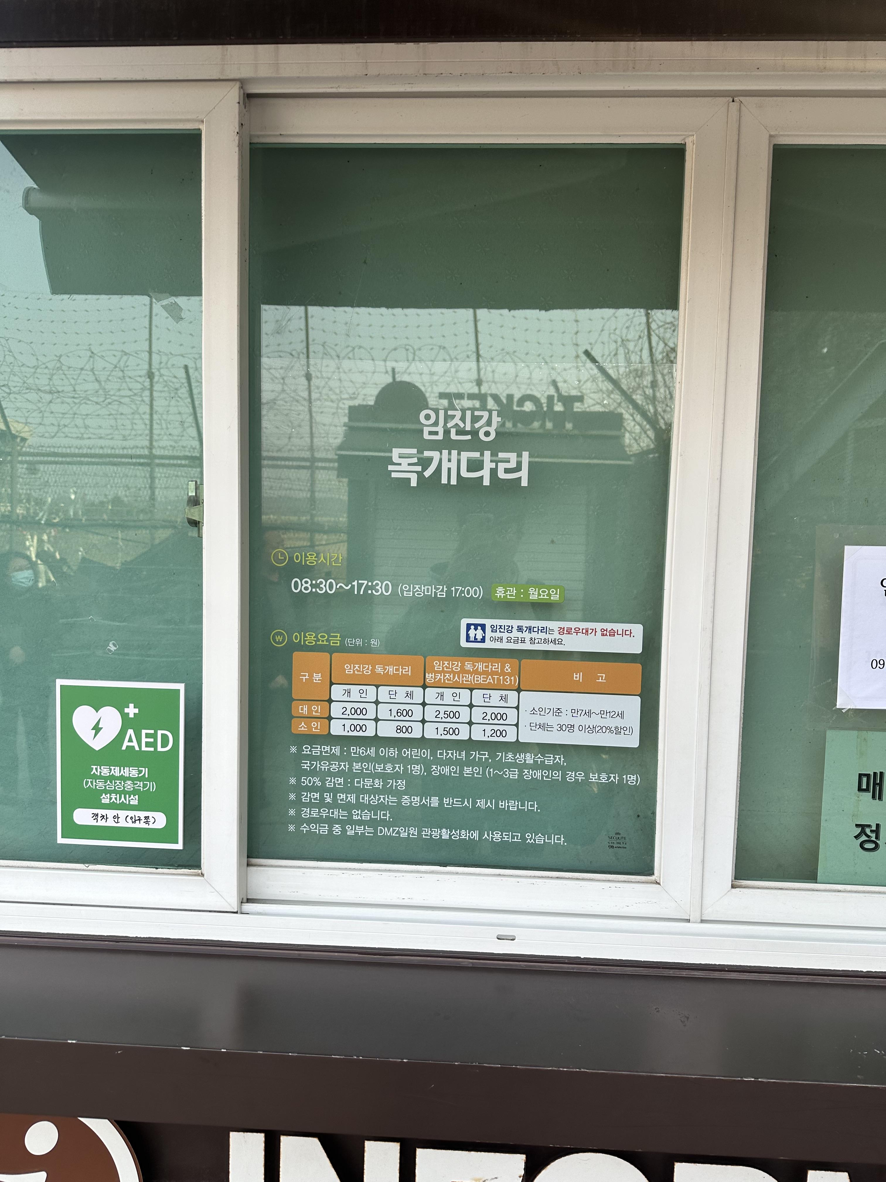 - 임진각 독개다리는 경로 우대가 없습니다.