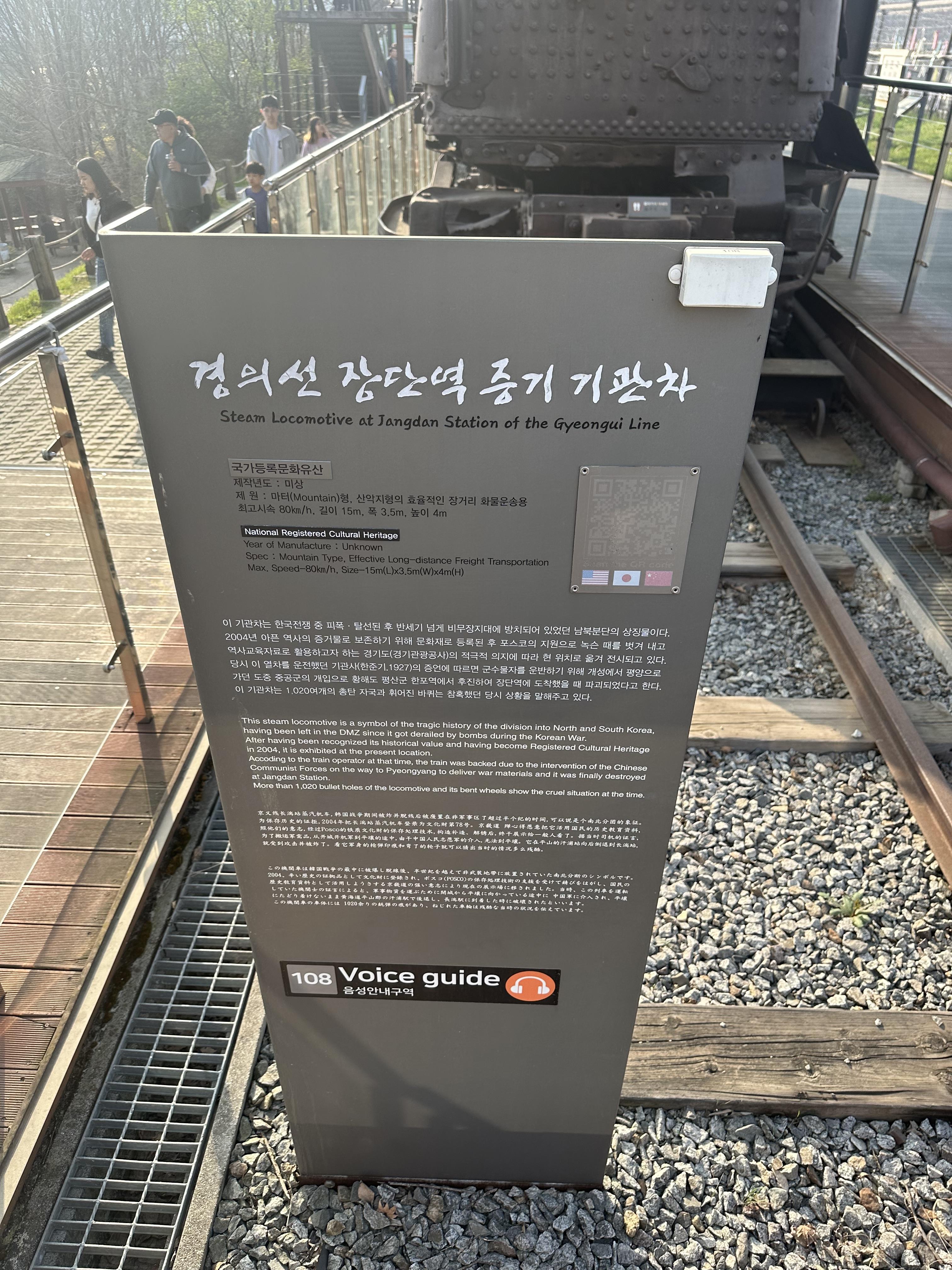 - 이 기관차는 한국 전쟁 중 피폭, 탈선된 후 반세기 넘게 비무장지대(DMZ)에 방치되어 있었던 남북분단의 상징물이다.