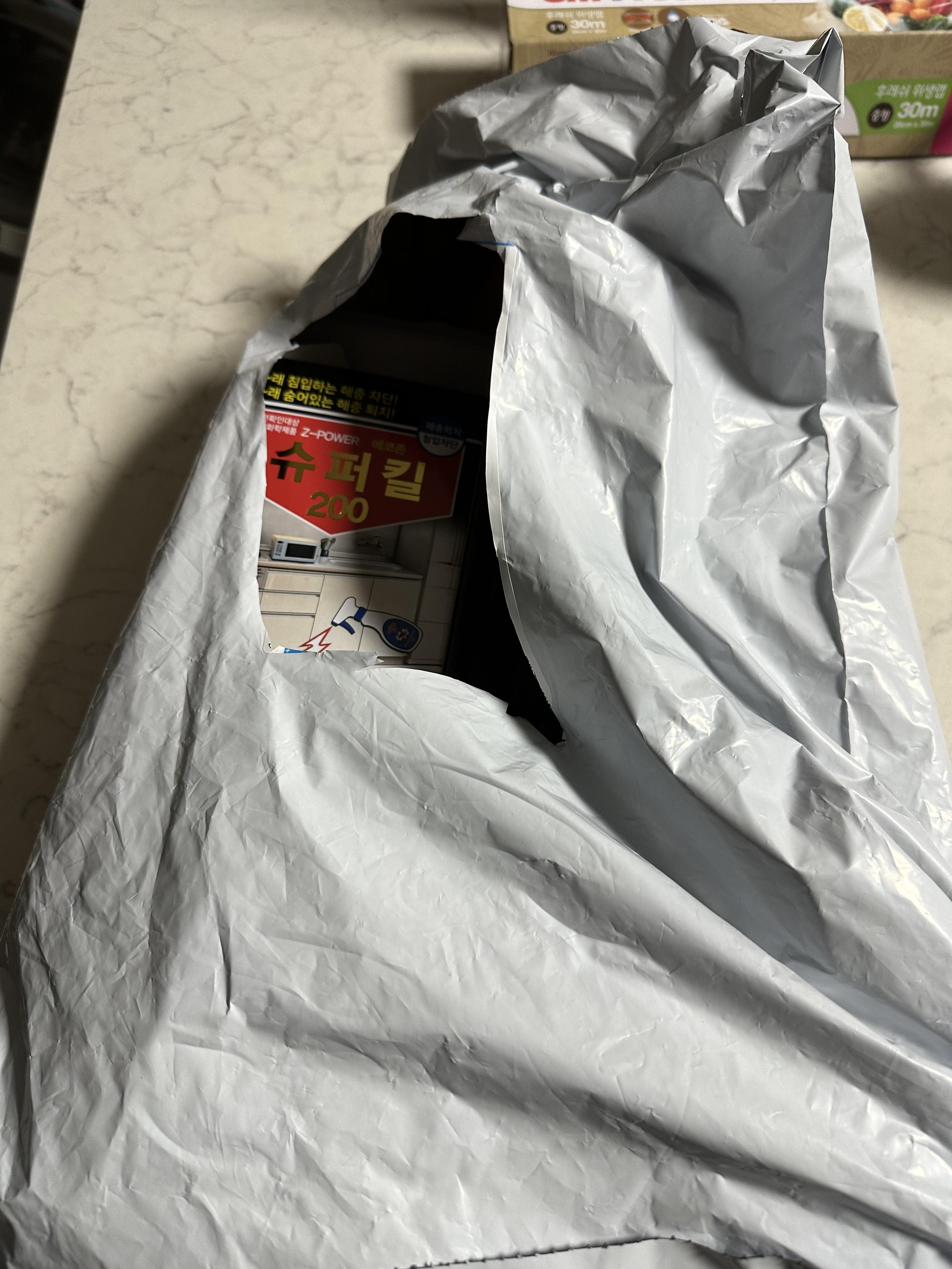 공격성이 있는 바퀴벌레가 아니지만 아무래도 바퀴벌레가 먹어야 퇴치되는 성분이기 때문에 혹여 바퀴벌레가 먹이 주변에 가지 않을 수 도 있고 피해다니다가 결국에는 안먹고 더 커질 걱정때문에 뿌리는 바퀴벌레 약을 샀습니다. 잠자고나서도 또 바퀴벌레가 보일까 내심 걱정했는데 다행히 보이지 않고 출근 후 퇴근하고 집에 도착하니까 집앞에 쿠팡 로켓배송으로 슈퍼킬200이 빠르게 도착해있었습니다.