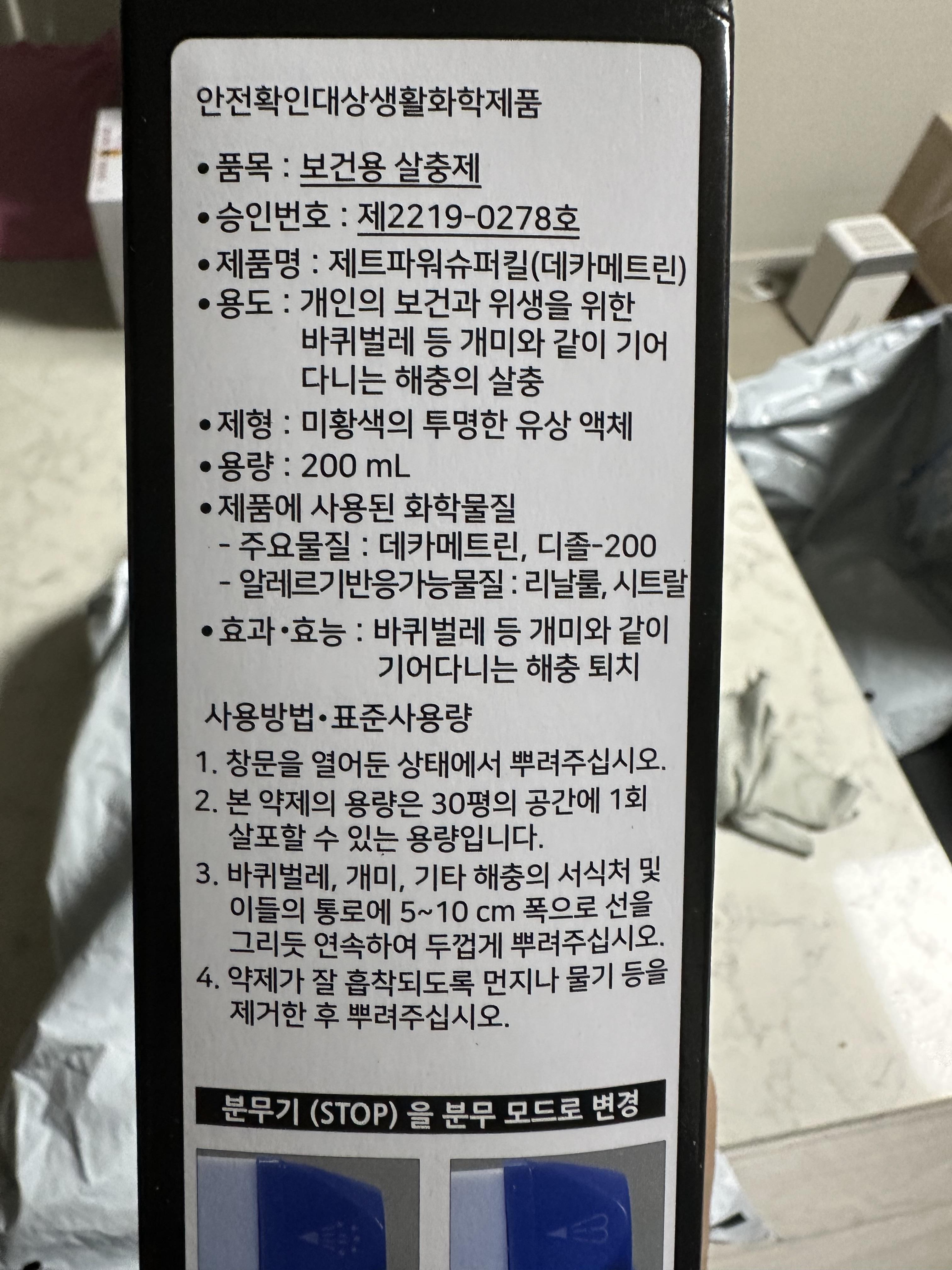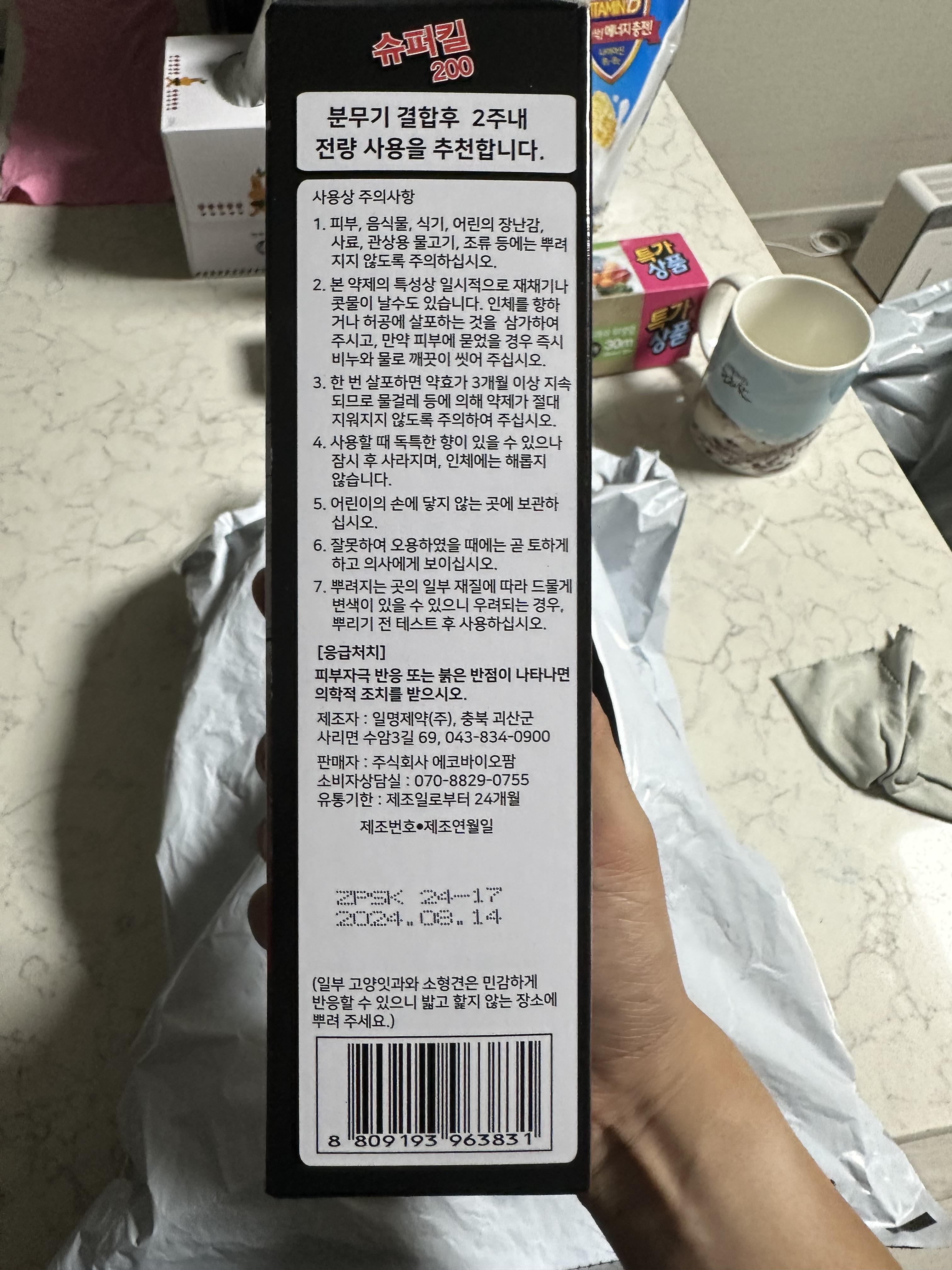 - 집이 크다면 슈퍼킬200을 두개 정도 사는 것을 추천합니다.