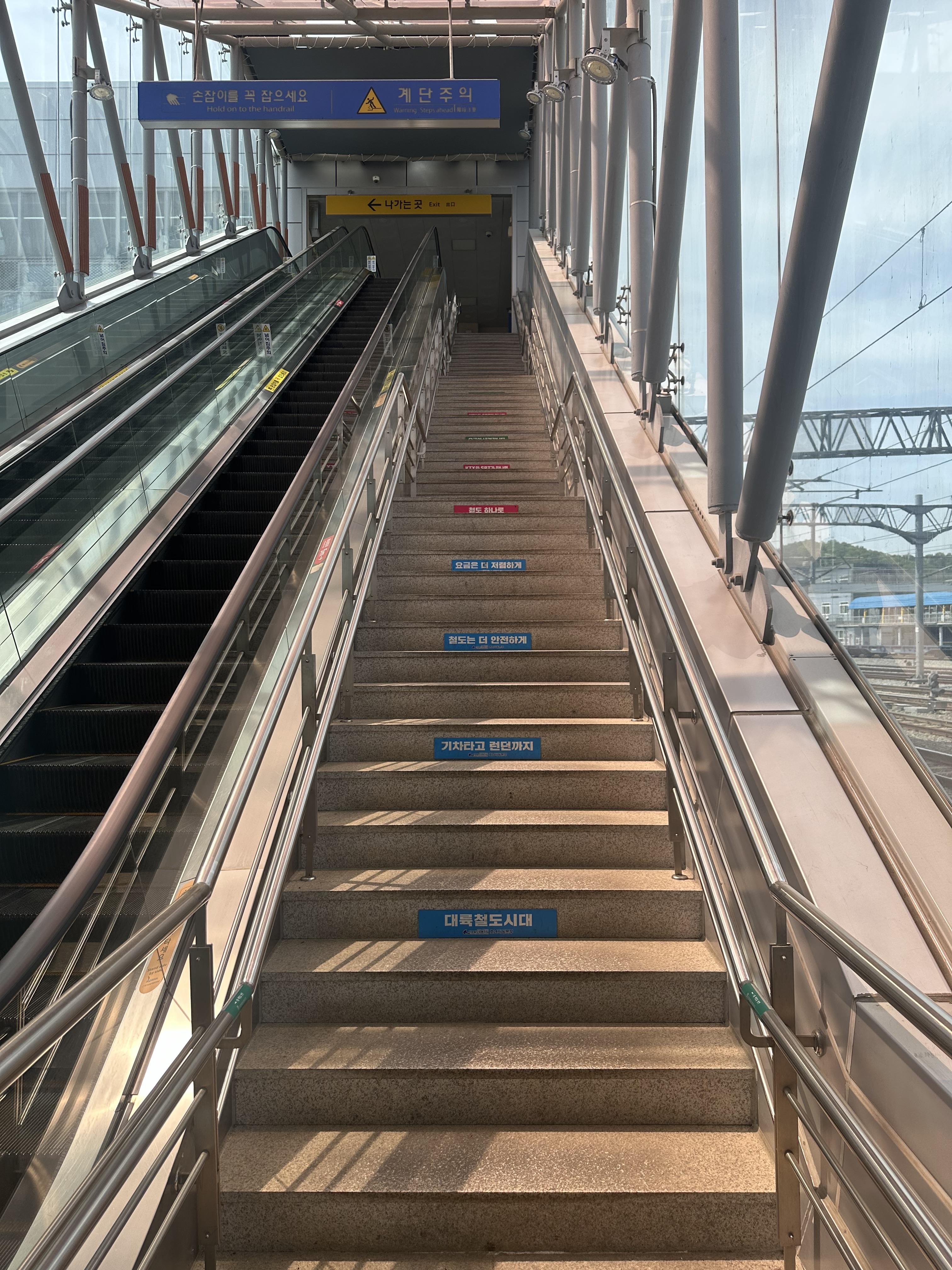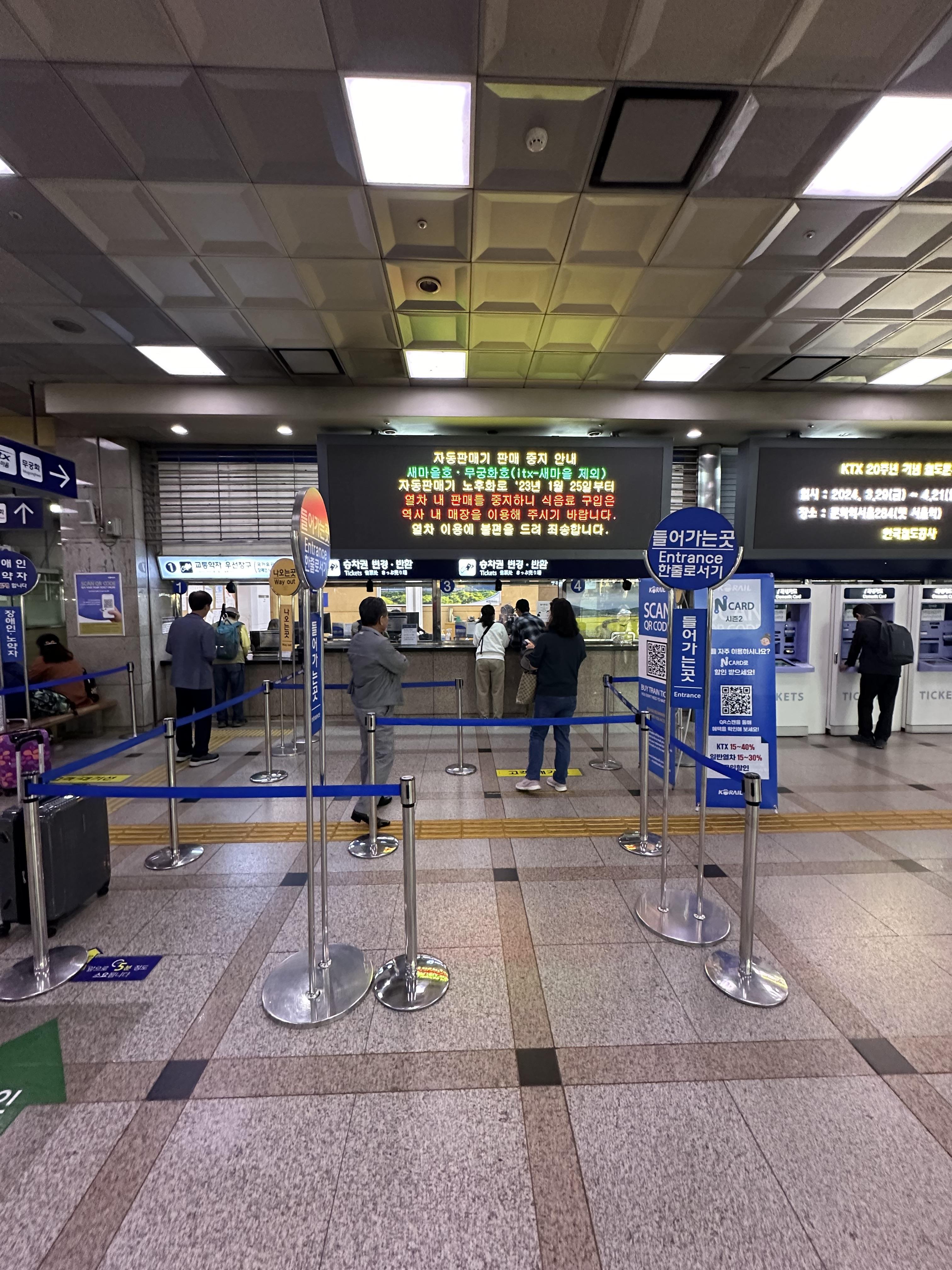 과거에는 역사 내 대합실에 위치한 매표소에서 줄을 서서 열차 표를 구매 했었는데요. 요즘은 철도 역사 내에서도 키오스크가 있어서 직원 통하지 않고도 편하게 구입 할 수 있습니다. 키오스크가 아니더라도 앱을 통해 몇일전 간편하게 예약을 할 수 있습니다. 지하철의 경우 이미 10년전부터 매표소가 사라지고 거의 키오스크를 이용하거나 후불 교통 카드를 사용 하고 있는데요. 아무래도 장거리로 이동하는 열차의 경우에는 미리 표를 구하지 못하거나 입설이라도 구해야 하는 경우에는 이렇게 현장에 와서 직원을 통해 구하는 경우도 볼 수 있습니다. 혹은 나이가 드신 어르신분들의 경우에는 직원을 통해도움을 받는 경우도 많이 있습니다. 수원역 2층이라고 할까요 열차 대합실에서도 지하철역과 쉽게 갈 수 있도록 연결 되어있습니다. 저같은 경우 로데오거리를 보기 위해 지하에서 올라와서 다시 광장에서 왔습니다. 만약 1호선 지하철을 타고 오시는 분이라면 열차 대합실로 가는 계단이 있으니 계단으로 오면 좀 더 빠르게 올라 올 수 있습니다.