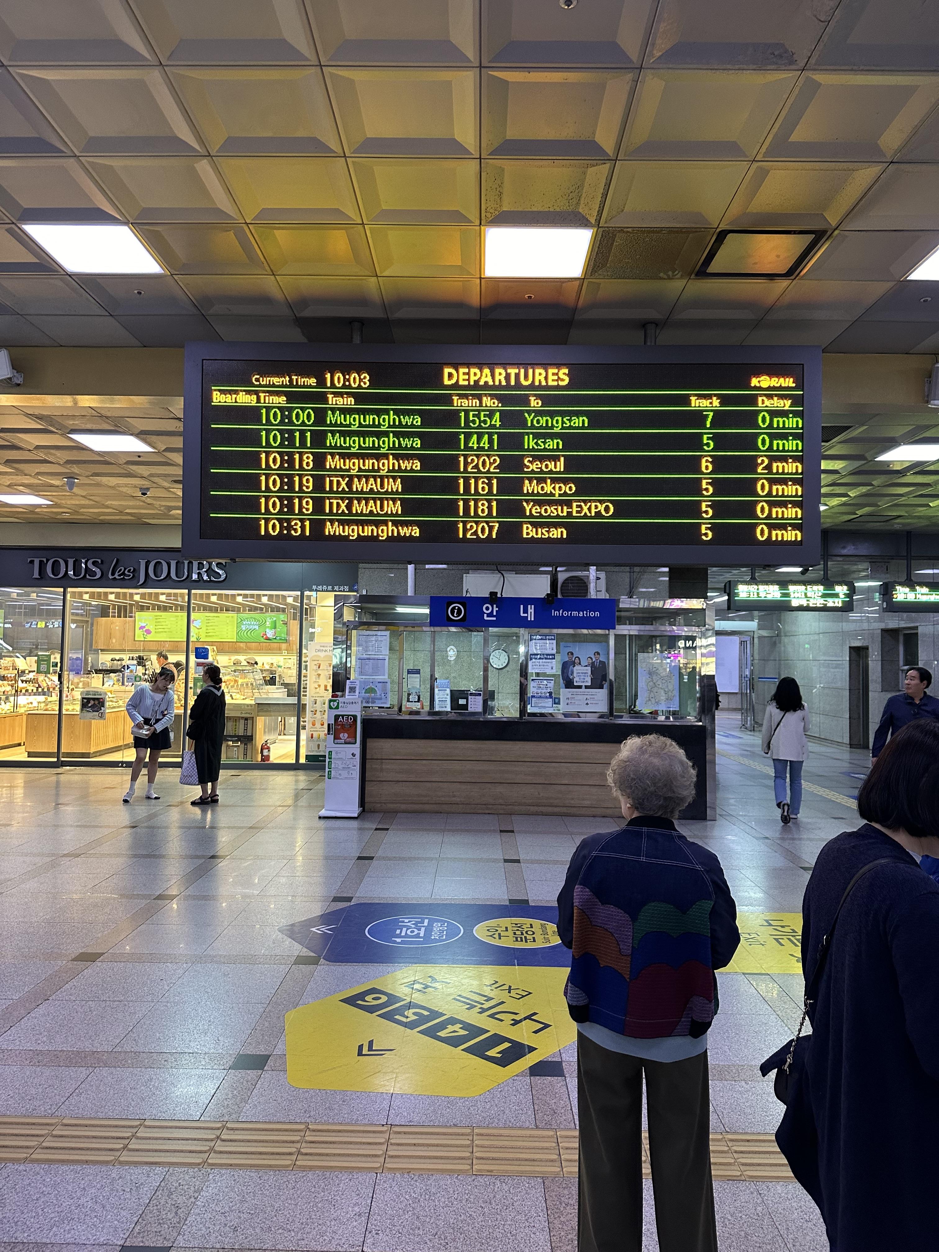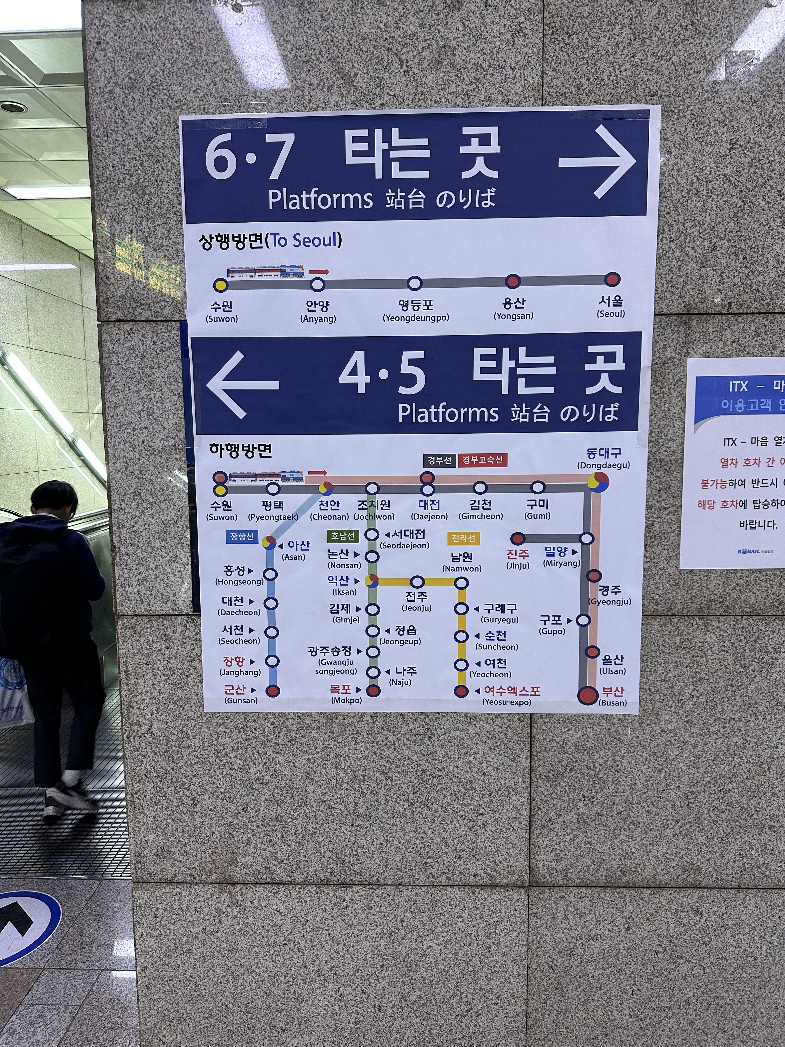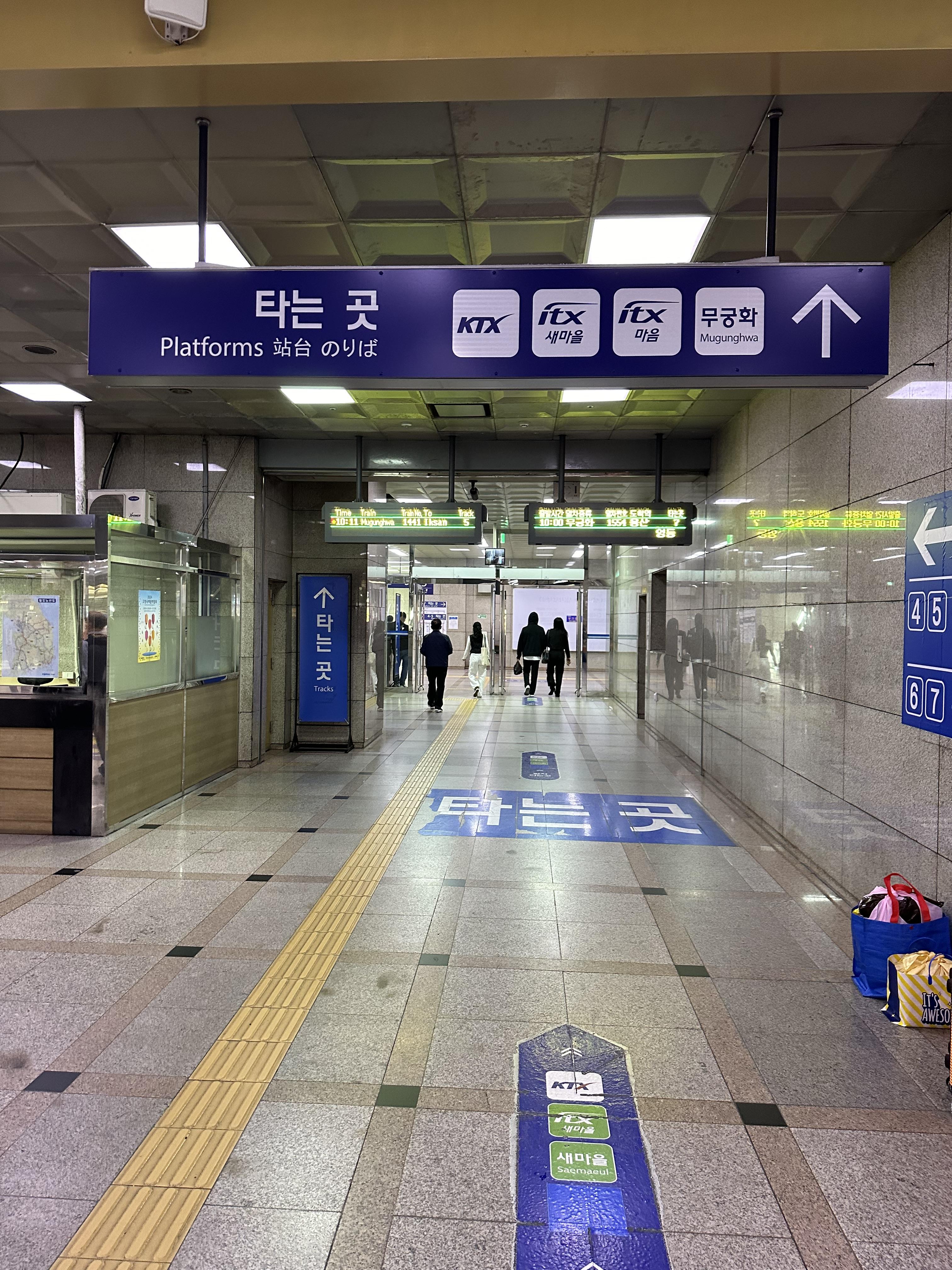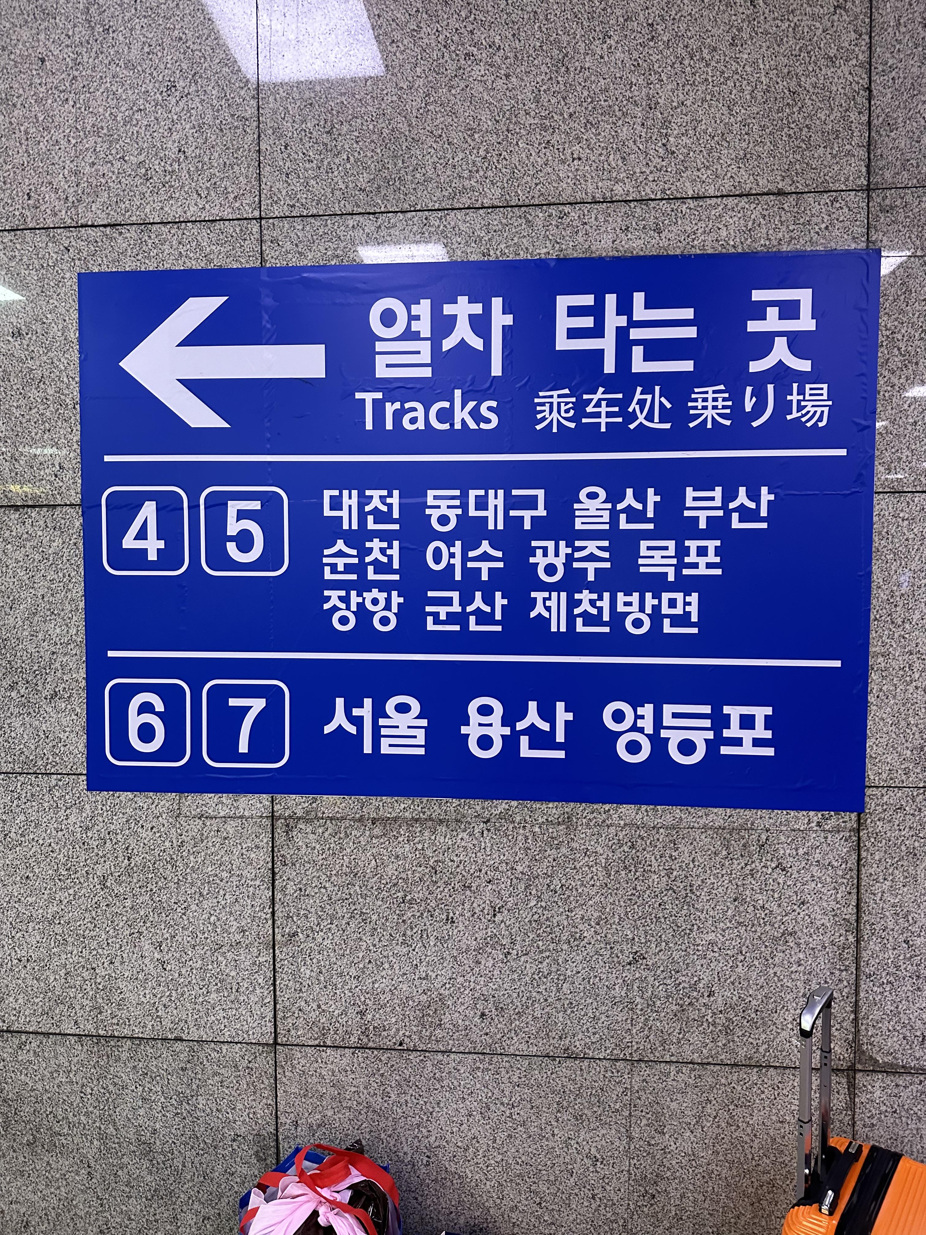 - 4번, 5번 승강장 : 대전, 동대구, 울산, 부산, 순천, 여수, 광주, 목포, 장항, 군산, 제천 방향
