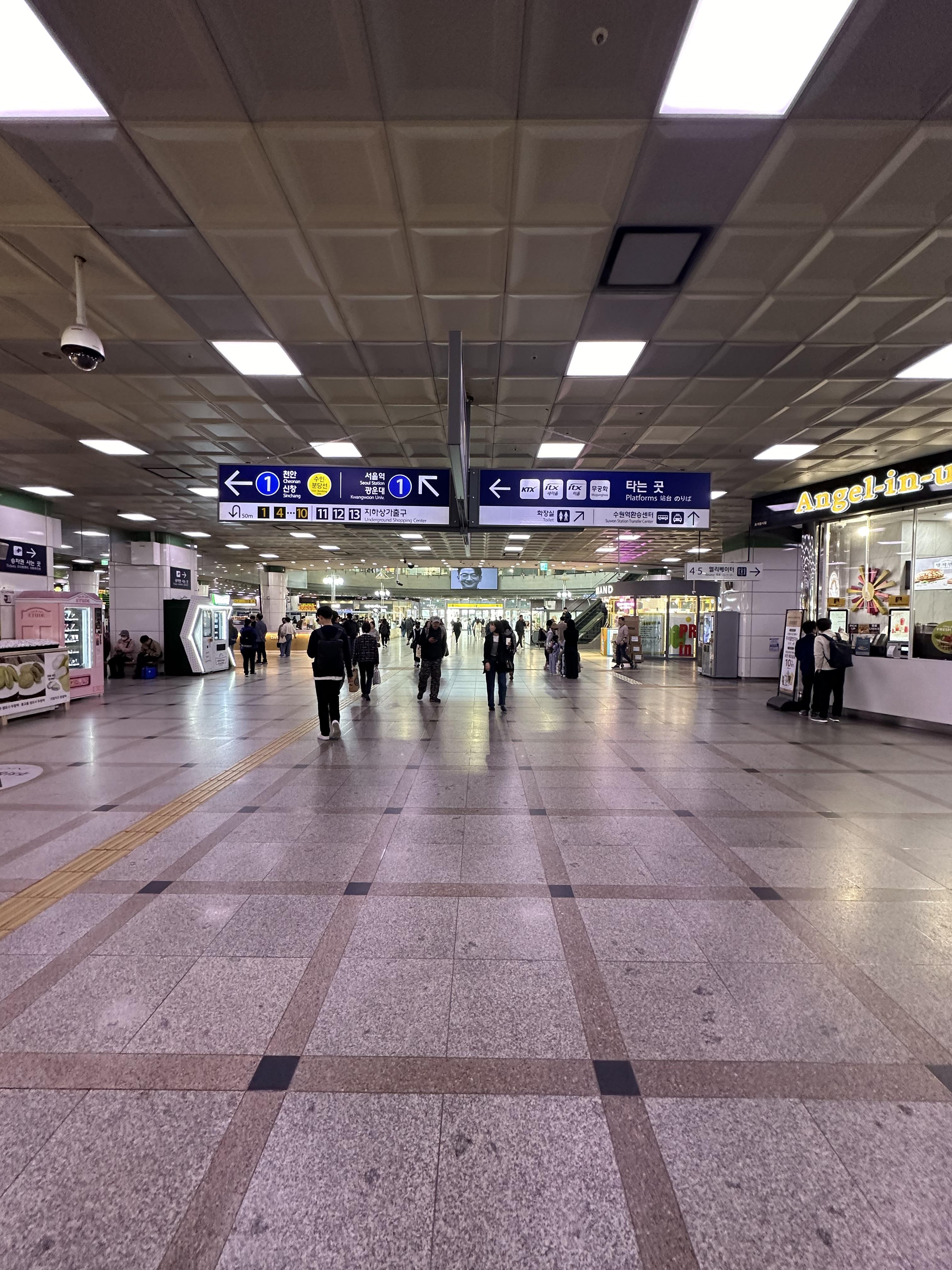 서울에서는 서울역과 용산역 그리고 청량리역이 가장 큰 역인데요. 서울역,용산역, 청량리역에 가장 큰 이유는 아마 다른 도시로 가기 위한 철도가 오기 위해 많은 승강장 플랫폼을 유치하면서 자연스럽게 건물도 커지면서 사람들도 오는 것 같습니다. 경기도에서는 유일하게 수원역이 그 역할을 하고 있습니다. 지방 도시에서 경기도 각 지역으로 가기 위한 철도 역사로 중요한 역할을 하고 있습니다. 그래서 수원역 열차 대합실은 물론이고 지하에 수인분당선과 1호선으로 환승하는 곳에도 애경백화점과 이어지는 통로도 보이고 다양한 상가들이 역사 내에 쏙쏙 입점 되어 있는 것을 볼 수 있습니다.