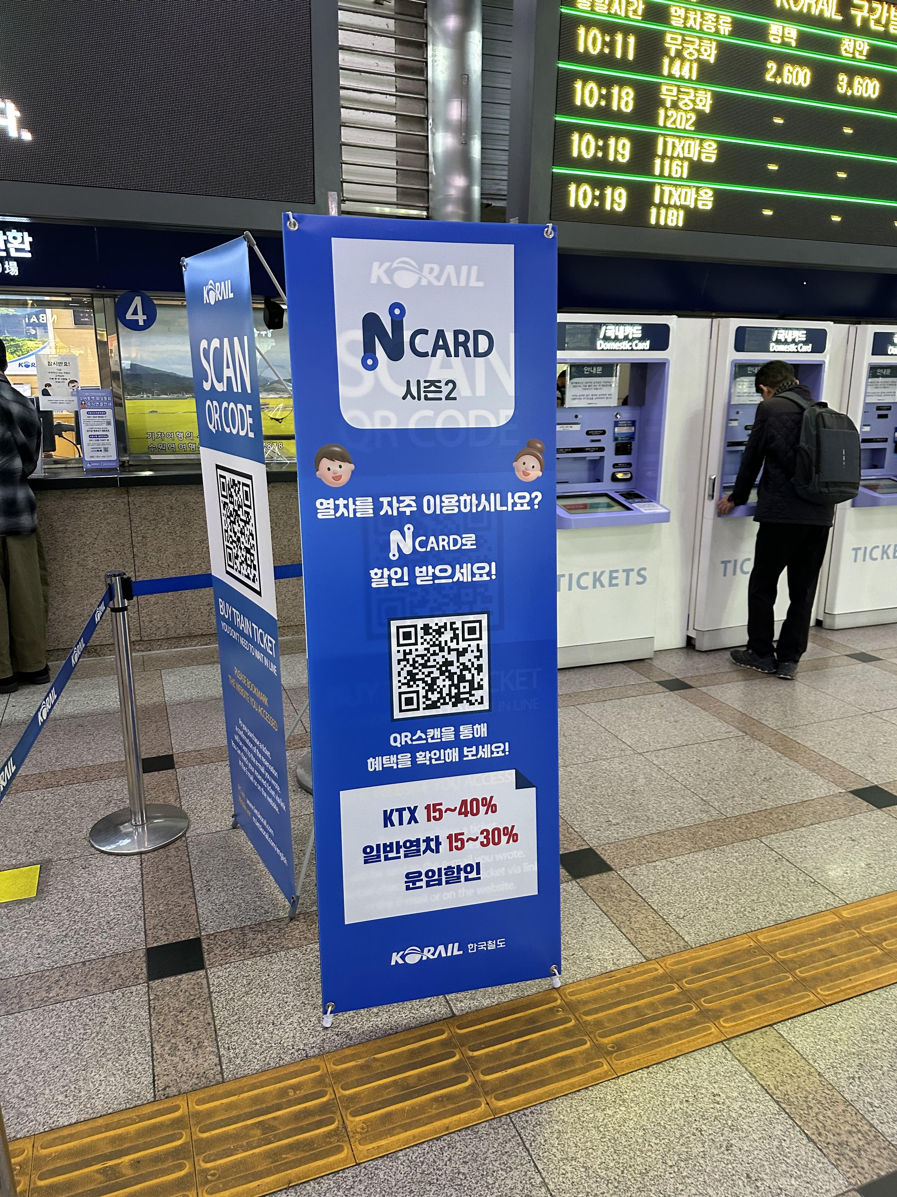 - 열차를 자주 이용하신다면 N CARD로 할인을 받을 수 있다고 해요.