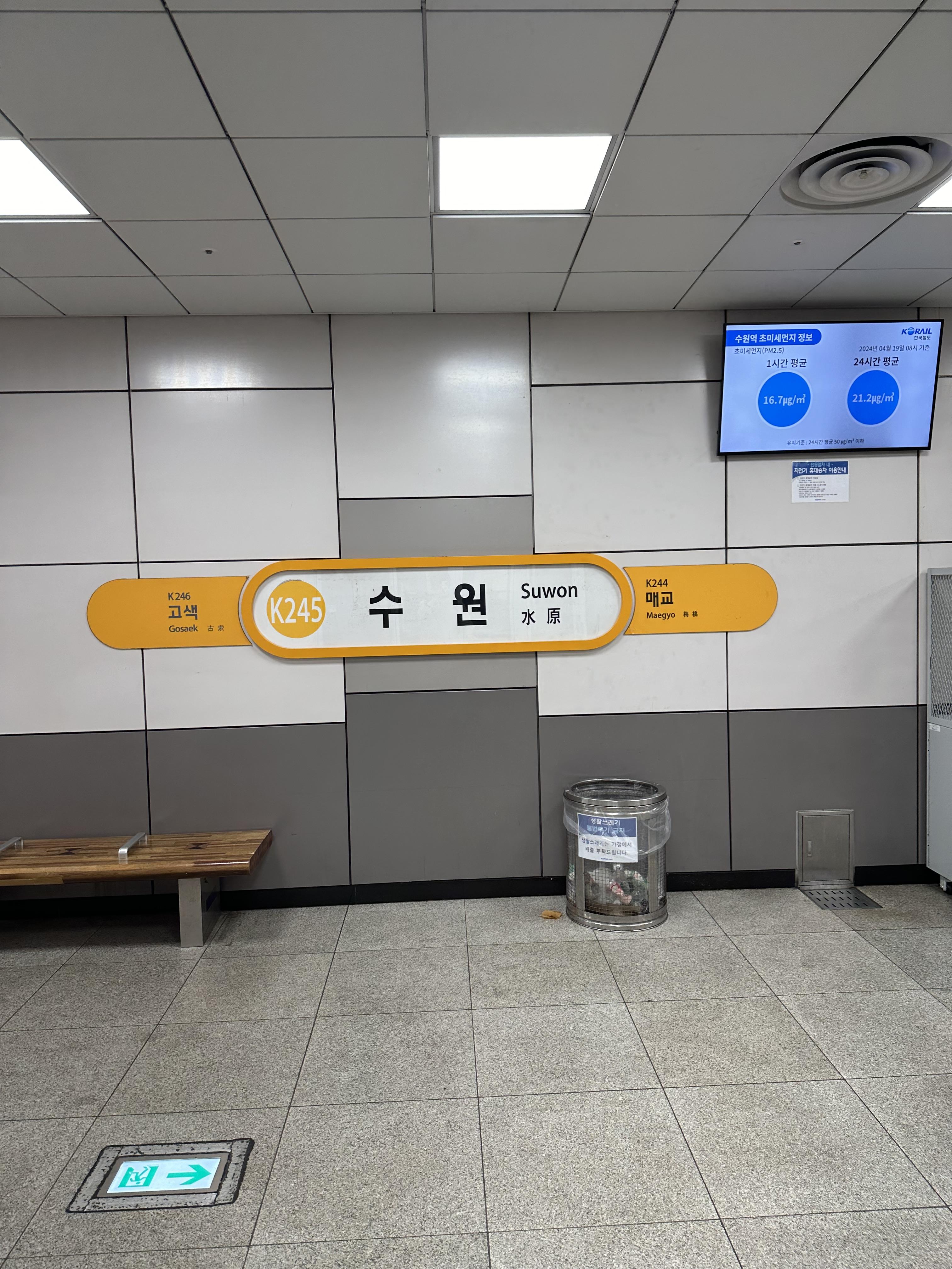 안산에서 전라선 순천을 가기 위해서는 시외버스도 있기는 하지만 어렸을 때부터 기차를 좋아하던 저는 조금 멀더라도 안산 시외버스터미널이 아니라 수원역까지 가서 전라선 기차를 타기로 했습니다. 2020년 6월부터 안산에서 수원까지 수인분당선이 개통이 되었습니다. 그전까지만 해서 경원여객 110번, 성우운수 909번, 태화상운 707번 버스를 타고 수원역까지 버스타고 오래 걸렸는데요. 수인 분당선의 등장으로 안산에서 수원역까지 빠르게 갈 수 있게 되었습니다. 한가지 아쉬운 점은 안산 사리역 부터 수원까지는 수인분당선 전용 선로이지만 사리역 지나 한대앞부터는 수인분당선과 4호선 공용구간으로 되어있어서 수인분당선이 많이 다닐 수 없다는 점입니다. 출퇴근 시간에도 4호선에 비하면 한대 놓치면 15분에서 20분은 기다려야 하긴 하지만 시간만 잘 맞추면 수원역까지 빠르게 갈 수 있어서 너무 좋습니다. 이날 고잔역에 도착해서 승강장으로 올라갔을 때 운이 좋게도 얼마있지 않아 수인분당선을 탈 수 있었습니다.