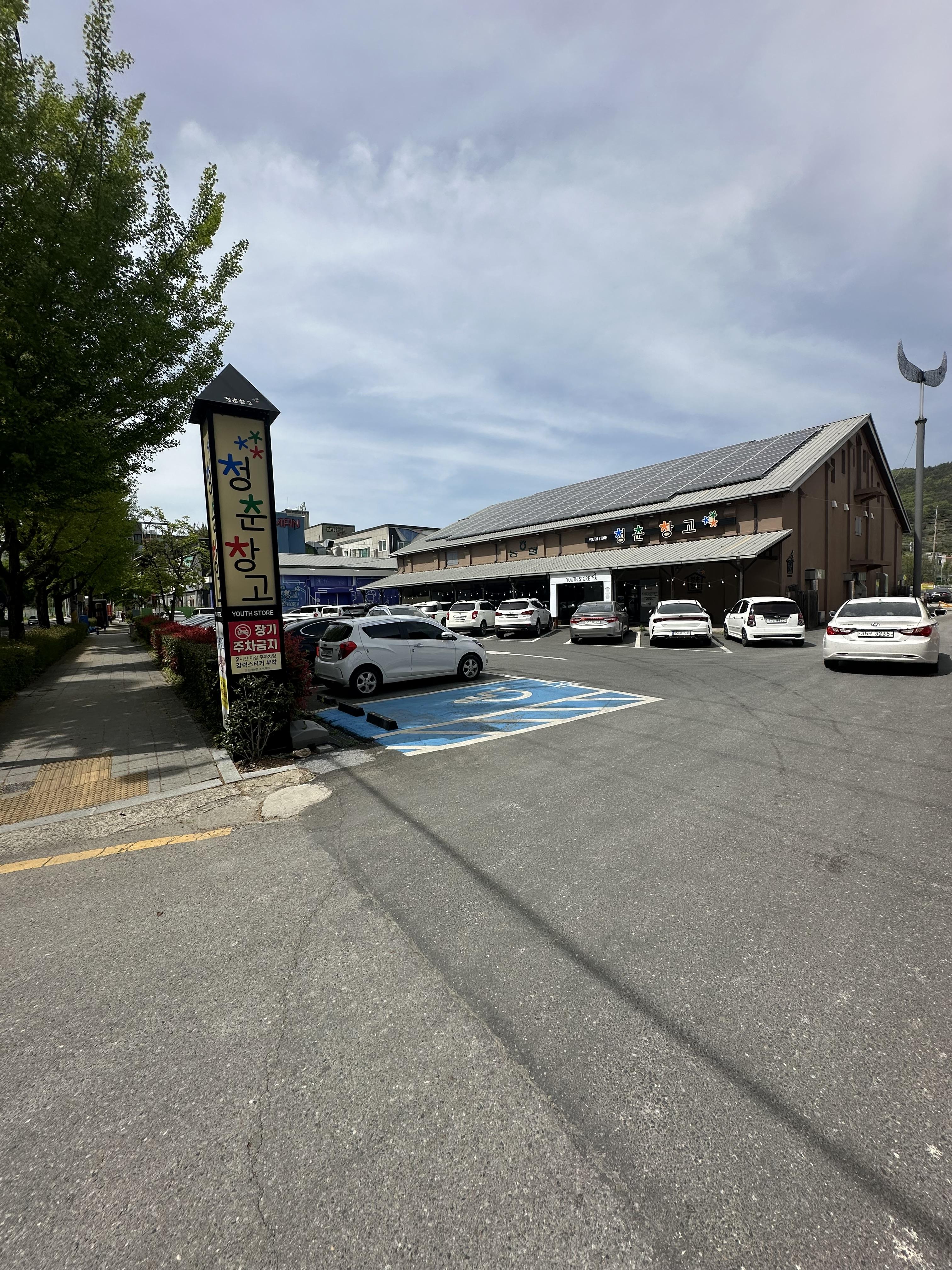 순천역에서 청춘창고 까지 걸어가는데 4월 날씨임에도 불구하고 햇빛이 강하게 쬐는 날씨였습니다. 원래 4월이라고 하면 겨울에서 봄으로 넘어가는 날씨라 과거 10년전인 2010년도에만 보더라도 패딩을 입거나 따뜻하게 입었어야 하는데요. 기후위기 등으로 점점 더워지고 4월이 되면 이제는 반팔을 입어야 했습니다. 특히 이번 4월 순천여행은 둘째날에 비가 많이 오고 그 이후에도 비가 오는 경우가 많아 여행하는 도중에 참 힘들었습니다. 기후위기로 한참 봄이어야 하는 시기는 더워져서 봄을 찾아 볼 수가 없었습니다. 포스팅을 작성하는 9월말에는 가을날씨이기는 하지만 사실 가을이 얼마나 짧게 지나갈지 걱정됩니다. 담풍이 한참 펼때 갑자기 추워지는 겨울이 올까봐 걱정이 됩니다. 아무튼 햇빛이 강하게 쬐는 순천역에서 청춘창고까지 걸어가서 도착했습니다. 점심시간이 한참 지나간 시간이지만 청춘창고 주차장은 가득 차있었습니다. 아무래도 청춘창고에서 일하는 청년들의 차일수도 있고 인근 농협이나 직장인들의 차량이 아닐까 고민됩니다. 나름 주차장은 큰데 거의 가득찼습니다.