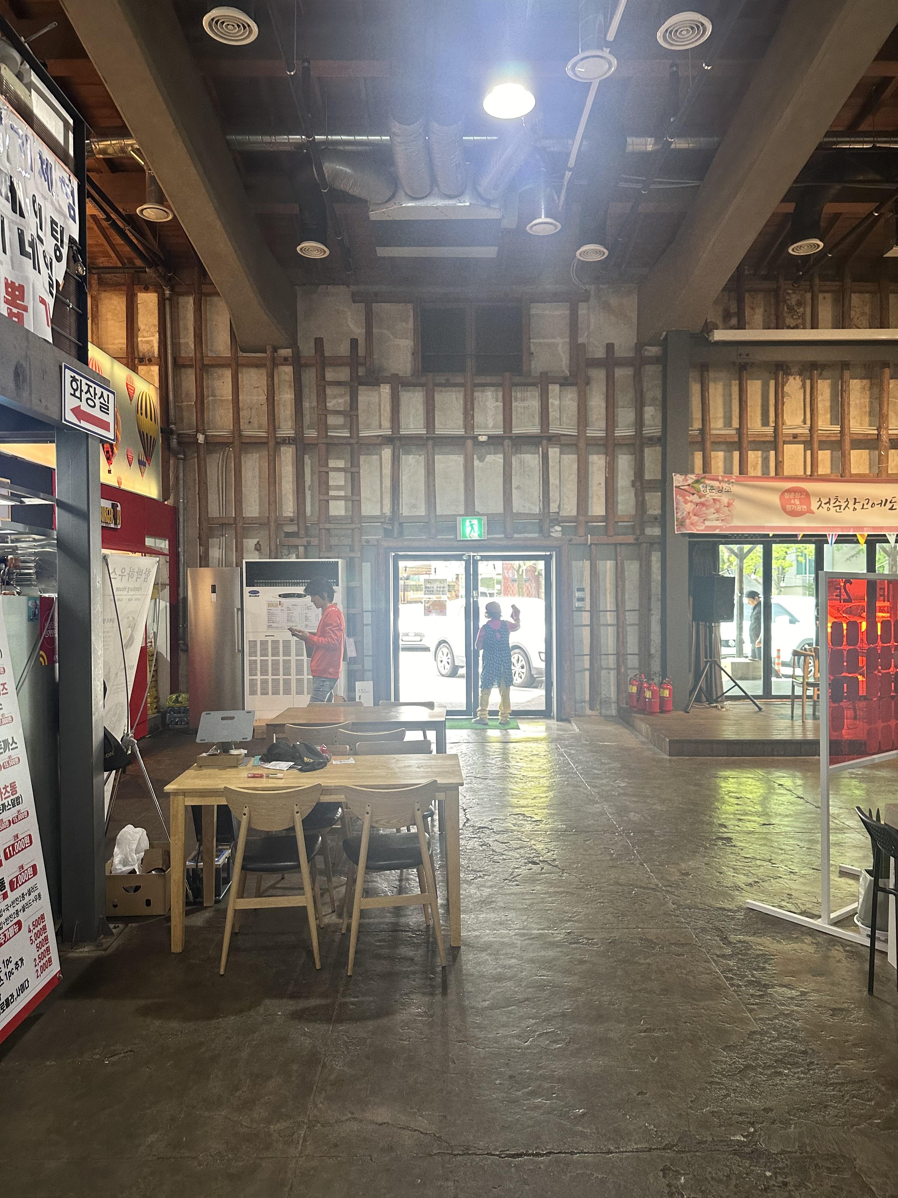 청춘창고는 큰 건물 처럼 보이지만 막상 내부는 5분정도면 충분히 돌아볼 수 있는 넓은 공간이었습니다. 건물 안에 가운대는 무대가 있고 무대 외각으로 각 상점들이 입점되어 한바퀴 돌아보면 전체적으로 볼 수 있는 구조였습니다.