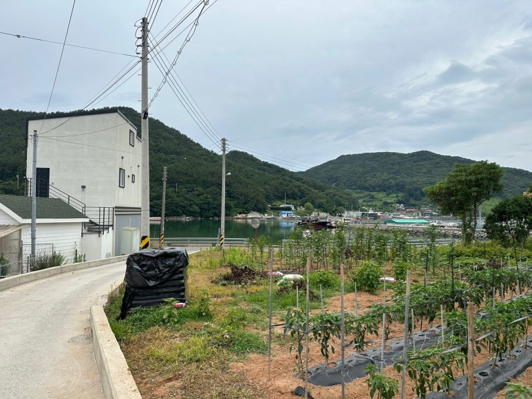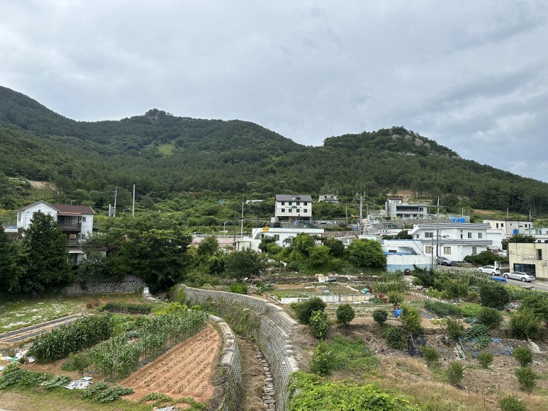 통영 시외버스터미널에서 500번대 버스를 타고 가다보면 통영 도시에서 벗어나 이렇게 조용한 시골 길에 다다르게 됩니다. 그리고 버스정류장에서 내리면 조용한 시골마을이보이는데요.