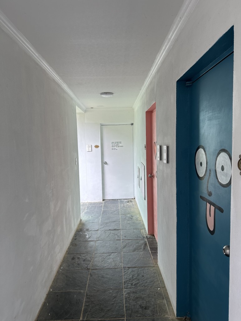 제가 이날 배정 받은 호실은 도미토리 6인실 이였습니다. 키를 받고 올라가는데요. 방 문앞에는 귀여운 이미지들이 붙어있었습니다. 슬로비 게스트하우스는 이렇게 귀여운 이미지는 물론이고 객실 복도나 객실안에 아름다운 글귀들이 붙어 있는 것을 볼 수 있었습니다.