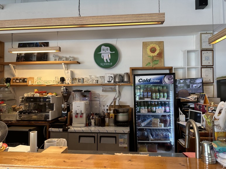 1층 카페입니다. 아침에 조식은 1층에서 이루어져요. 슬로비 게스트하우스는 다른게스트하우스와는 너무 차별한점이 많아요. 어떻게 보면 그런점들이 슬로비게스트하우스를 계속 찾아가게 하고싶은 이유인 것 같습니다.