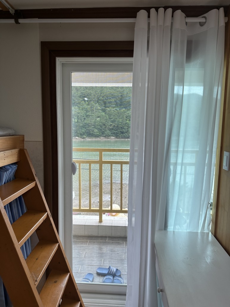 - 객실에서 커튼을 열면 바다가 바로 보여요. 객실에 베란다도 있어서 밖에 나가지 않아도 베란다에서 바다를 느낄 수 있어요.