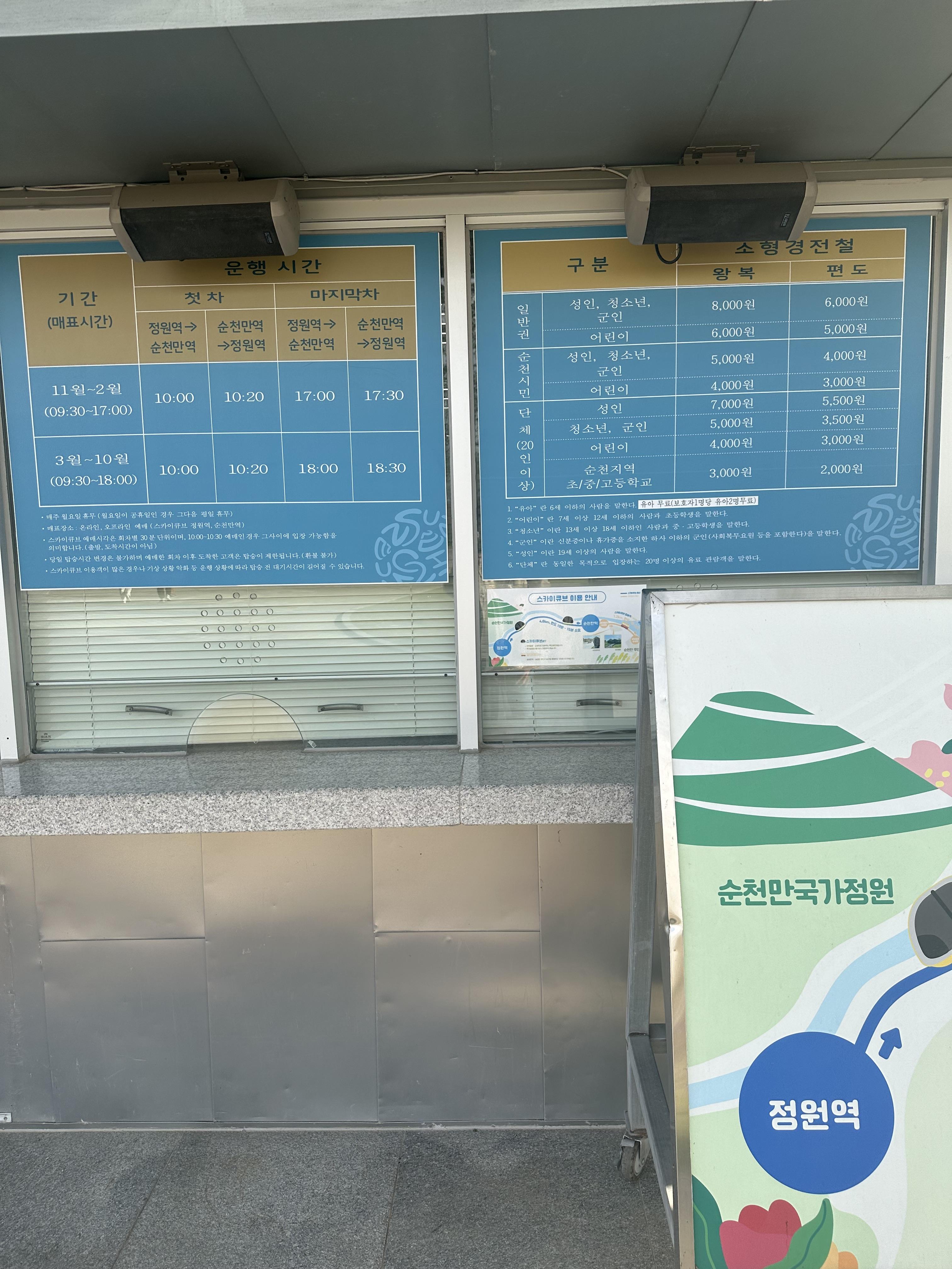 - 순천만 습지로 가는 무인궤도 열차입니다. 다시 돌아오시려면 왕복권을 구매하시면 됩니다. 단 순천만 일몰을 보기저넹 이미 막차가 종료되기 때문에 일몰 보실분은 끊으시면 안됩니다.