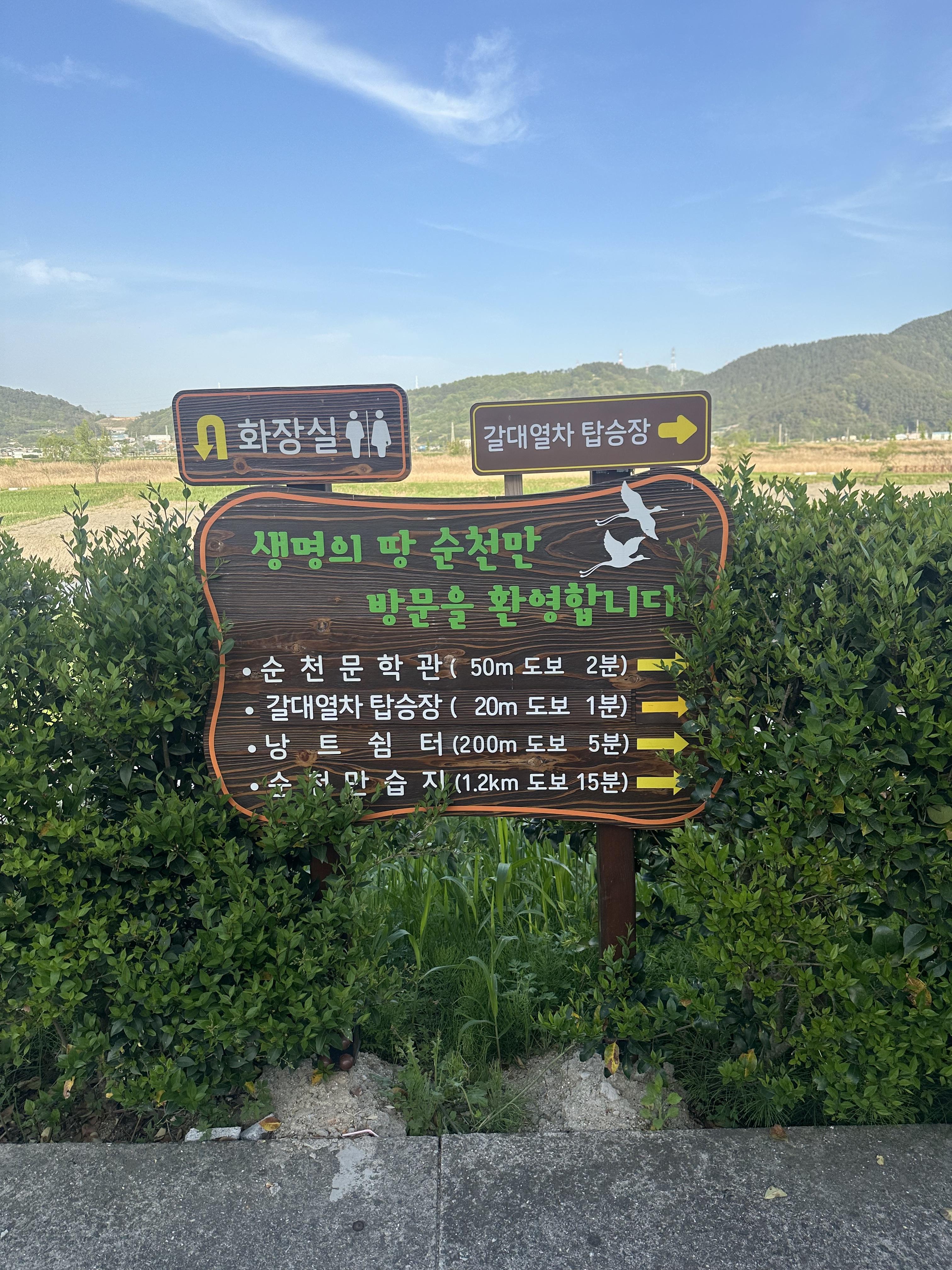 20분 정도 달려서 순천만역에 도착했습니다. 그런데 순천만역이라고 하는데 순천만 습지는 보이지 않습니다. 지하철 4호선 오이도역이라고 오이도가 보이지 않고 아파트만 보이는것과 유사합니다. 우리나라 지하철역은 이름과 실제 위치가 서로 다른 부분이 많습니다. 오이도라고 하면 오이도가 보여야하는데 버스타고 한참가야합니다. 4호선 신길온천역은 온천이 있을거같은데 온천은 없고 논밭만 있습니다.