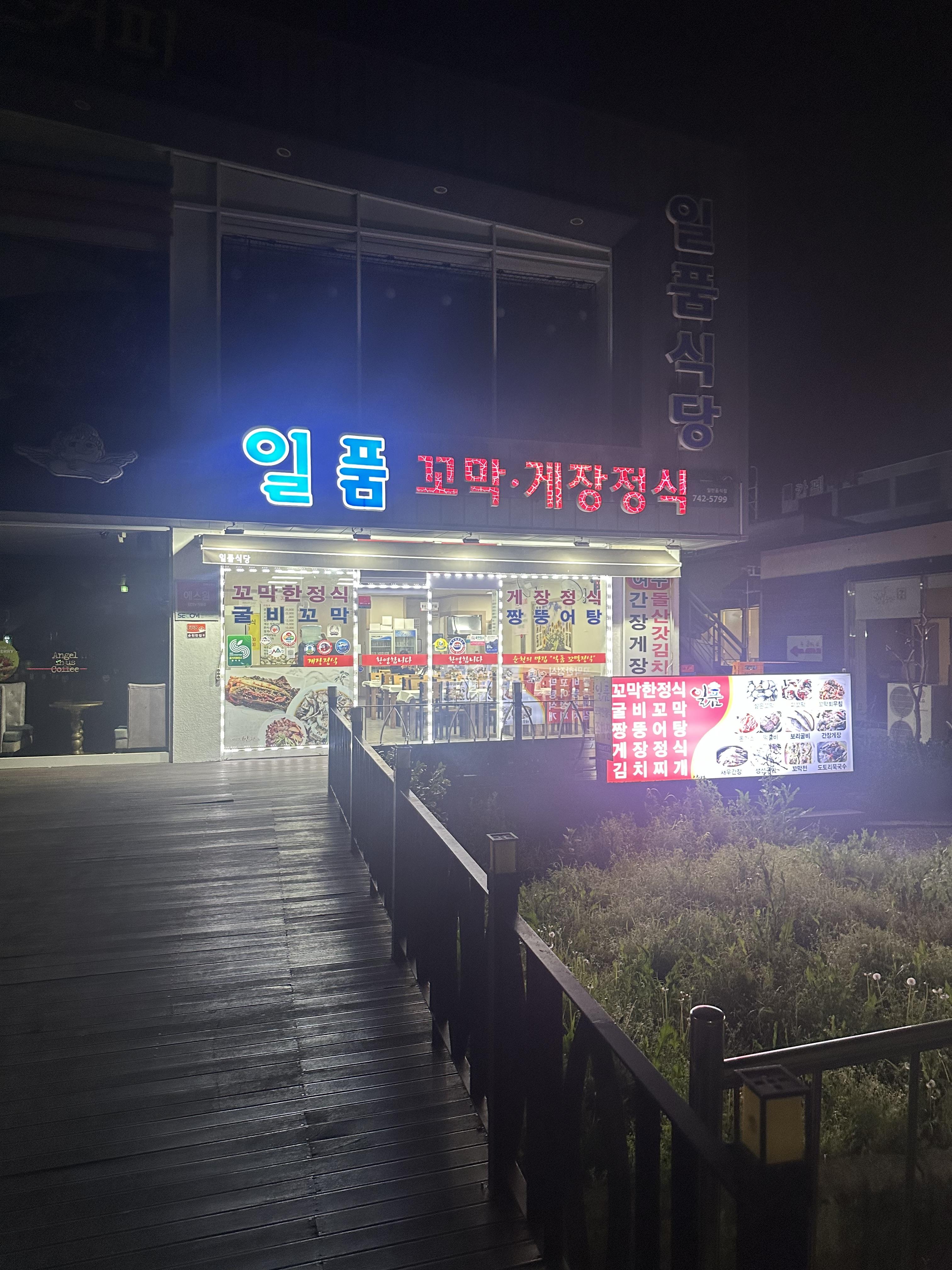 순천만 습지 입구까지 나왔습니다. 이렇게 해서 순천에서 1일차 여행은 마무리 할 수 있게 되었습니다. 숙소로 잡은 순천 에어비앤비로 가기전에 저녁을 먹어야 할 것 같아서 순천만 습지 입구에 있는 여러 가게 중 일품 식당으로 가게 되었습니다.