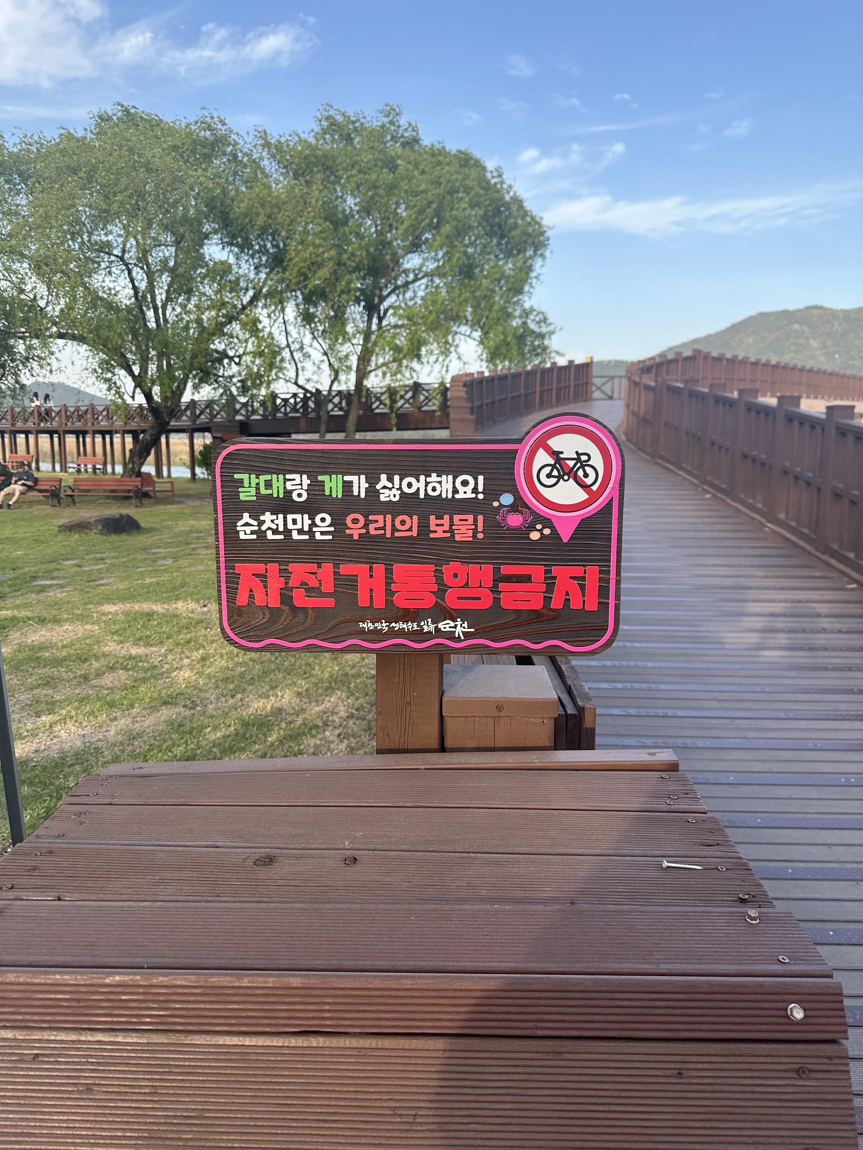 순천만 습지에서는 매점이 입구에 하나 있기 때문에 특히 용산전망대에 오르시려면 생수 한병정도는 구매 하셔야 합니다. 높은 산은 아니고 등산객들이 쉽게 오를 수 있도록 길이 조성되어있어서 큰 위험은 없지만 아무래도 제법 경사가 있는 산이라 여름과 같은 더운 날씨에는 생수 한병정도 구매 해서 가시면 크게 도움 받을 수 있습니다. 오르다보니 목도 마르고 산에는 물을 마실 수 있는 곳이 없습니다. 왕복 40-50분정도 걸리기 때문에 안들고 가도 상관은 없습니다. 순천만습지 안에는 매점 하나 있지만 순천만 습지 매표소 주변에는 CU편의점나 이마트 편의점 등이 있으니 미리미리 구매하시면 더 좋을 것 같습니다. 포스팅 초반에서도 말씀드렸지만 순천만 습지 용산전망대가 폐쇄 되었다고 합니다. 기존 전망대는 철거하고 신축때까지는 이용 할 수 없다고 해요. 또한 순천만 습지 갈대밭 사이로는 오로지 도보로만 이용 할 수 있으며 자전거 통행은 금지 되었다고 합니다. 갈대랑 게가 싫어 할 수 있으며 우리의 유산이라는 점에서 꼭 지켜주세요.