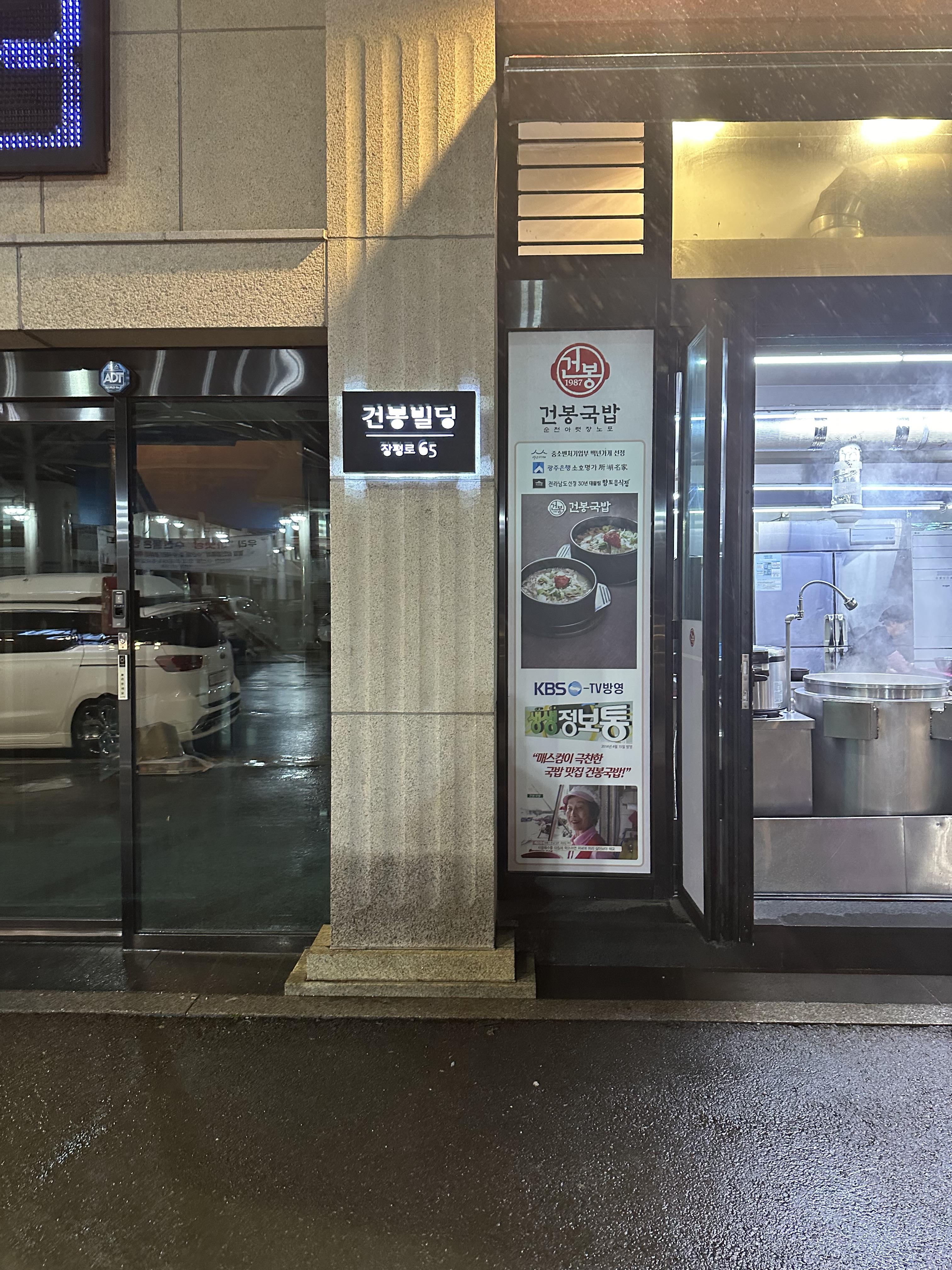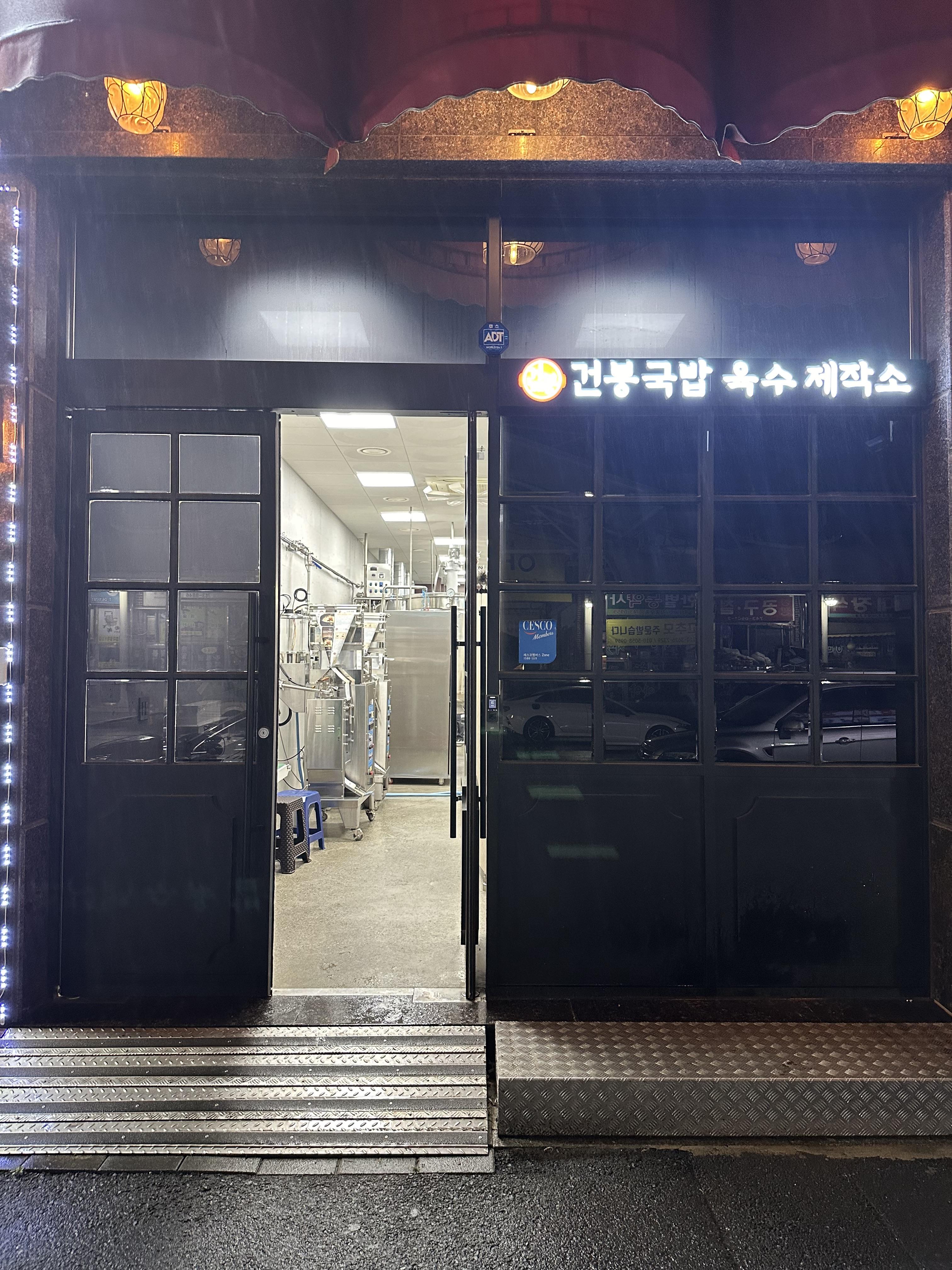 순천역에서 버스를 타면 5분이내로 아주 빠르게 갈 수 있습니다. 순천역 바로 앞 정거장이나 순천역 옆 역전파출소 건너편에서 버스를 탈 수 있습니다. 시외버스터미널 방향으로 가는 노선 아무거나 타면 다 갑니다. 그래도 혹시 모르니 순천여행 처음이시라면 당연하게 갈 수 있지만 꼭 물어보시길 바랍니다. 저는 도보로 이동했지만 버스를 타면 아랫장이라는 정거장에서 내리면 됩니다. 아랫장 정거장 다음에 순천 시외버스터미널인데요. 시외버스터미널에서도 도보로 이동 가능하니 순천 여행 하신다면 꼭 가보시길 바랍니다. 건봉국밥은 순천에서 37년동안 오래동안 운영 해온 자인 정신의 맛집 이다보니 티비 프로그램에서도 방영된 것을 건물 외관과 건물 안에서도 느낄 수 있습니다. 지금의 고급스러운 건물은 제가 내일로 할때까지만 해도 기존 건물이다가 네이버 거리뷰 살펴보니 2017년부터 바뀐 것을 볼 수 있습니다. 37년이라는 오랜시간 동안 했던 국밥지비라 그런지 건물 한편에는 건봉국밥 육수 제작소라는 것도 볼 수 있었습니다. 이것만 보더라도 건봉국밥이 대단한 것을 알 수 있습니다.