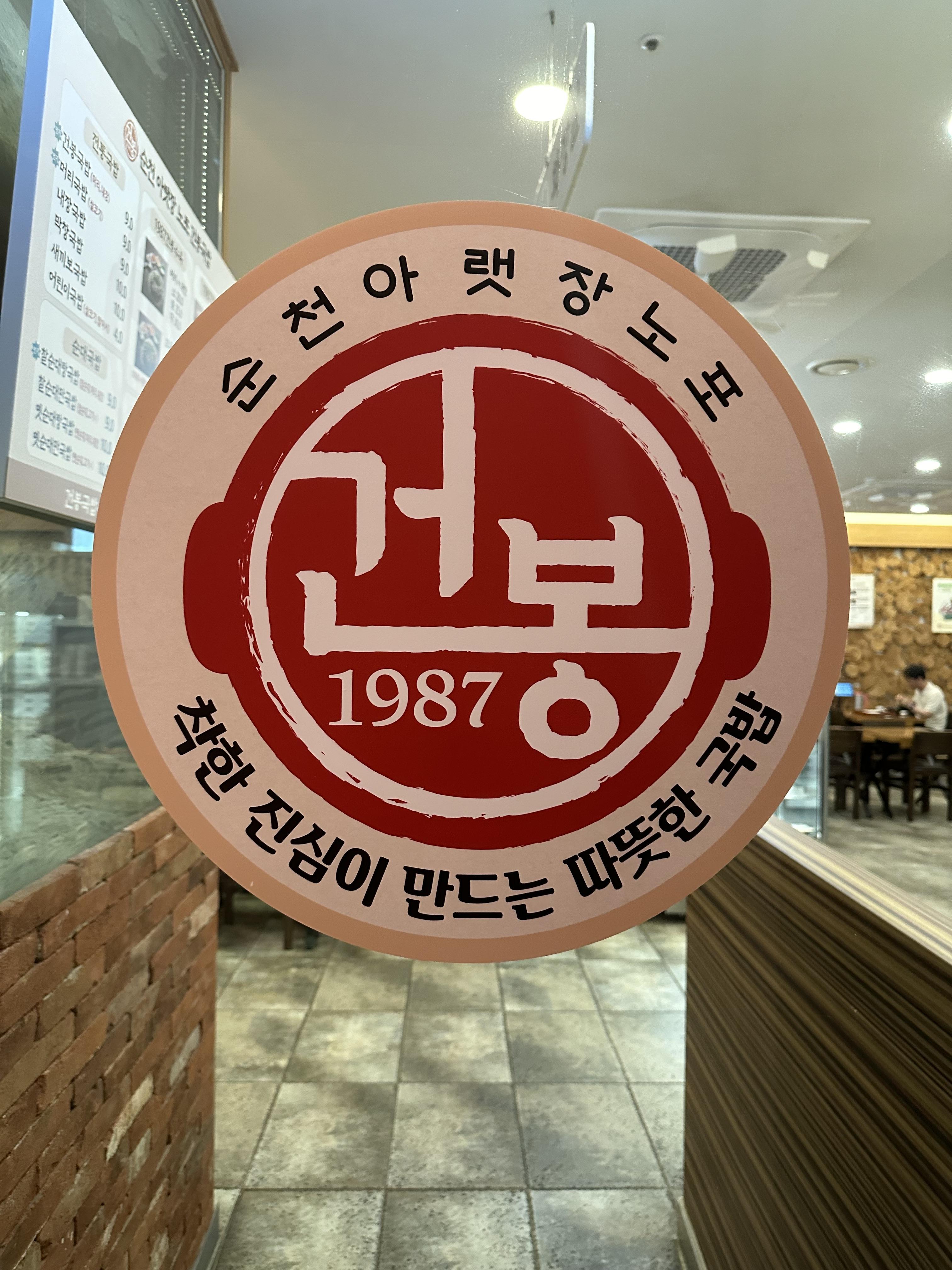 제가 처음 내일로를 통해 순천에 갔을 때만해도 건봉국밥은 1층 상가로만 이루어진 작은 식당이었습니다. 제 포스팅에도 과거 순천 건봉국밥 네이버 거리뷰를 업로드 해놓았는데요. 당시에는 일반적인 평범한 상가로 가게 브랜드도 없는 전형적인 시골 변두리에 있는 작은 국밥집이었습니다. 로고 사이에 건봉국밥의 설립일인 1987년로 볼 수 있습니다. 이 때는 한참 우리나라에서 민주화 운동이 일어나며 아직 5공화국에서 6공화국으로 민주화가 시작 된 해이기도 합니다. 벌써 37년이라는 시기가 지났습니다. 로고 아래에는 착한 진심이 만드는 따뜻한 국밥이라는 멘트가 적혀있었습니다. 착한 진심이라는 마음이 과거나 지금이나 그리고 미래에도 계속 있었으면 좋겠습니다. 대한민국의 어수선한 정부 시절 부터 지금까지 유지되어왔고 불과 10년전보다 더 나아져서 오래된 식당이지만 마케팅도 하고 시대의 흐름을 잘 따르는 성장하는 식당 같습니다.