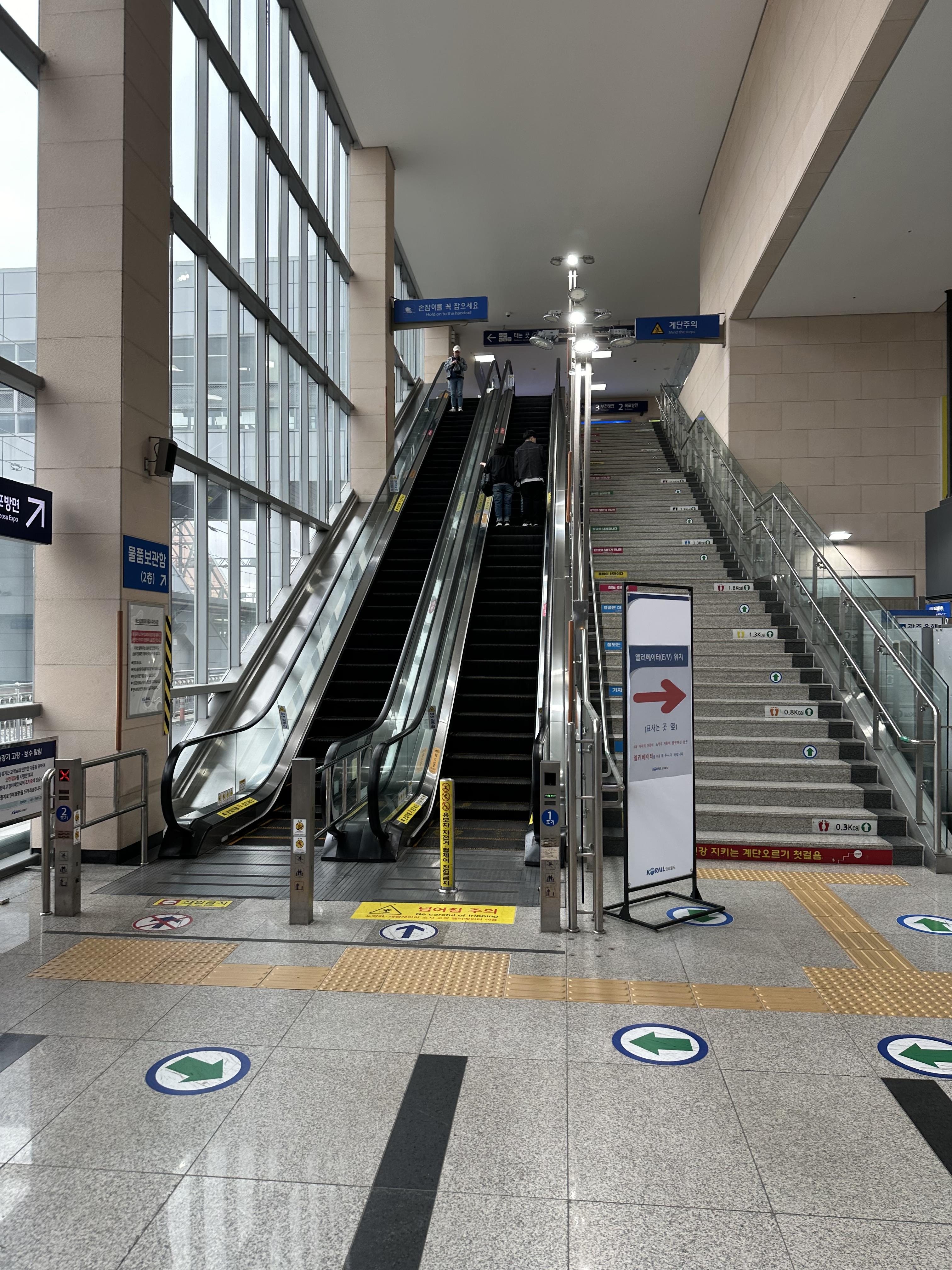 - 순천역의 경우 대합실로 가기 위해서는 1호차에 탑승한다면 하차 시 대합실로 가는 계단으로 바로 이어집니다.
