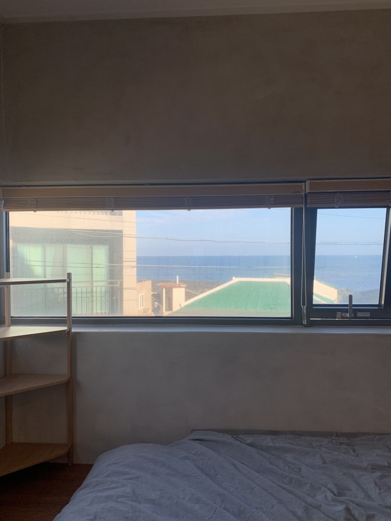 저는 아침에 일어나거나 저녁에 잠들기전에 이렇게 올라와서 시간을 보냈어요. 옥상에서 가만히 쉬는 동안에도 정말 편안함을 느꼈습니다. 한달 살기를 하기 위해서 바다가 보이는 숙소를 계속 알아보고 있었습니다.