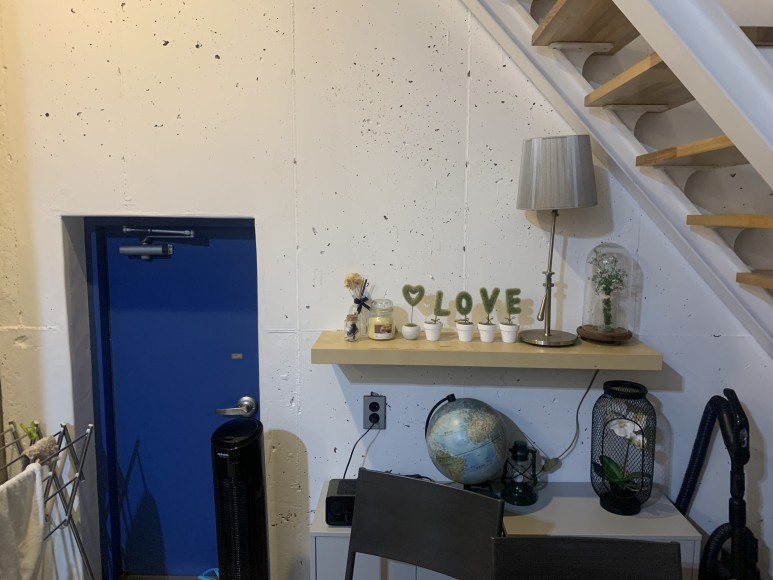 2층으로 올라왔으니 이제 1층으로 내려가봐야겠죠. 이렇게 1층과 2층으로 바로바로 다닐 수 있도록 계단이 있었습니다. 그리고 혹시 모르니 2층에는 잠금장치가 있어서 1층에서 함부로 옷올라가도록 설정되어있었습니다. 일주일 살면서 외출시에는 항상 2층 잠금장치를 잠그고 다녔습니다.