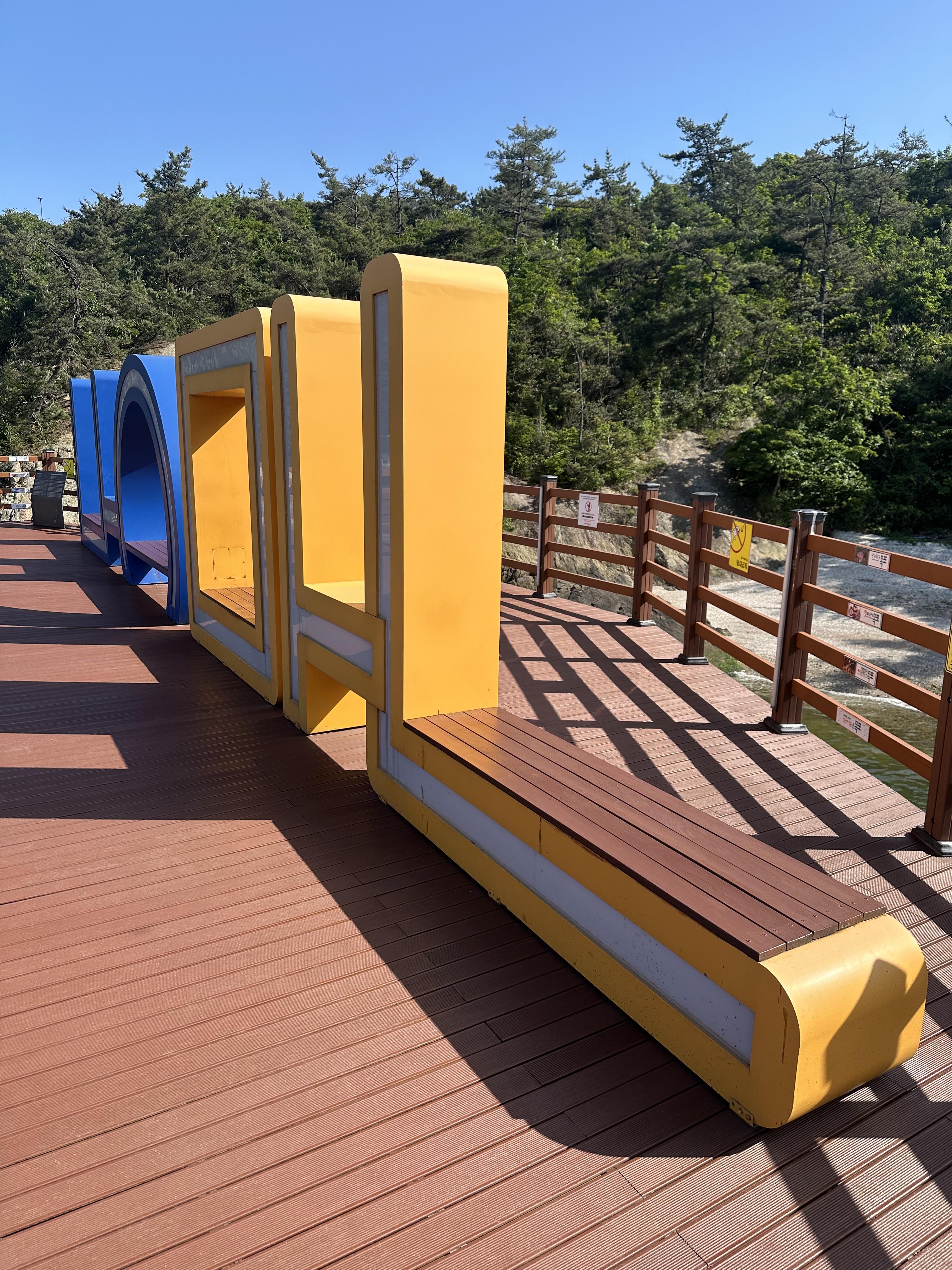 야간에도 온다면 여수해상케이블카타고 돌산대교에서 바라보는 여수만큼 아름다울 것 같습니다. 저는 해안 산책로 표시판을 따라 숲속으로 들어가게 됩니다. 당일치기 여행으로 왔고 기차 시간도 있기 때문에 메인 명소라고 할 수 있는 고하도 해안데크와 고하도 전망대 따라 가게 됩니다. 고하도 숲속 산책로를 따라 올라가면 심심하지 않도록 흥미로운 계단이 있는데요.