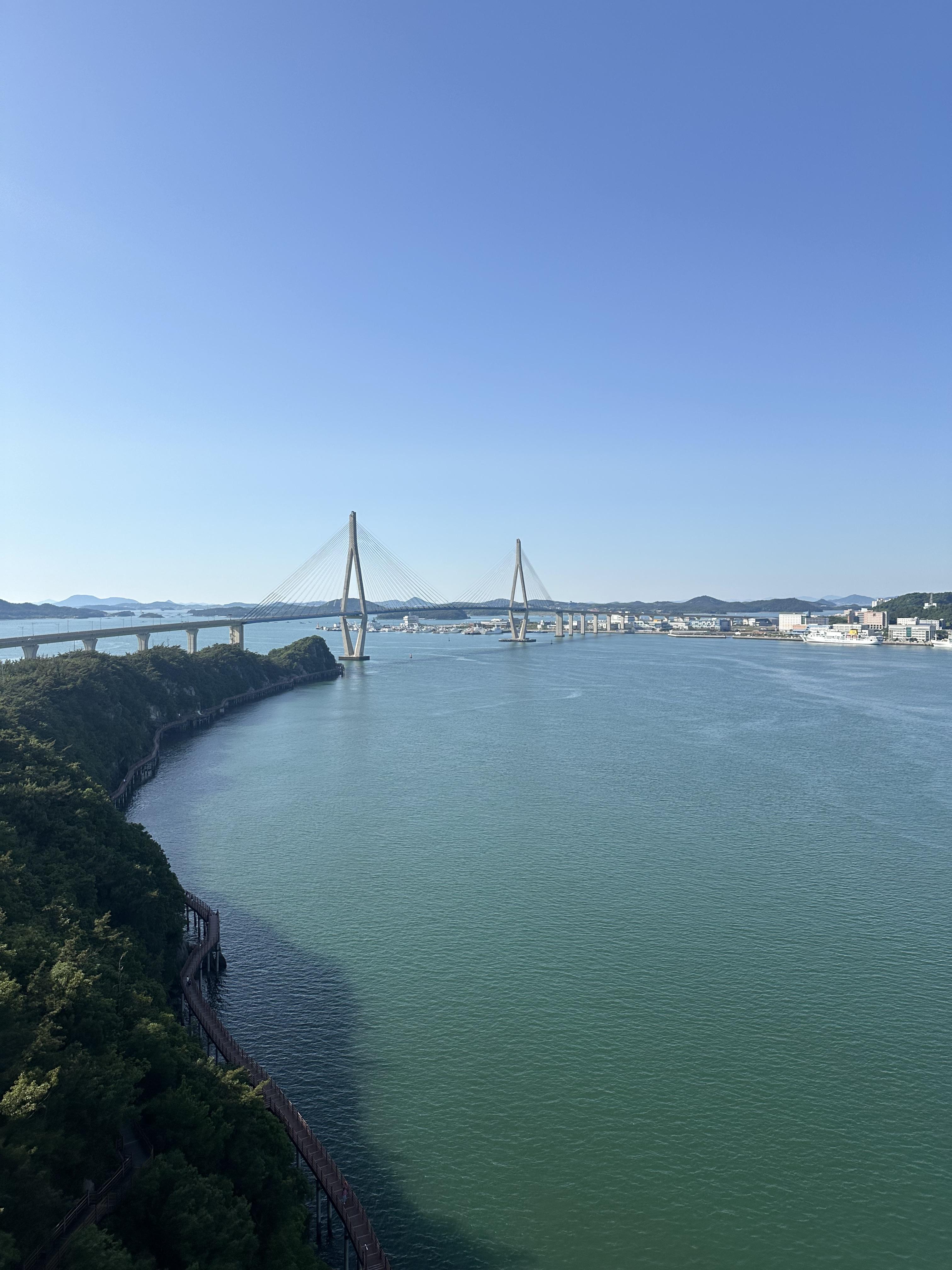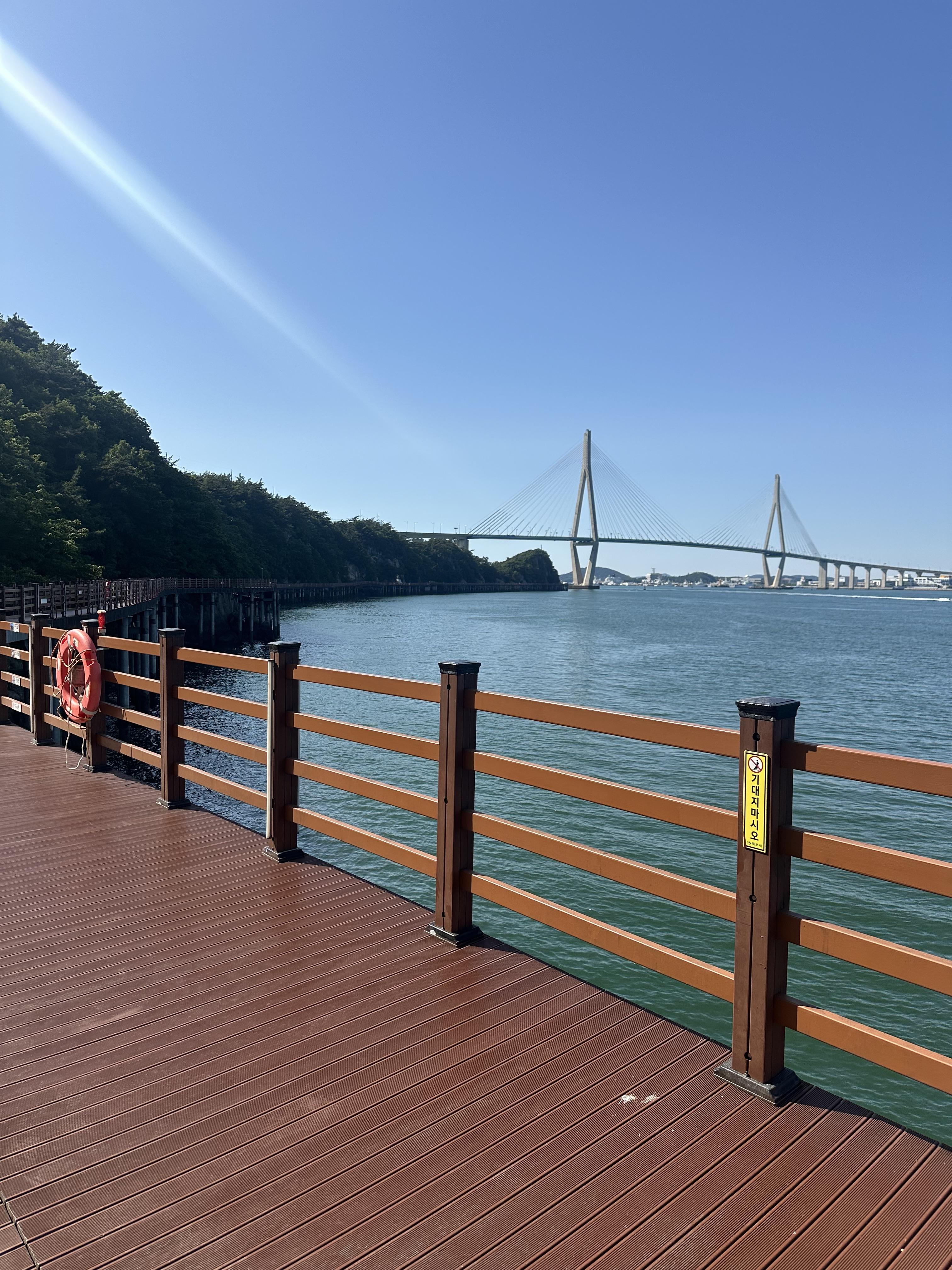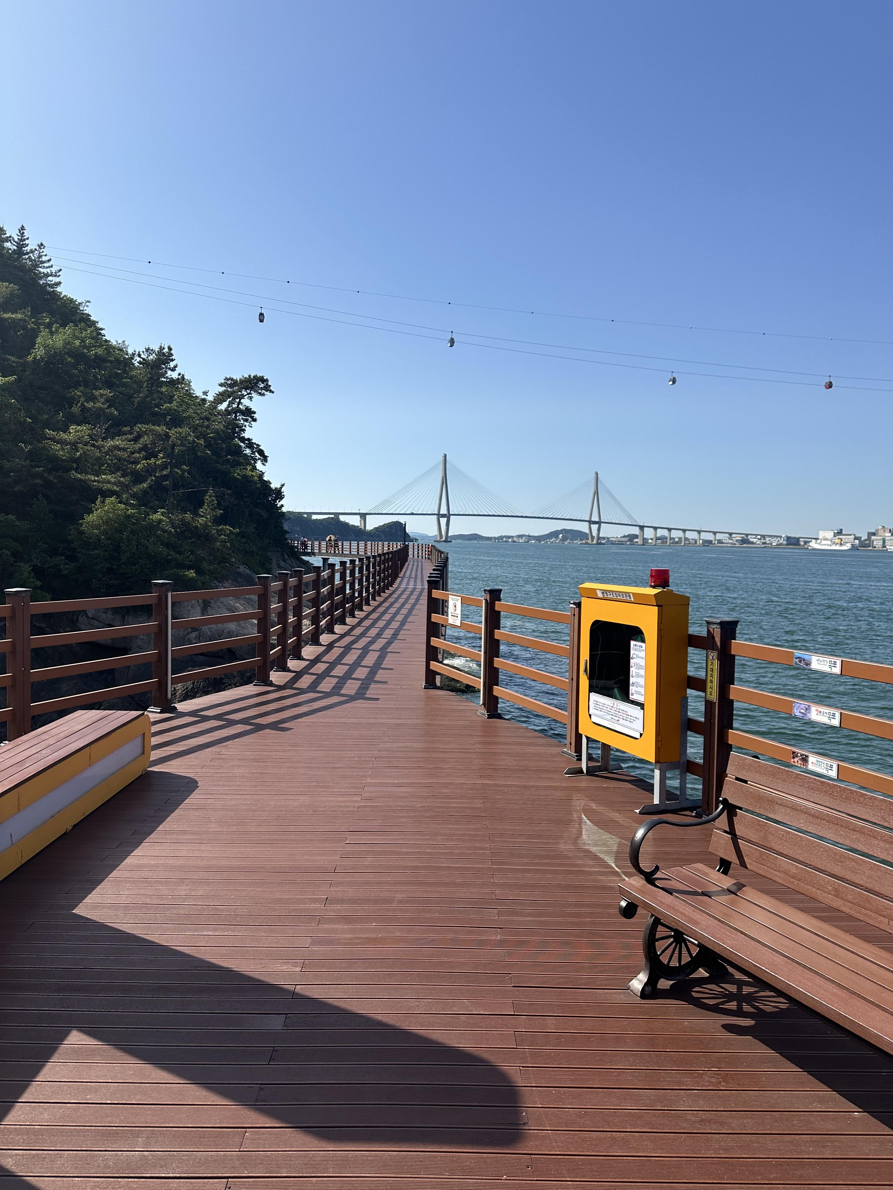 고하도 경사형 엘레베이터를 타고 내려오며 목포대교 보이는 방향으로는 길이 너무 길어서 시간이 없을 경우 다 걷기에는 부족합니다. 그래서 저도 목포대교에서는 얼마 걷지 않고 다시 돌아왔습니다. 대신에 고하도 경사형 엘레베이터 우측으로는 얼마 걸리지 않기 때문에 케이블카와 멀리 보이는 유달산을 보며 걷기에 시간상으로도 좋고 뷰도 좋아서 부담이 없었습니다.