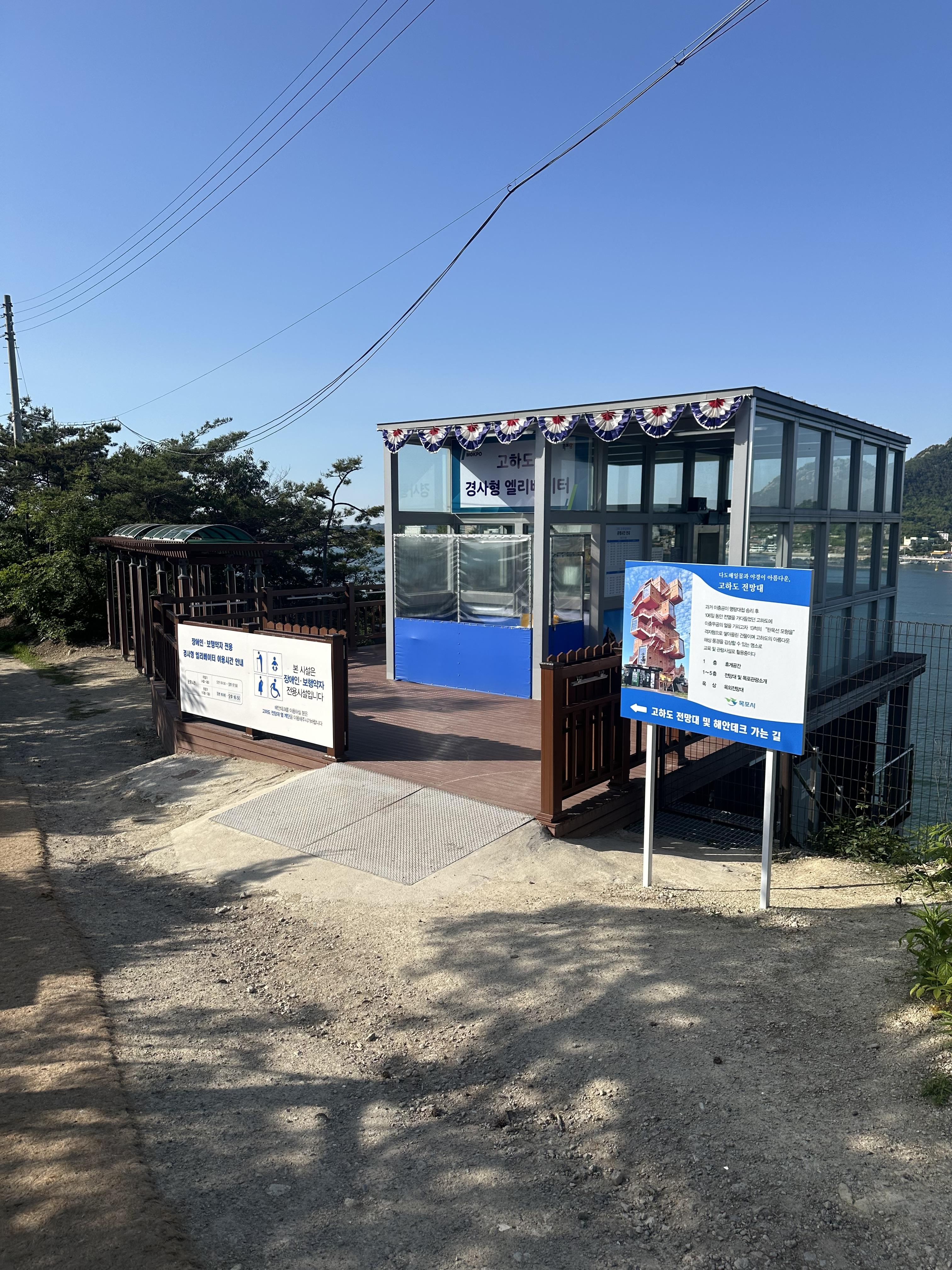 원래는 고하도 전망대 가면 해안데크로 내려갈 수 있는 길이 있다고 합니다. 그러나 나이가 있는 분들이나 임산분들을 위해서 숲속산책로에서 얼마 떨어져 있는 가까운곳에 경사형 엘레베이터를 만들었다고 해요. 보통 엘레베이터라고 하면 수직을 떠오를 수 있는데요. 최근에는 이렇게 경사형 수평 엘레베이터를 설치하는 곳이 많아지고 있다고해요. 제가 살고 있느 경기도 안산에 4호선과 서해선 환승 통로에도 경사형엘레베이터가 있습니다. 최근 몇개월전에 개통한 수서에서 동탄간 GTX가 다니는 수서역 환승통로에도 있다고 합니다.