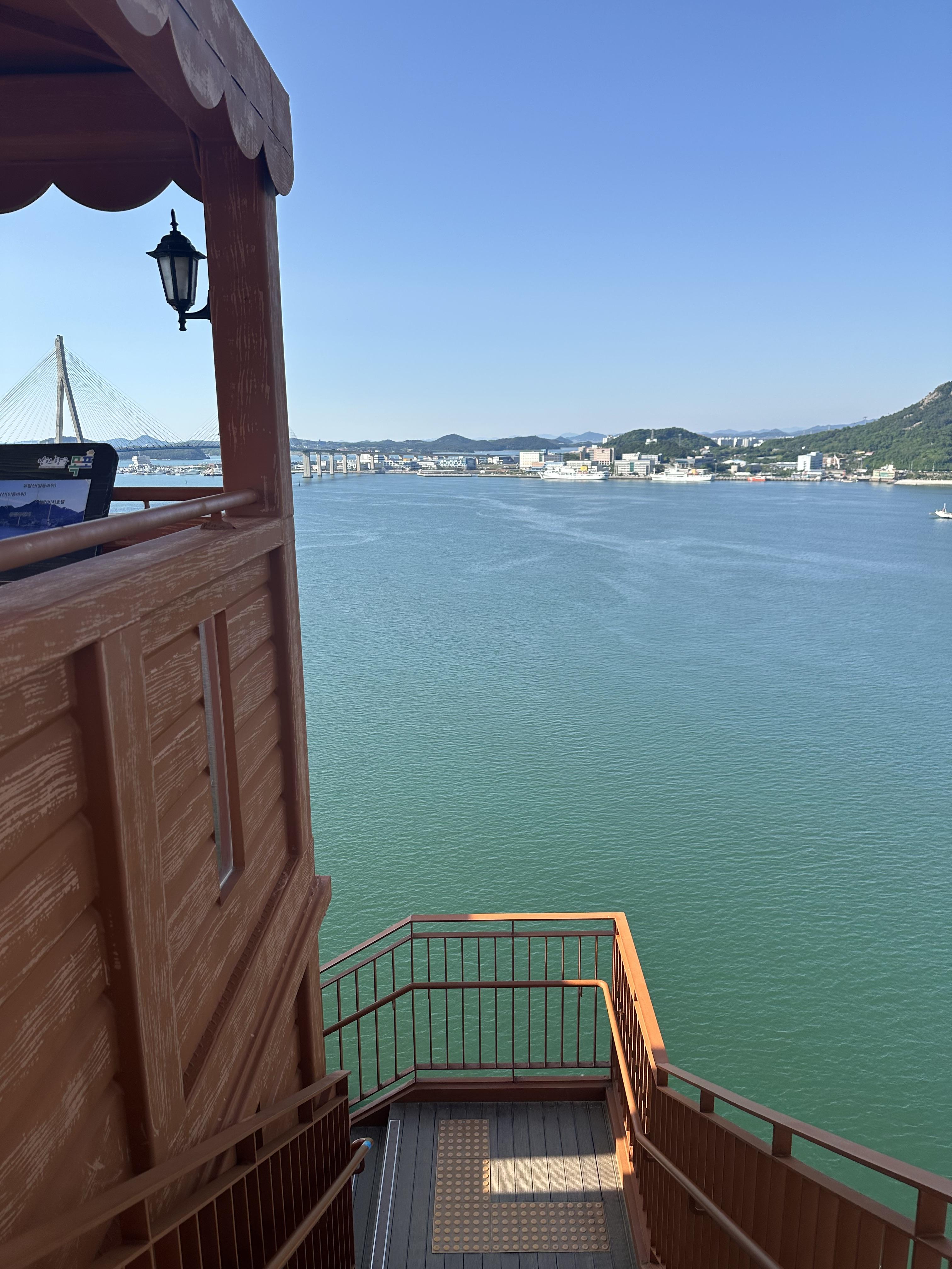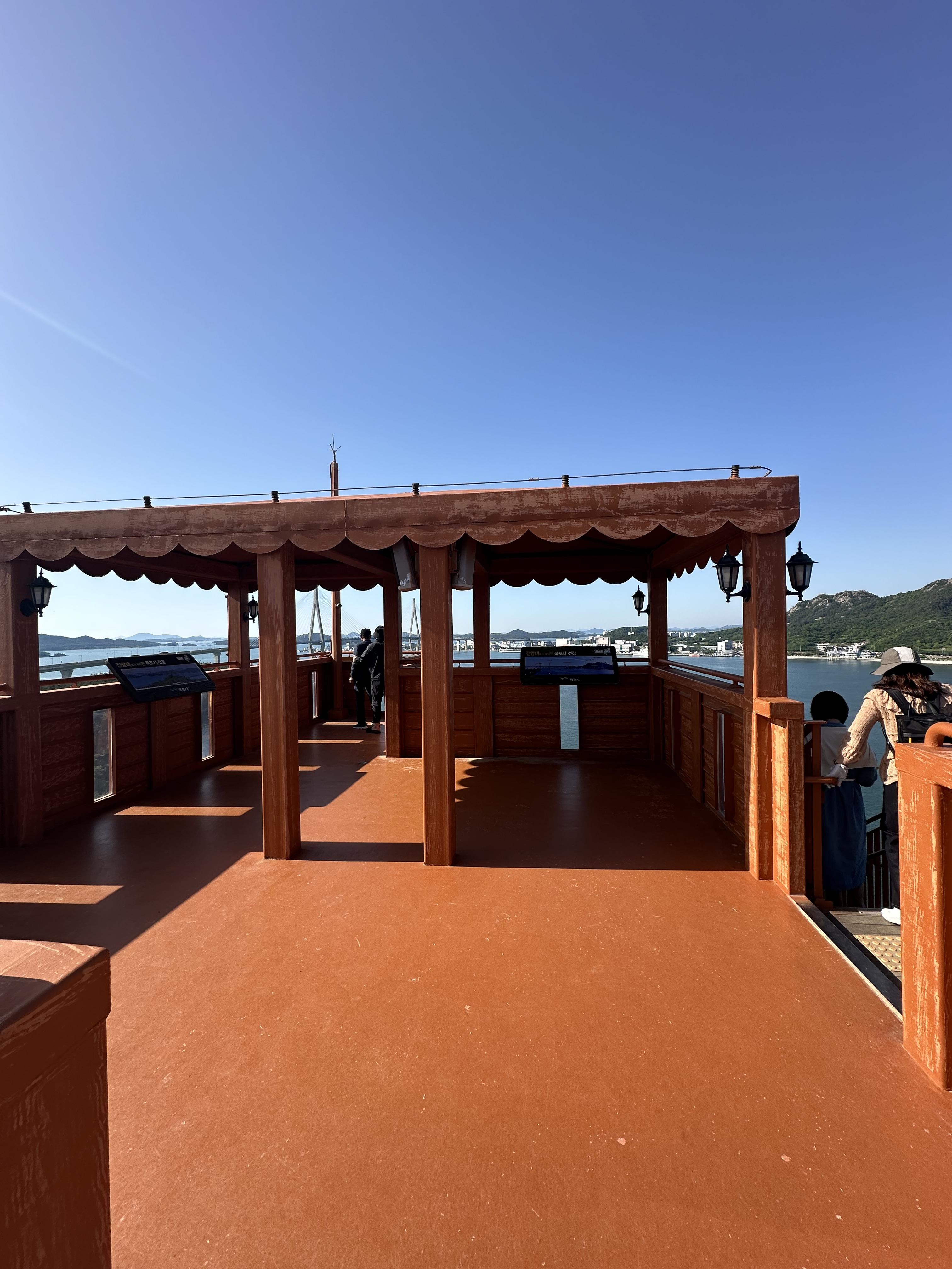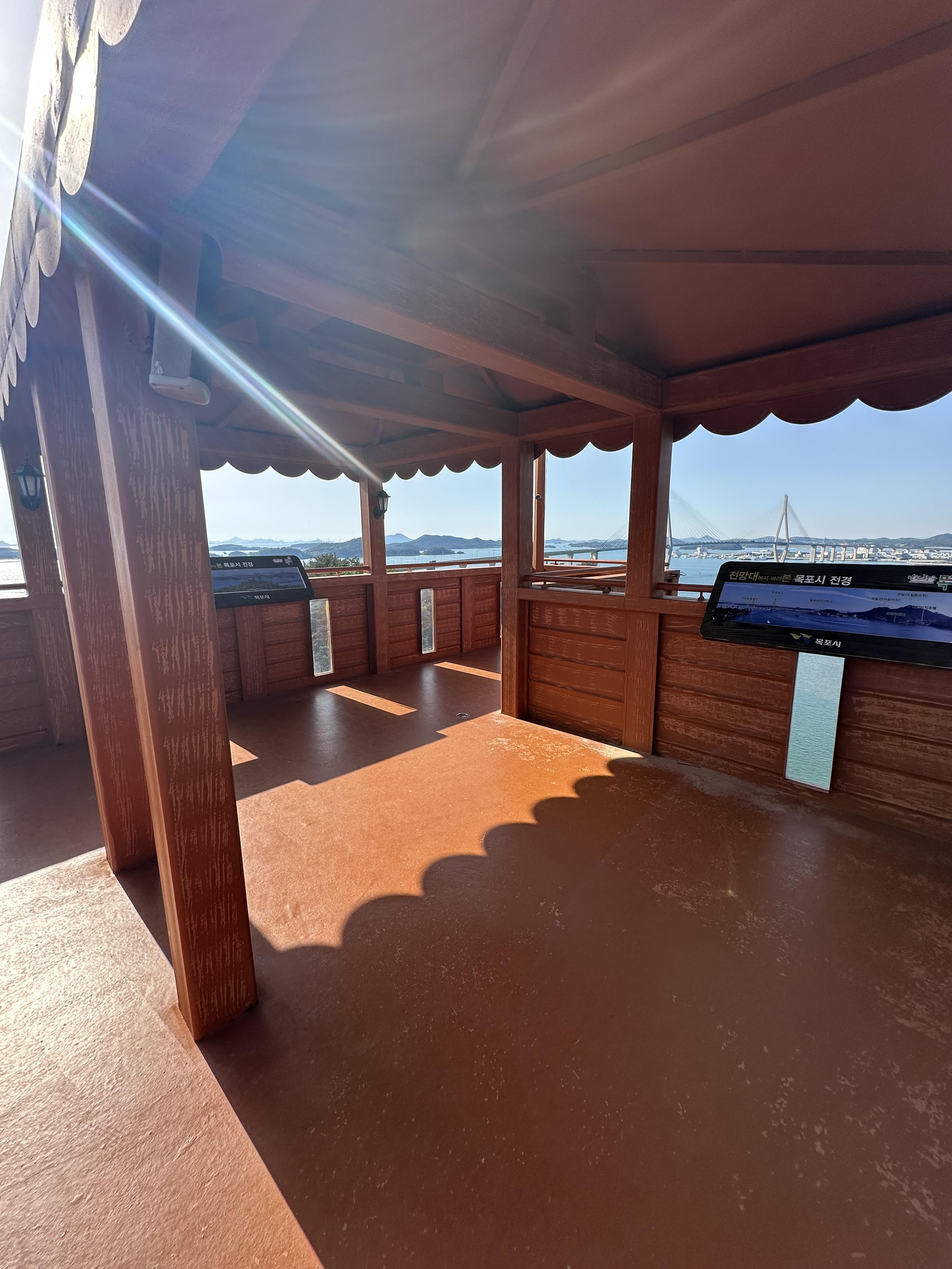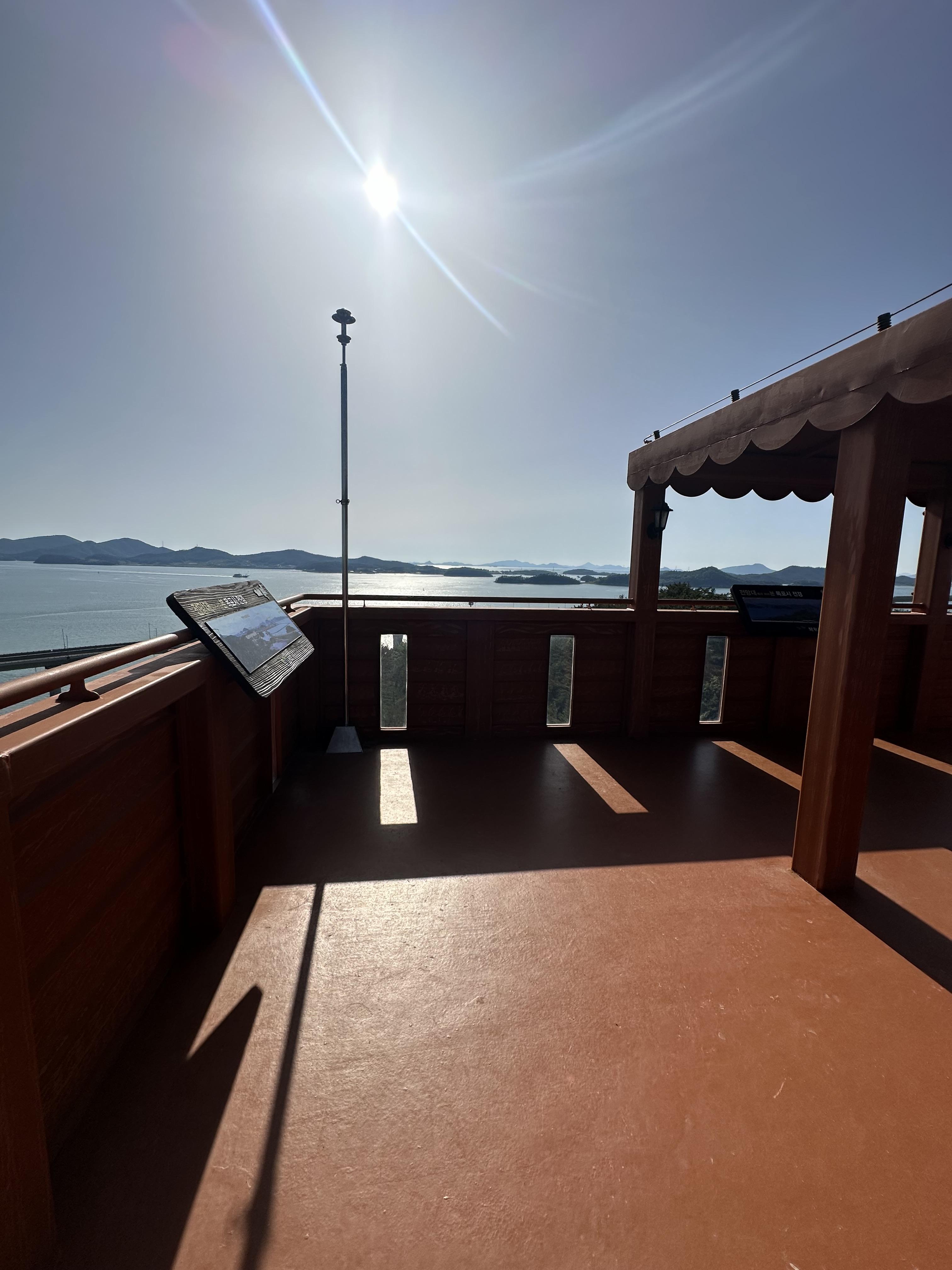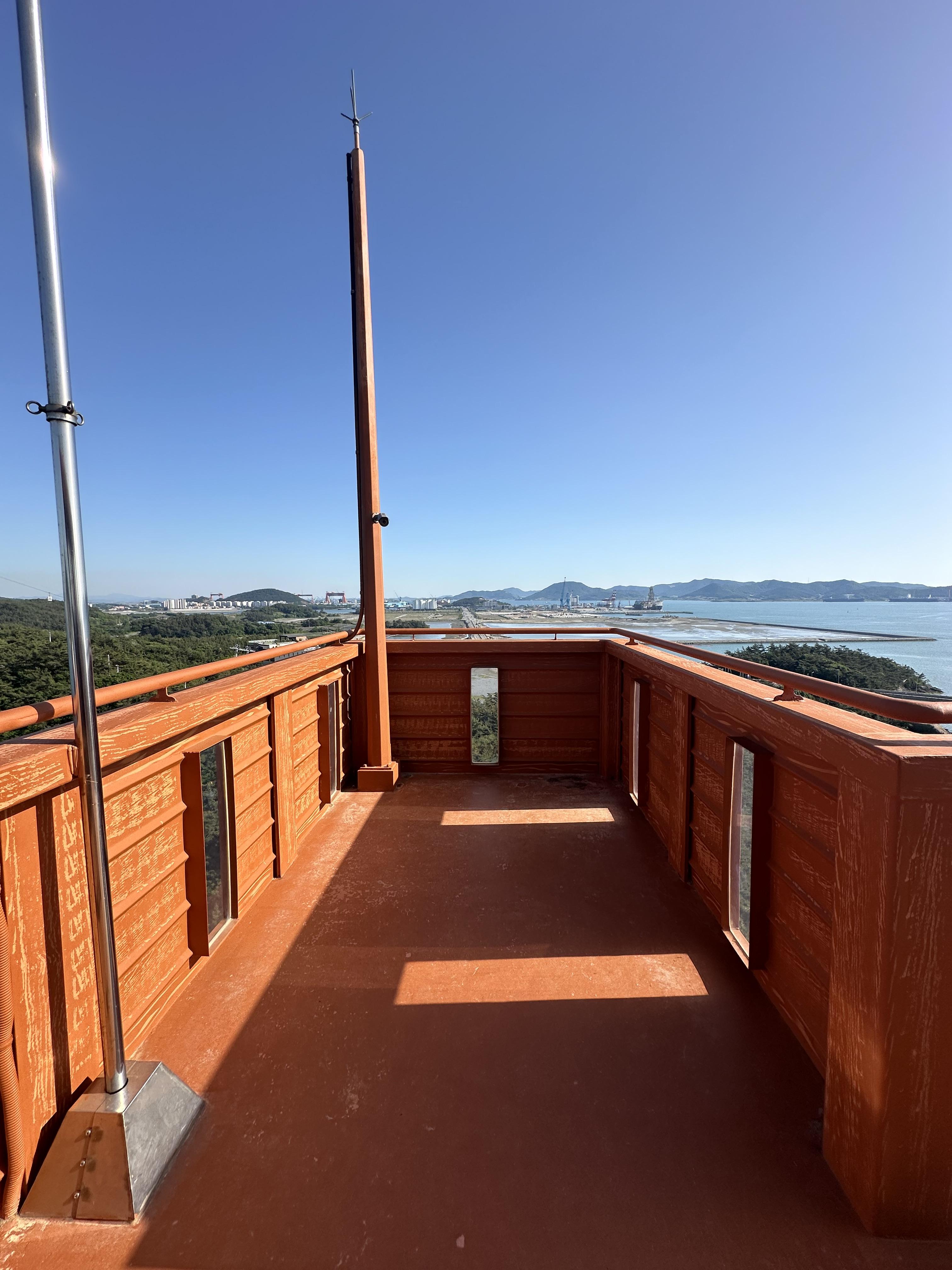 판옥선 형태로 만들어진 전망대라 그런지 야외 전망대는 실제 판옥선에서 이순신 장군과 당시 장군들이 지휘 하는 지휘소 형태의 모습으로 만들어져있었습니다. 실내 전망 공간은 작은 창문으로 제작되어 각 층마다 동서남북형태로 볼 수 있었지만 옥외전망대에서는 자신이 원하는 방향에서 자유롭게 목포시와 고하도를 자유롭게 볼 수 있었습니다.