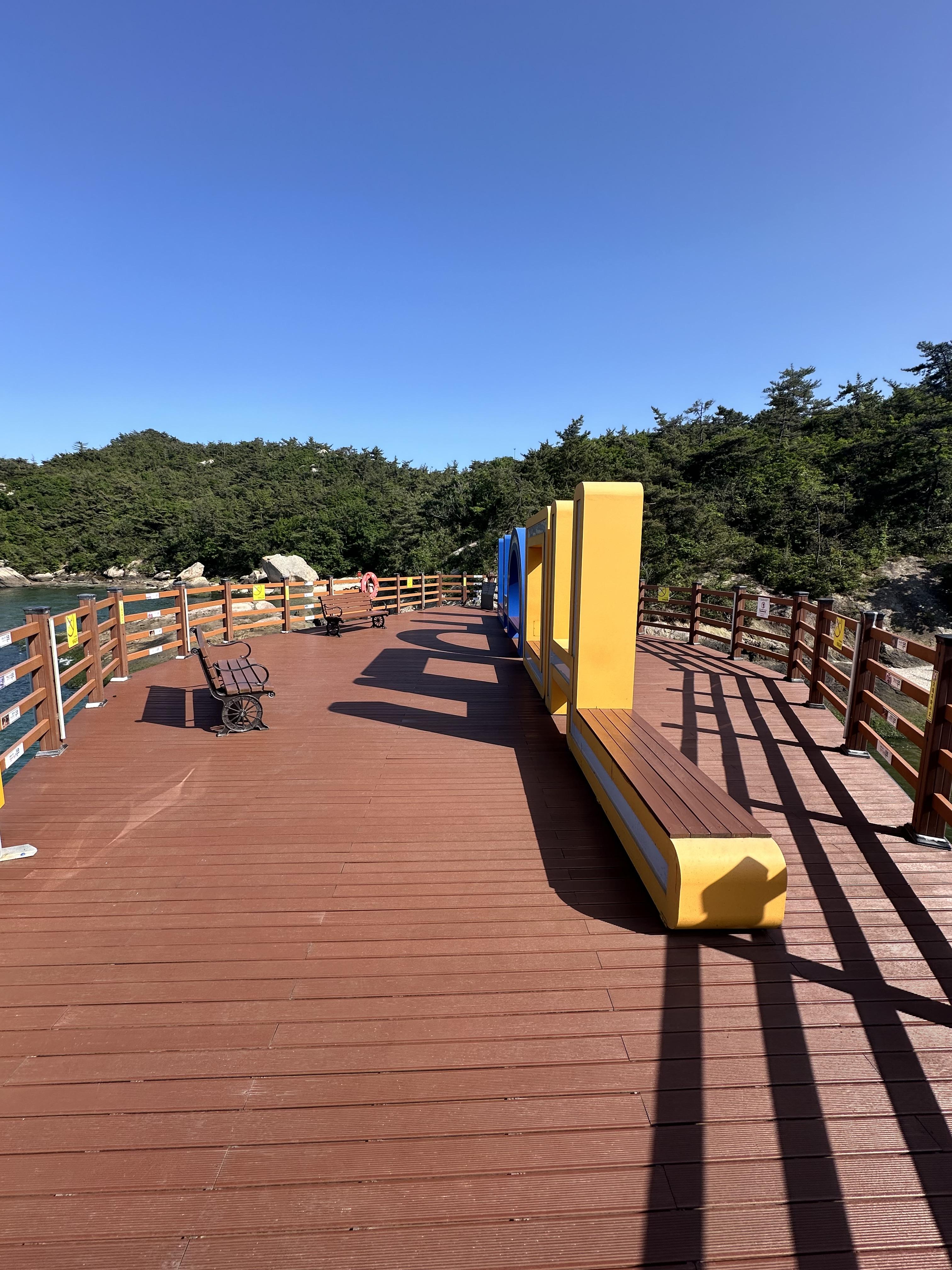 고하도 해안데크 길 따라 가다보면 중간중간 바닥에 스카이워크가 설치 되어있는 것을 볼 수 있습니다. 요즘은 어딜 가나 특히 케이블카가 있는 곳이나 강원도 묵호 도째비골과 같은 전망대에서는 흔하게 볼 수 있는 스카이워크입니다. 고하도 해안데크에는 스카이워크 도보 뿐만 아니라 바닥에 구멍이 뚫린 길도 있는대로 스카이워크는 바닥전체가 유리이지만 유리가 아닌 구멍이 뚫려서 실제로 유리없이 쌩얼로 다도해 바다물빛을 바로 볼 수도 있었습니다. 이러한 형태는 묵호 또재비골 스카이밸리나 다양한 전망대 및 스카이워크에서도 흔히 볼 수 있습니다